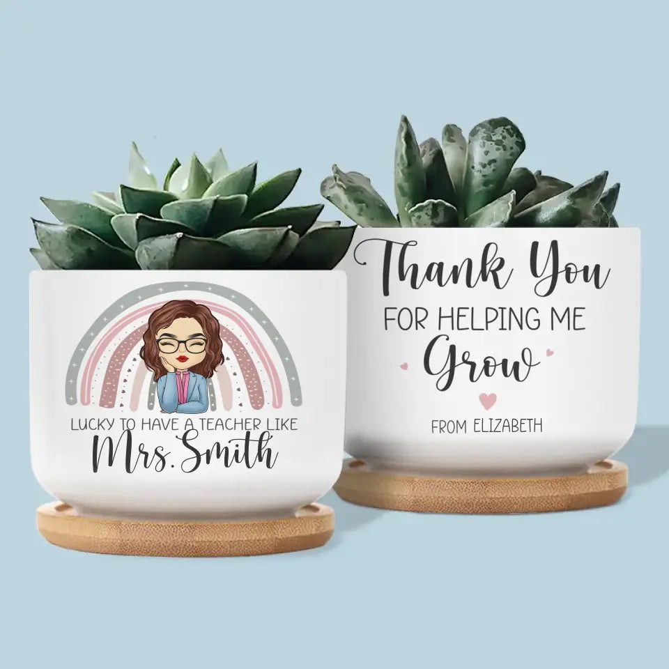 Merci de m'avoir aidé à grandir - Pot de fleurs en céramique personnalisé pour enseignant - Cadeau pour enseignant