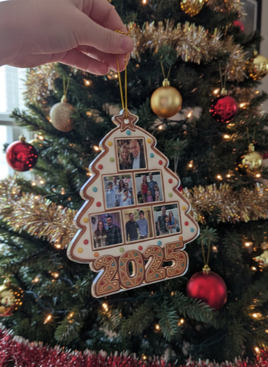 This ornament is gorgeous! The acrylic feels solid and the colors are bright and festive. I love how all our family photos fit perfectly inside the tree shape, it really captures our 2025 highlights. Hanging it up on the Christmas tree felt so special. Highly recommend for anyone wanting a meaningful family gift