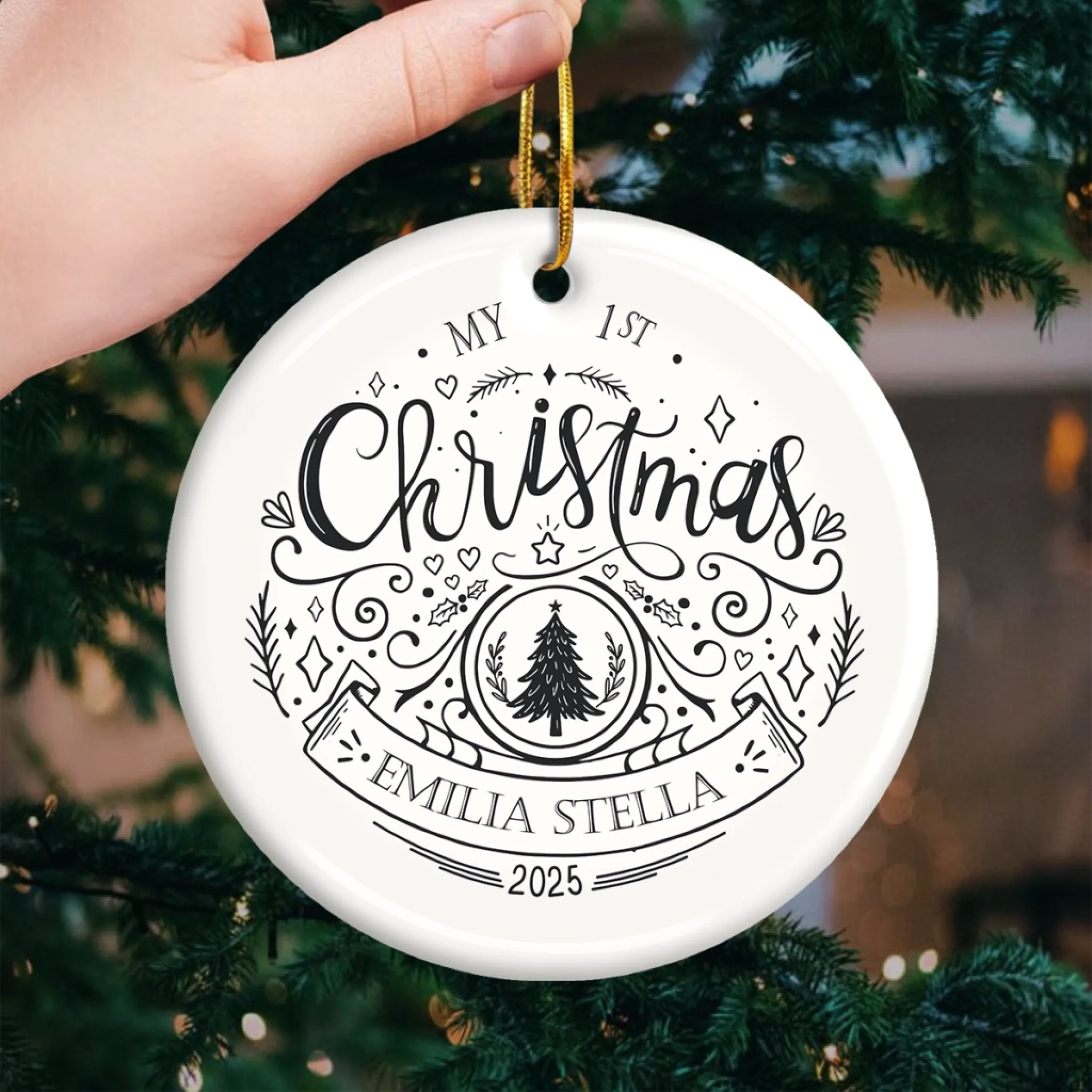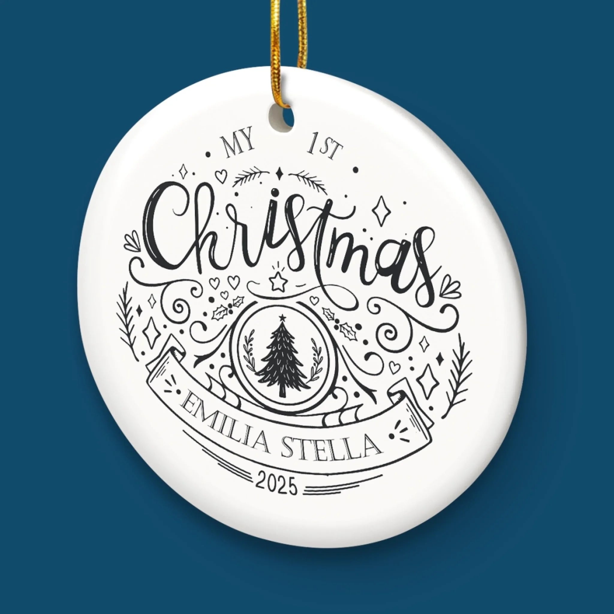 Custom Baby First Christmas Ceramic Ornament - Personalized Christmas Baby Shower, Gender Reveal Gifts For New Moms, New Dads, New Parents - Giggles And Gingerbread