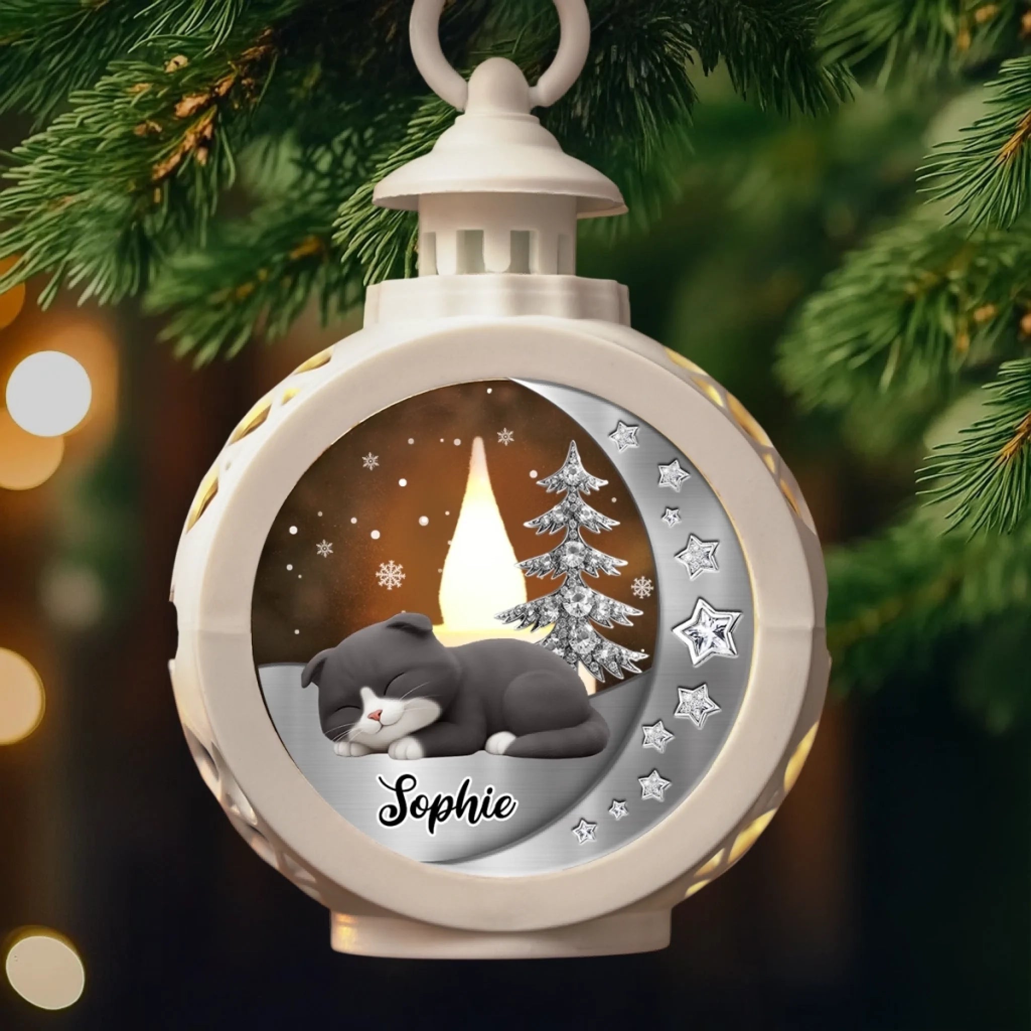 Custom Candlelight Lantern Ornament - Personalized Pet Christmas Memorial Sympathy Gifts For Cats - Purrs Light Our Nights