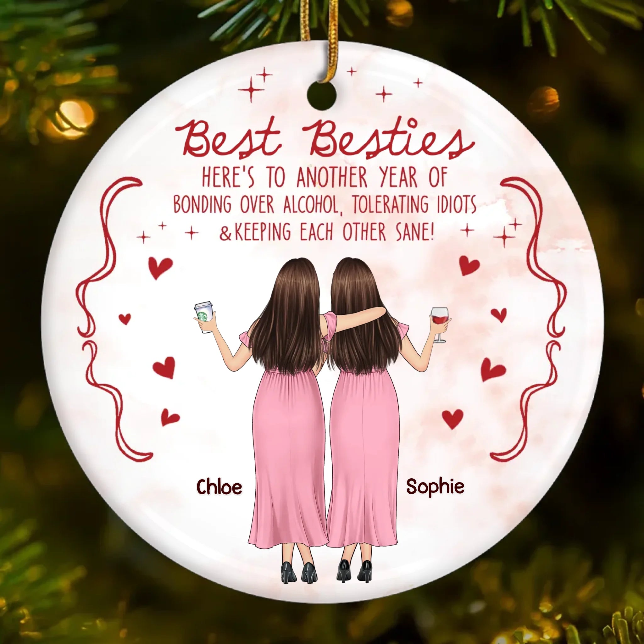 Custom Ceramic Ornament - Personalized Best Friend Christmas Birthday Gifts For Women, Besties, Sisters, BFF - Shining Through Every Season