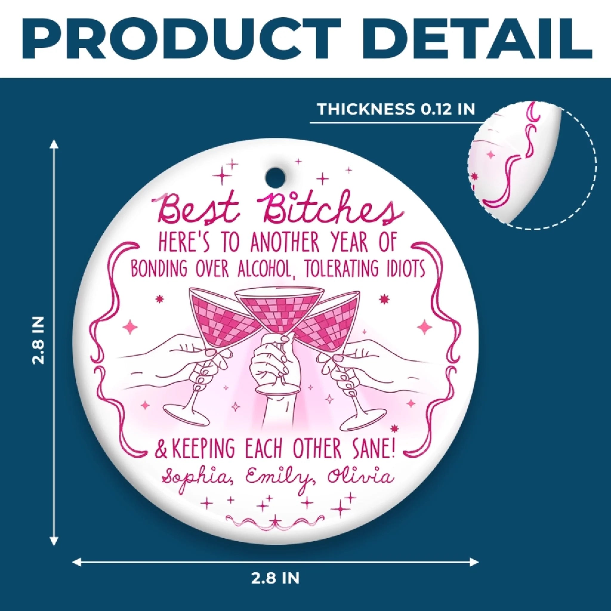 Custom Ceramic Ornament - Personalized Best Friend Christmas Birthday Gifts For Women, Besties, Sisters, BFF - Together We Spark Every Day