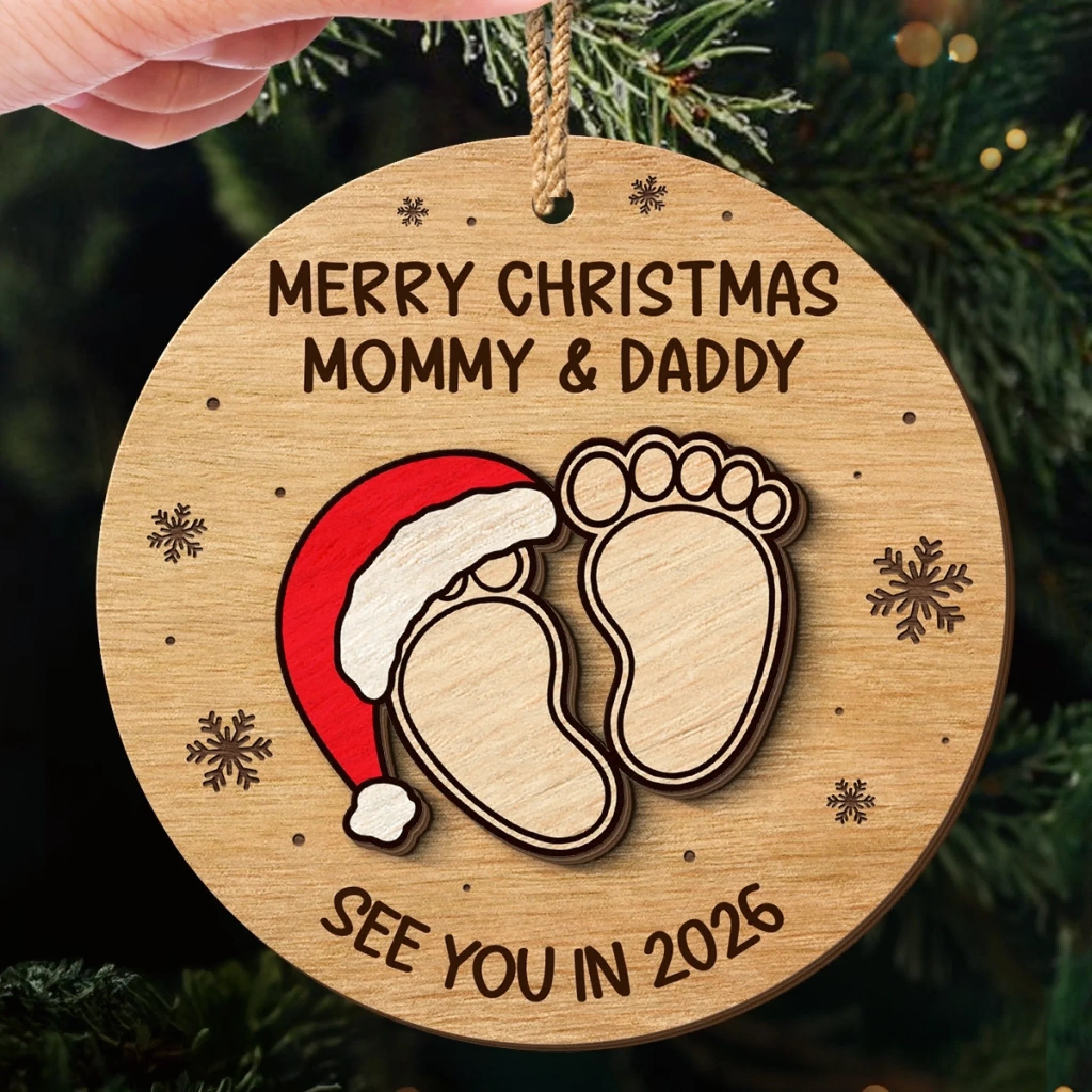 Custom Double Layer Wooden Ornament - Personalized Christmas Baby Shower, Gender Reveal Gifts For New Moms, New Dads, New Parents - A New Star Is Born