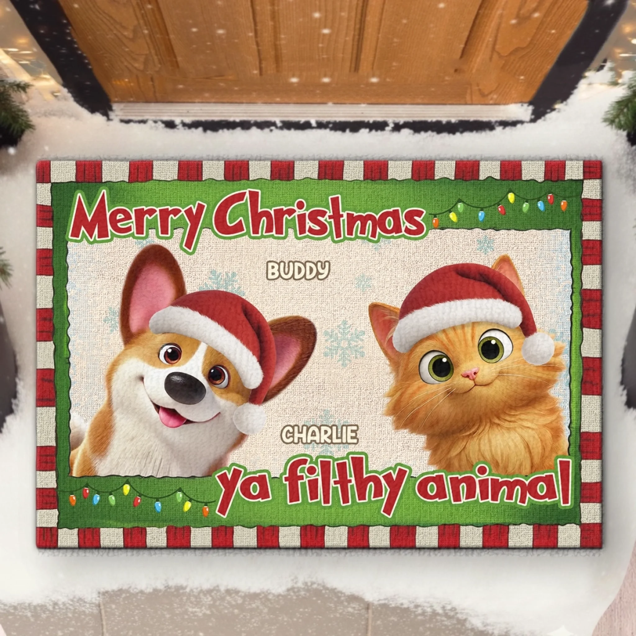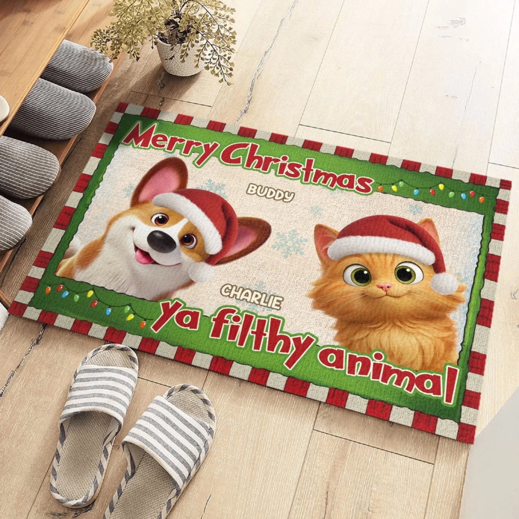 Custom Home Decor Decorative Mat - Personalized Christmas Birthday Gifts For Dog Cat Lovers, Dog Dad And Mom, Cat Owners - Merry Chaos And Happy Paws
