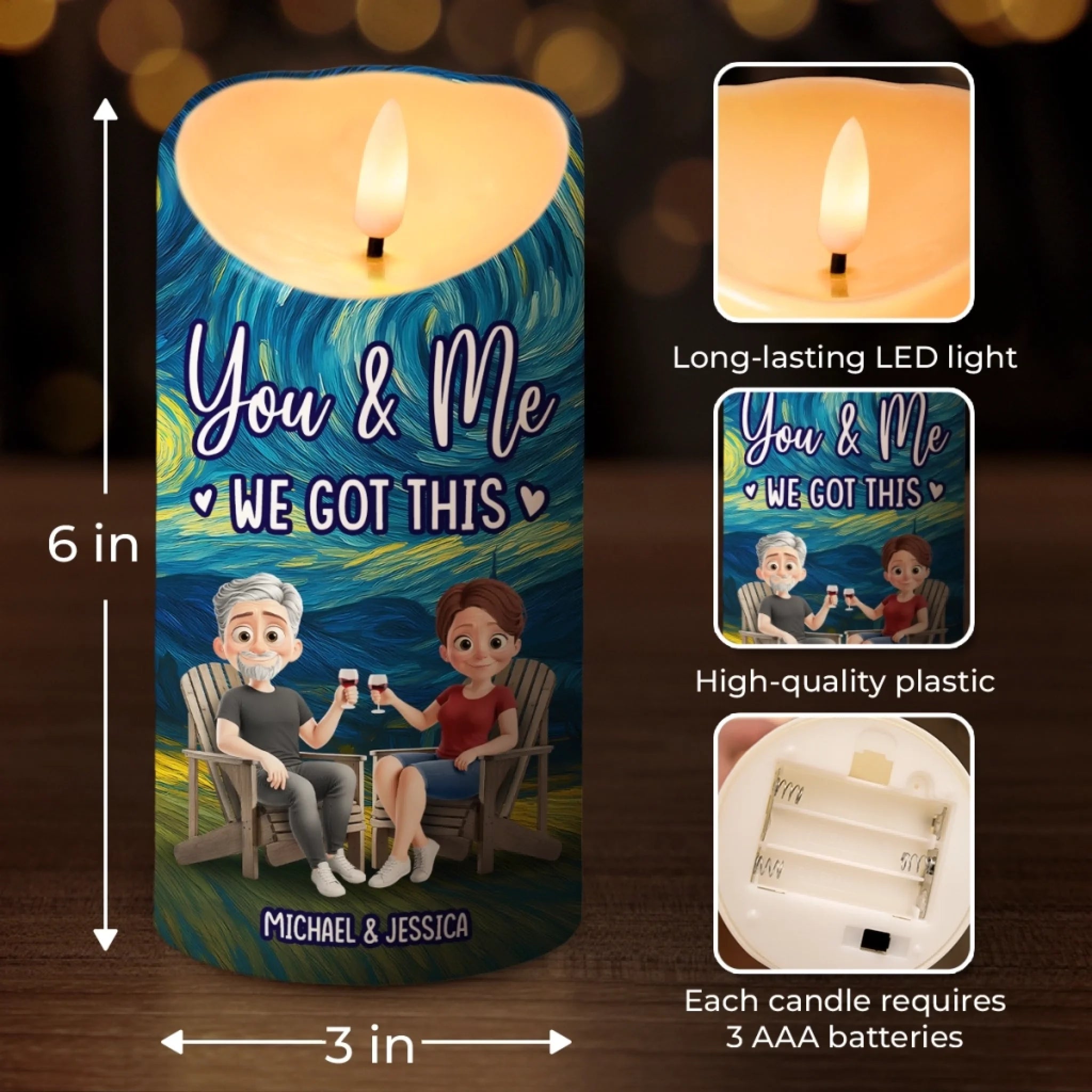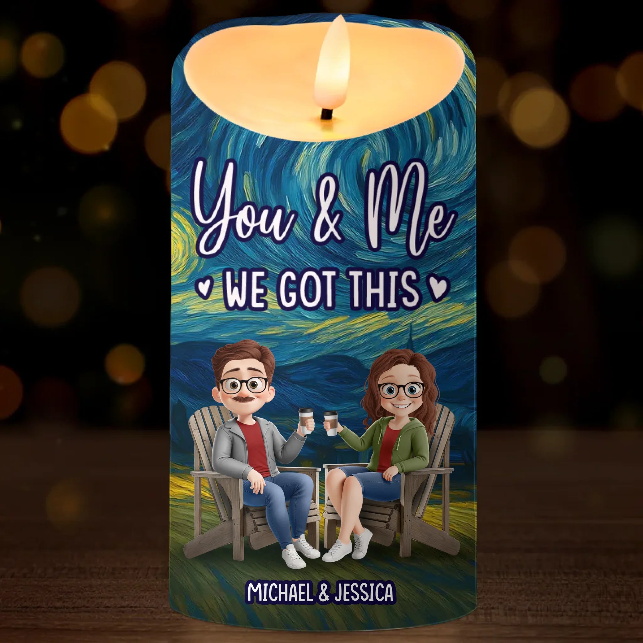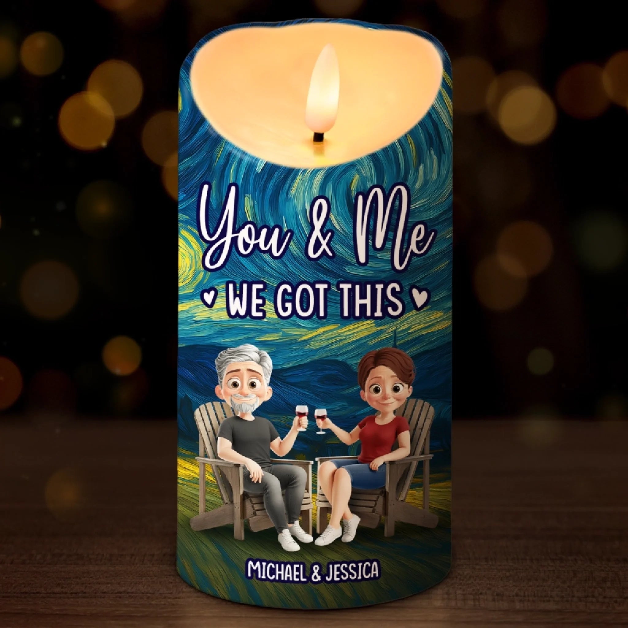 Custom LED Candle - Personalized Anniversary Wedding Gifts For Husband And Wife, Him And Her - Our Love Lights The Night