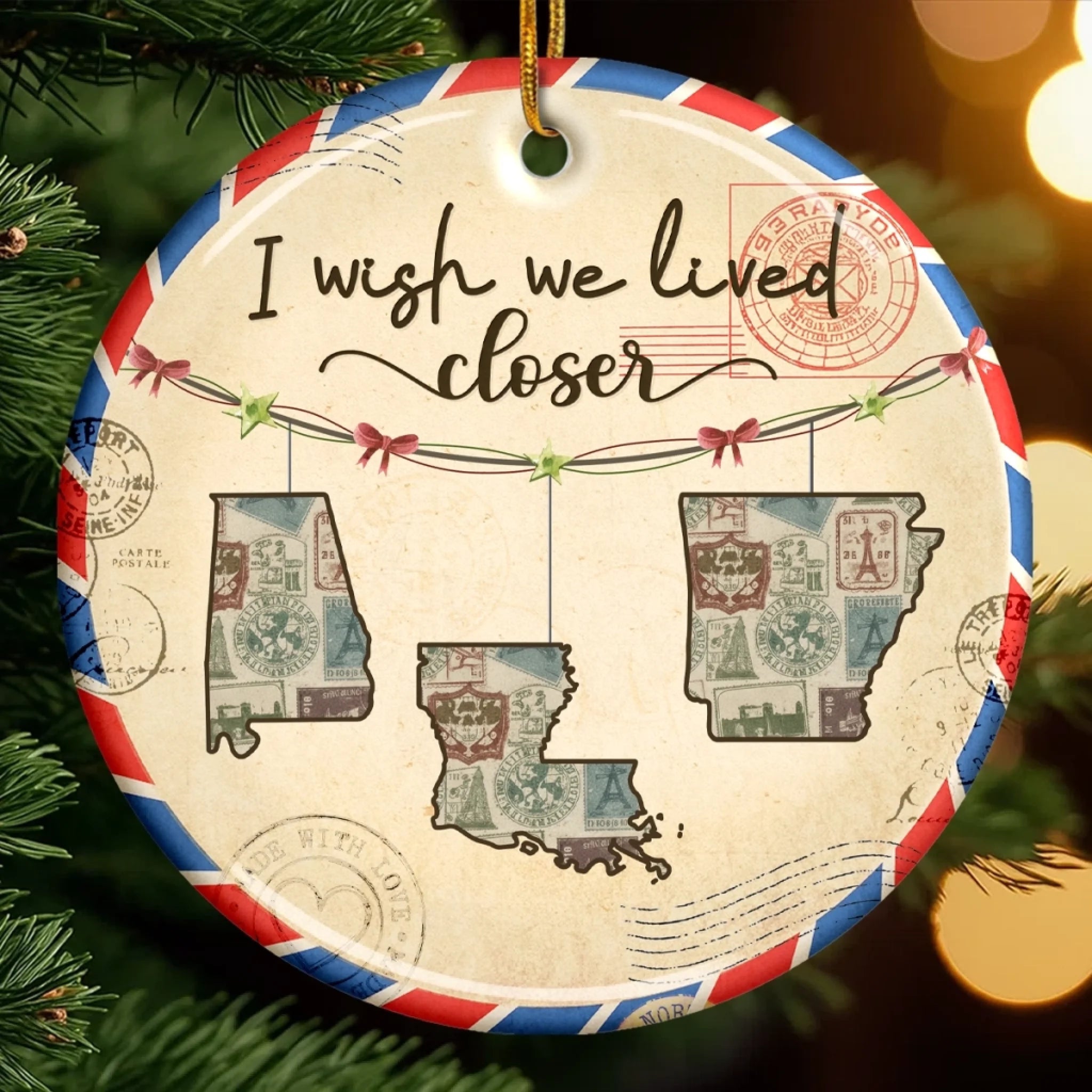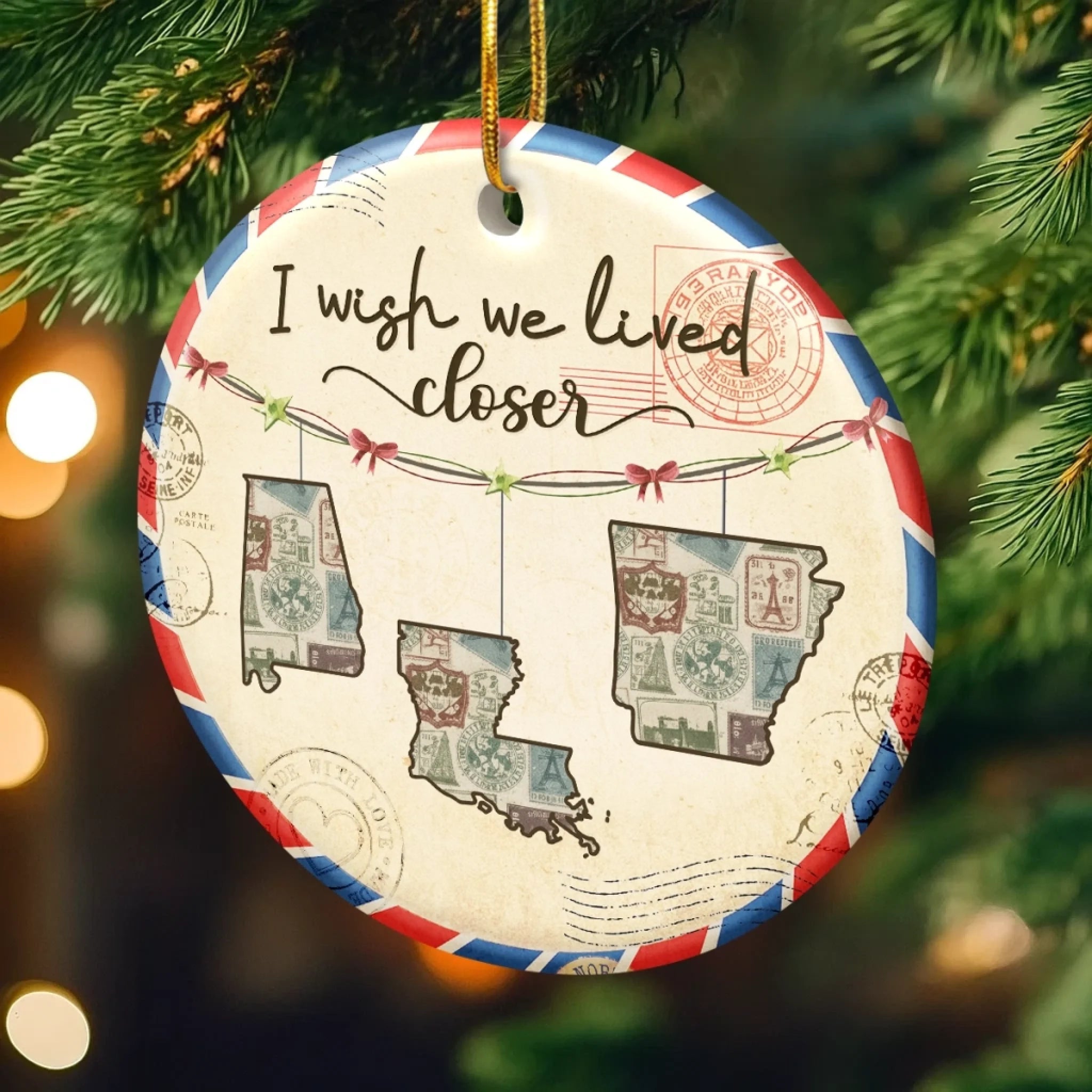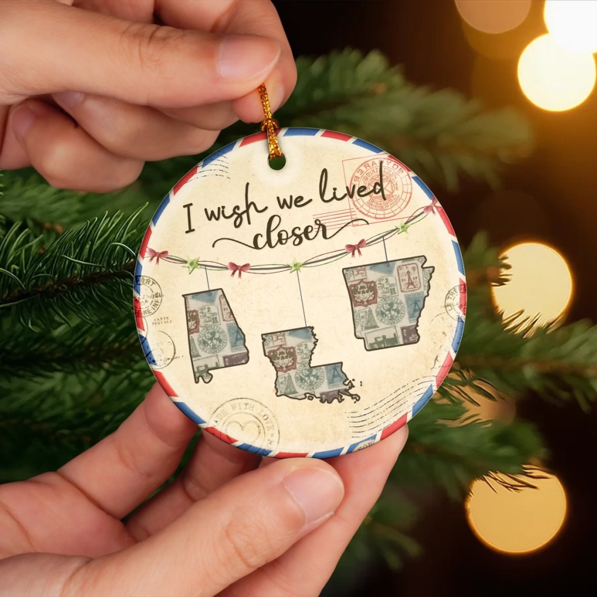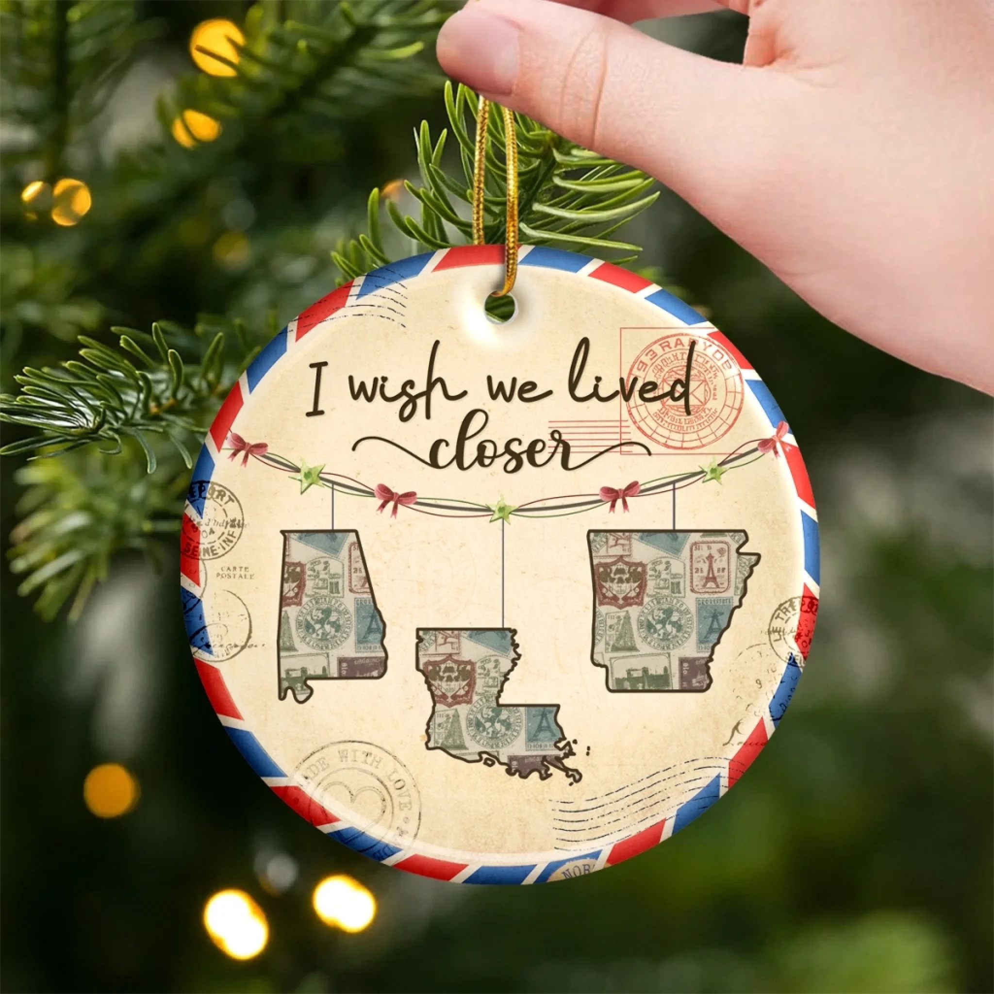 Custom Long Distance Ceramic Ornament - Personalized Best Friend Christmas Birthday Gifts For Women, Besties, Sisters, BFF - Friendship Travels Any Mile