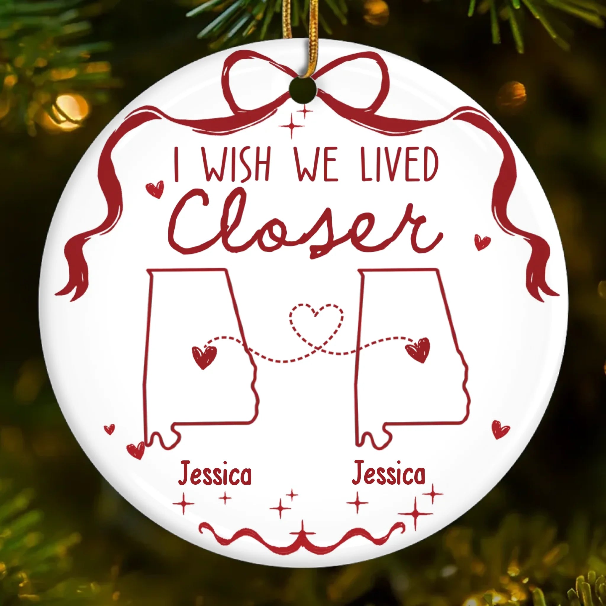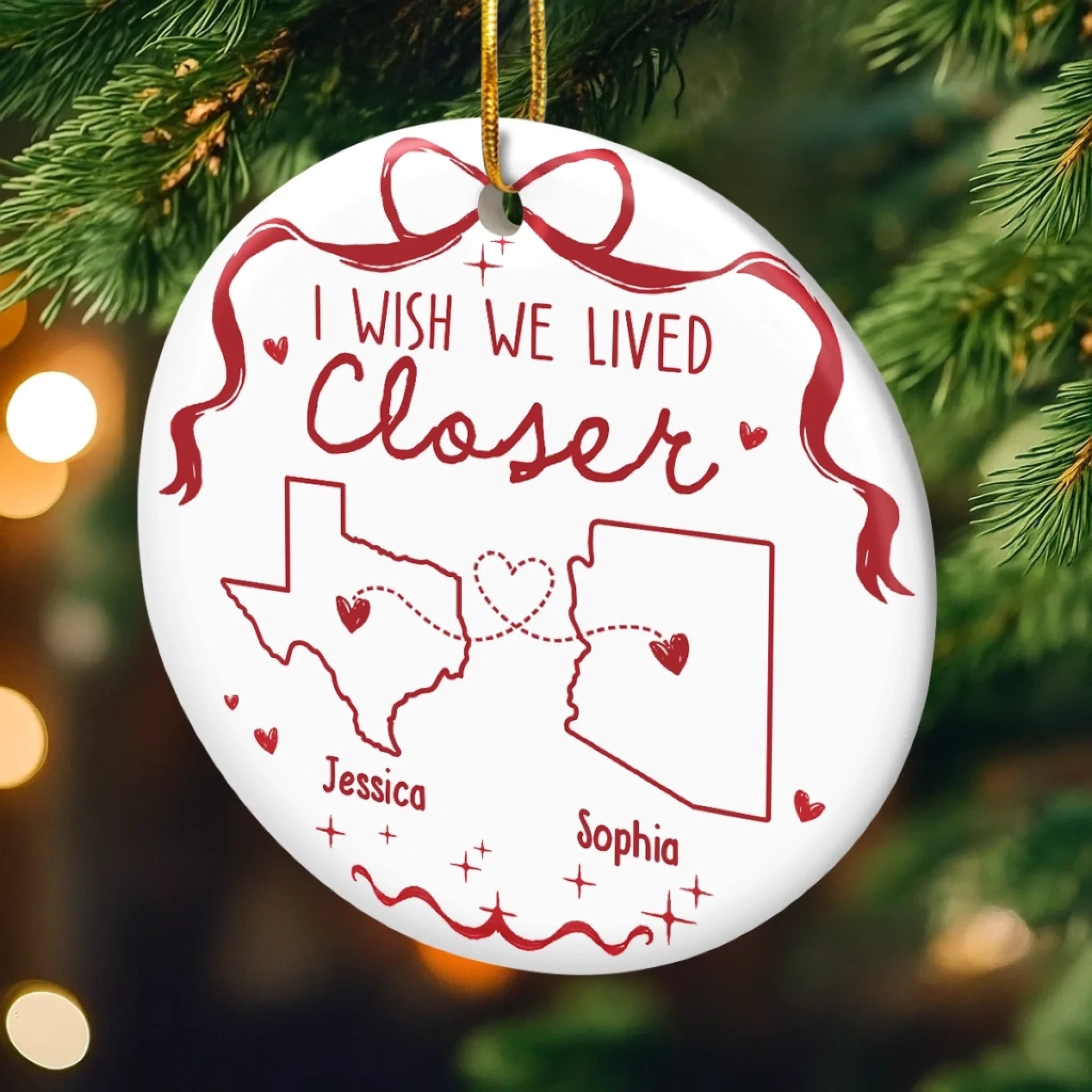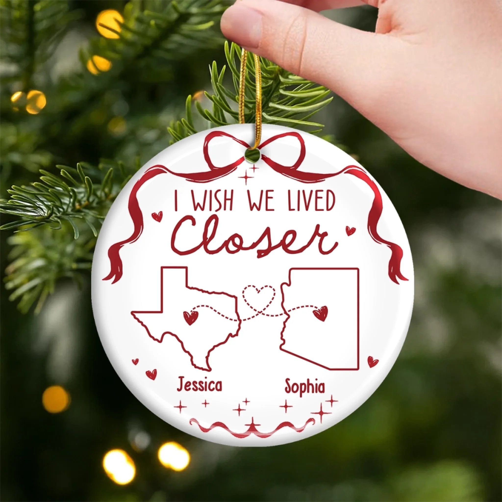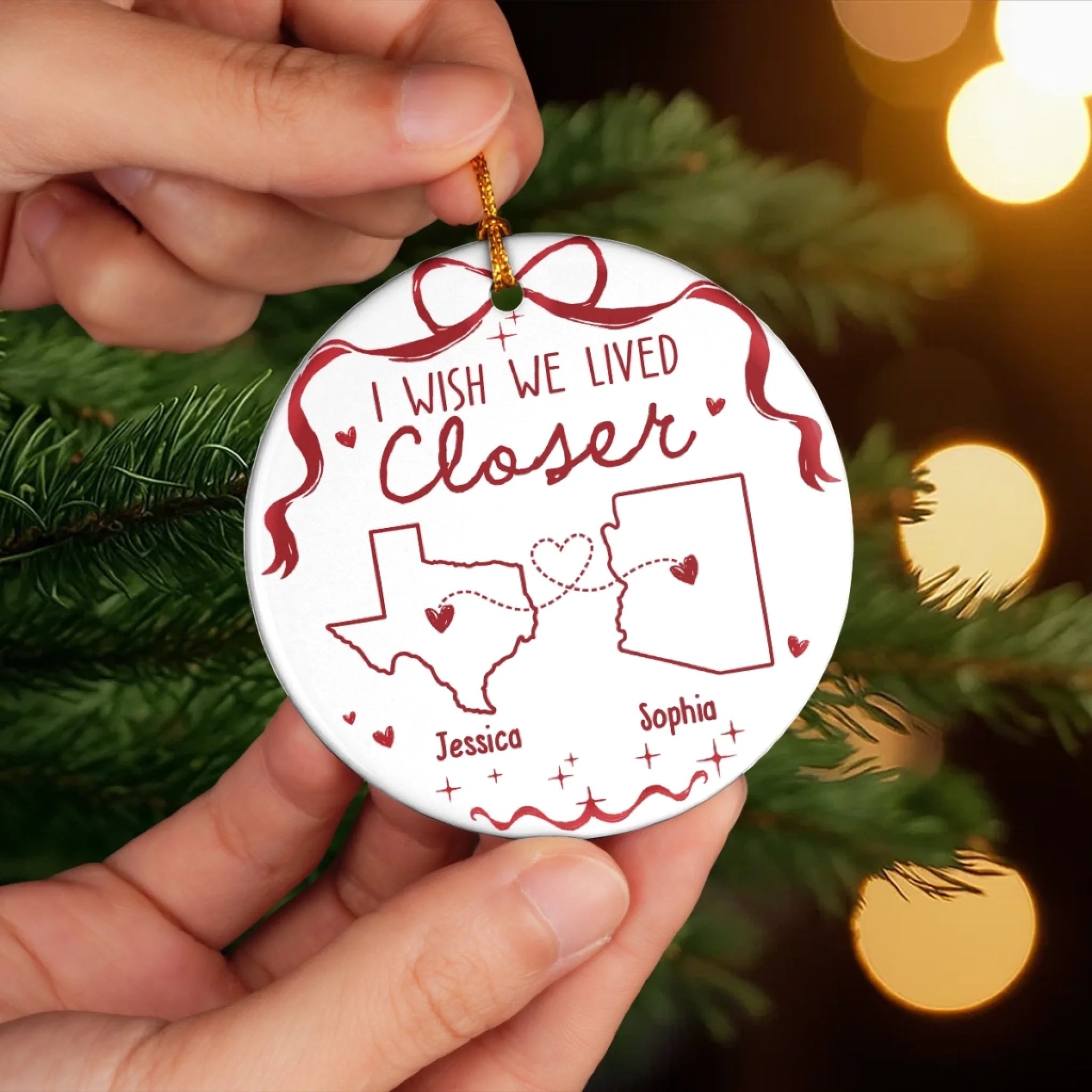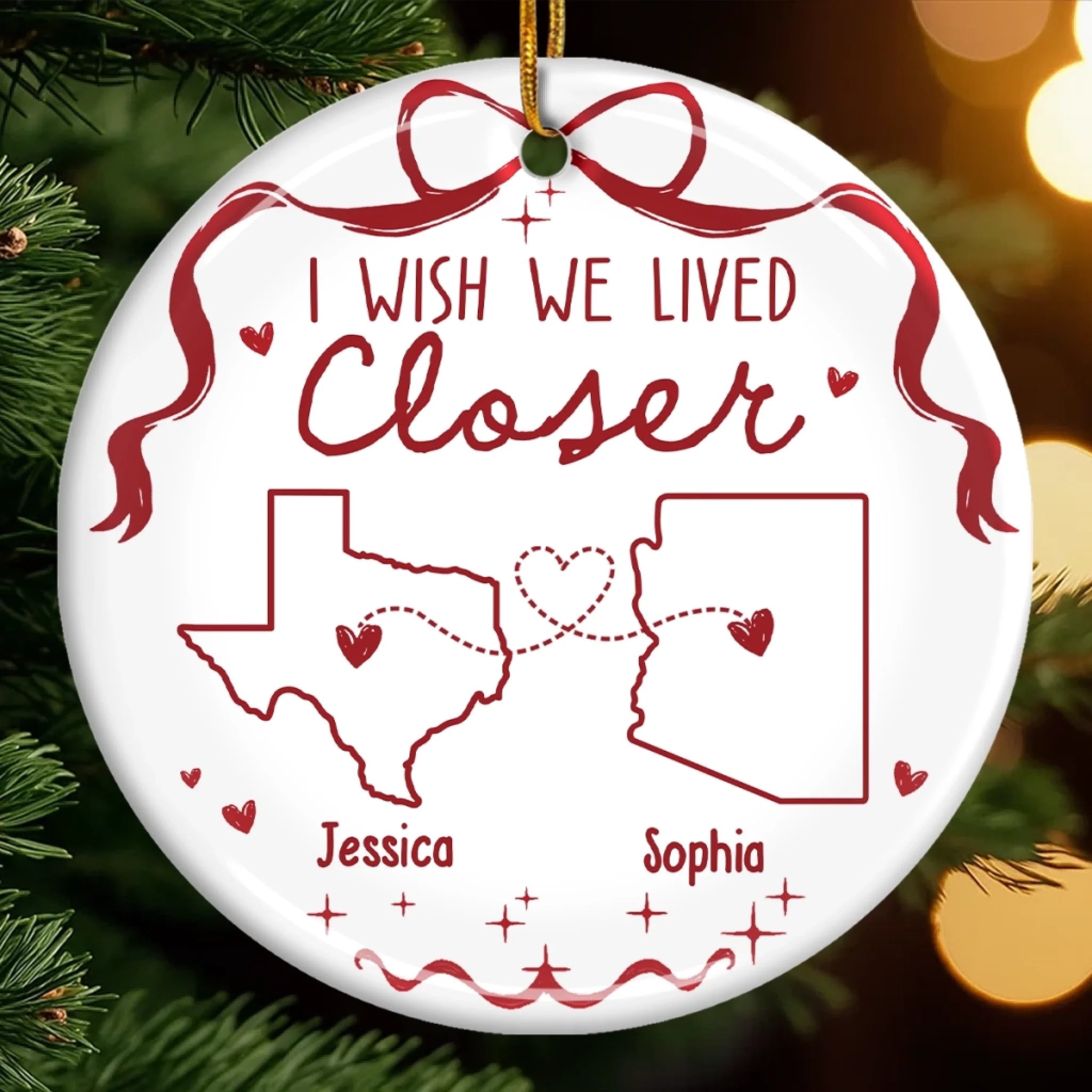 Custom Long Distance Ceramic Ornament - Personalized Best Friend Christmas Birthday Gifts For Women, Besties, Sisters, BFF - Hearts Connected Across The Miles