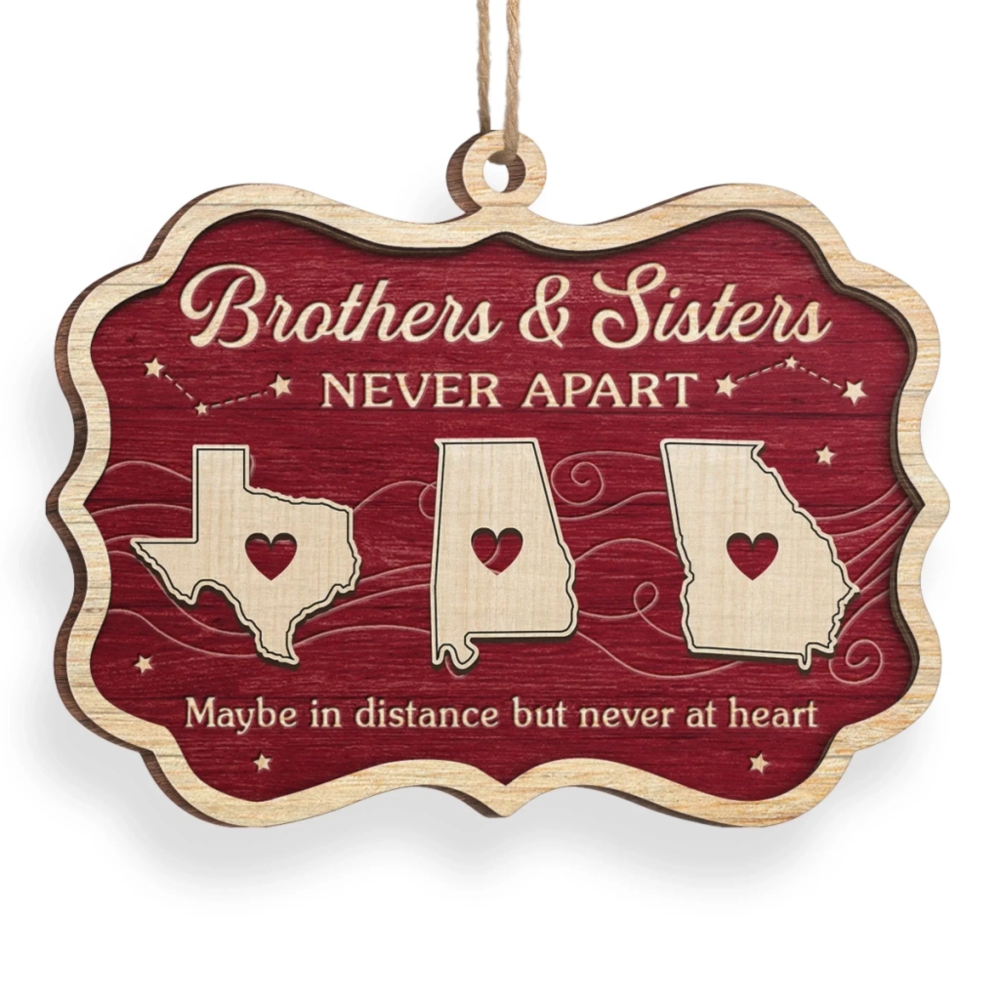Custom Long Distance Wood Ornament - New Arrival, Personalized Christmas Birthday Gifts For Brother, Sister - Sibling Love Knows No Borders AMZ