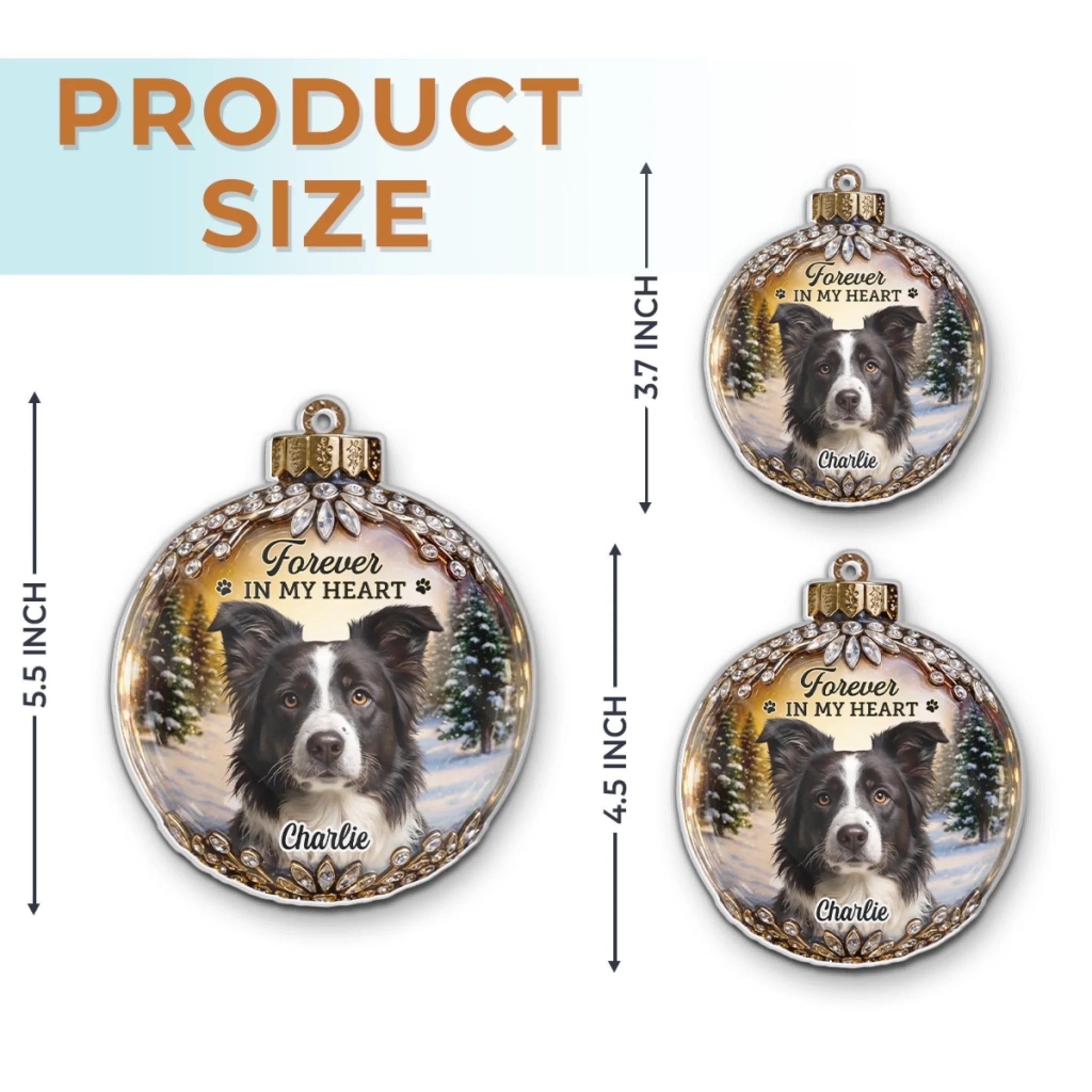 This ornament was very special as it was for my son who recently lost his dog Luke of 11 years. Luke died suddenly and was a very special rescue dog. He was kind and fun and gentle. My son had lost his two cats a year and a half before so I decided to put all three of them on the ornament, in order of their passing. It was a bit smaller than I thought it would be as I had purchased other similar ornaments (not glass) at christmas but none the less, it was beautiful and he really appreciated it. Not sure why it had to be of glass as it is hanging and I am afraid that one day the ribbon might come loose and fall shattering the ornament. I hope not but maybe it should be made of the other type of material so that if it were to fall for any reason, it won't break.