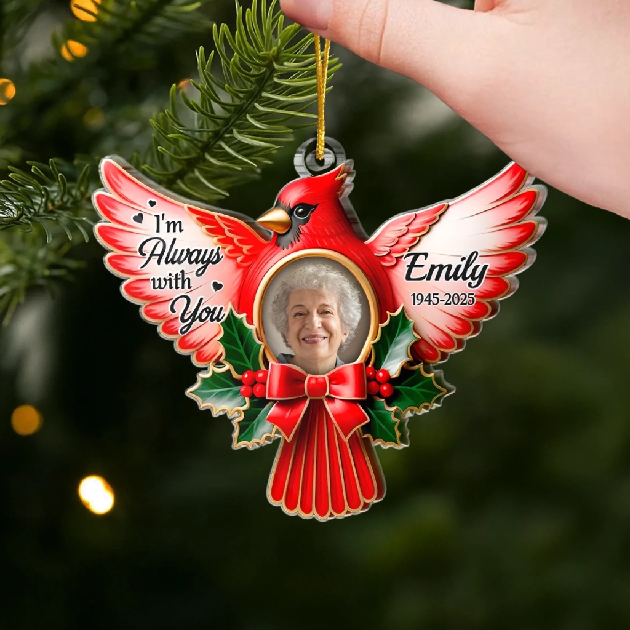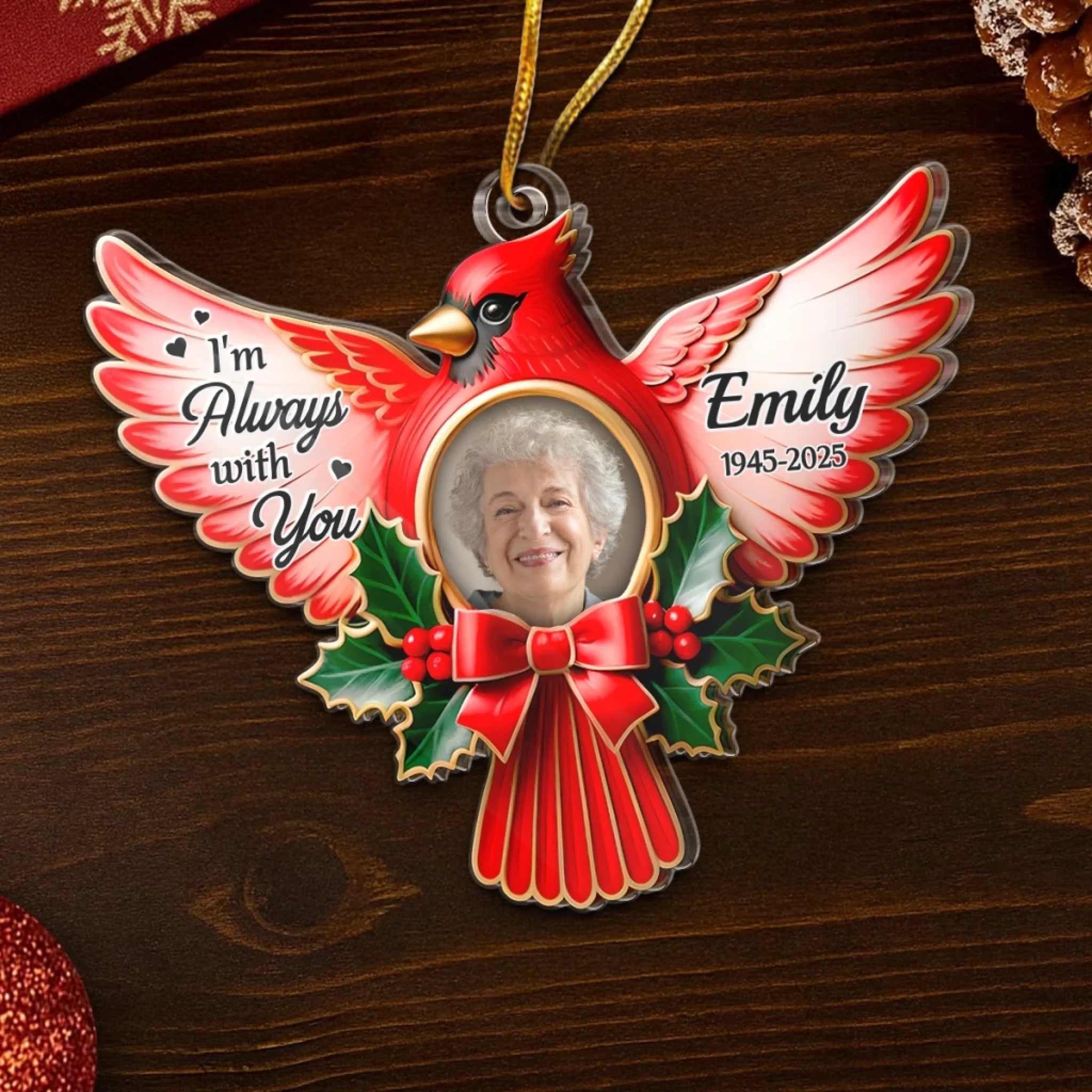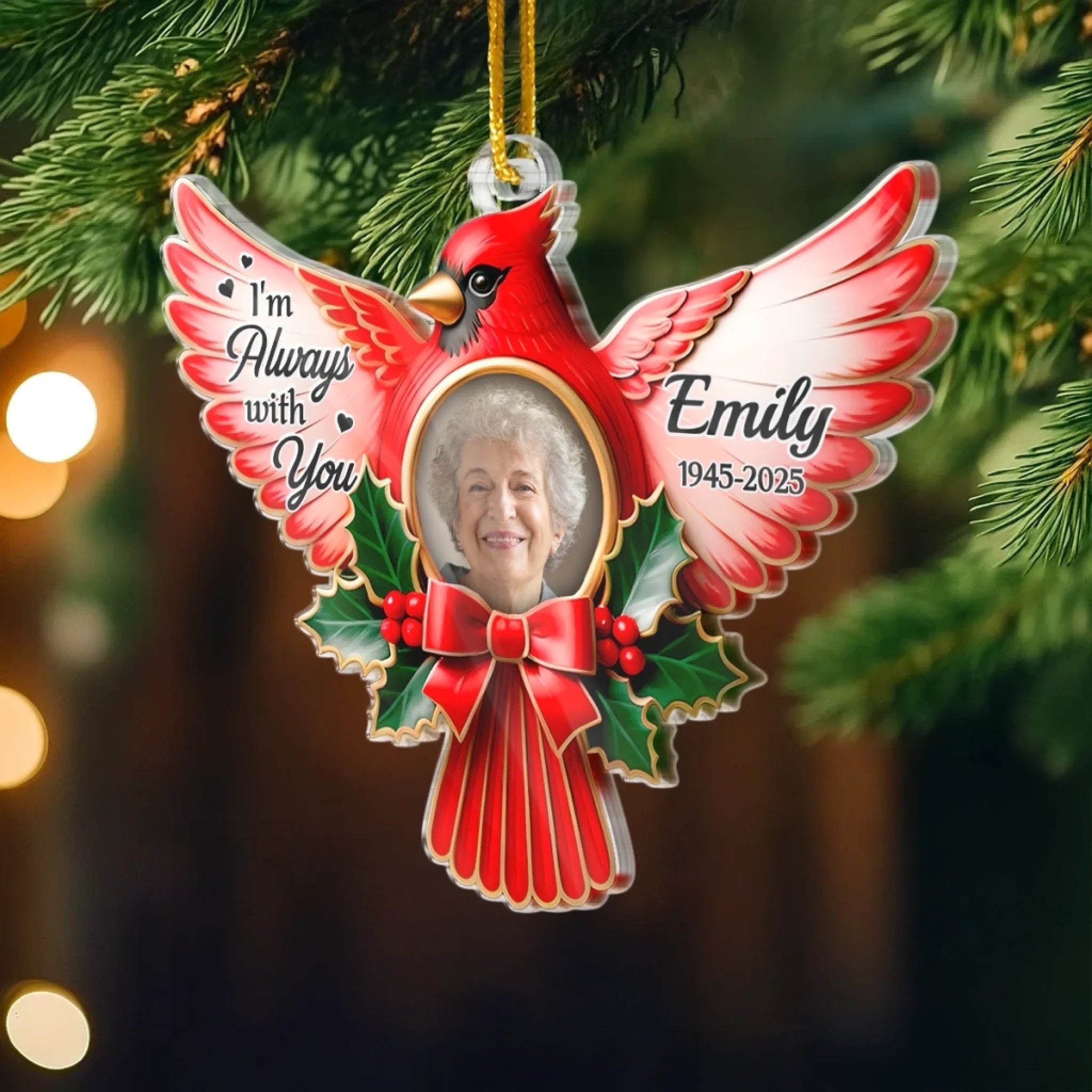Custom Photo Cardinal Acrylic Ornament - Personalized Christmas Memorial Sympathy Gifts For Loss Of Mom, Dad - A Life Remembered With Love