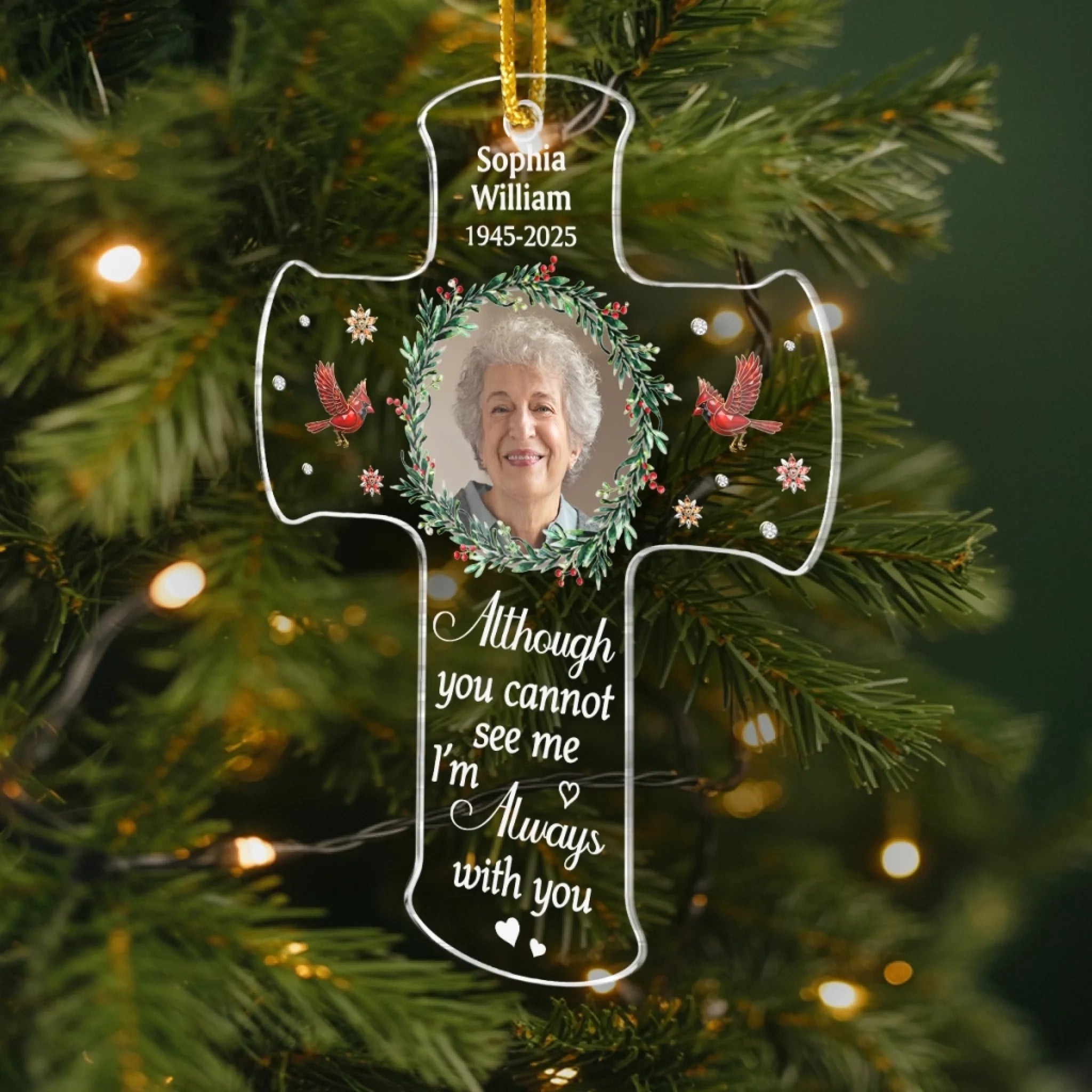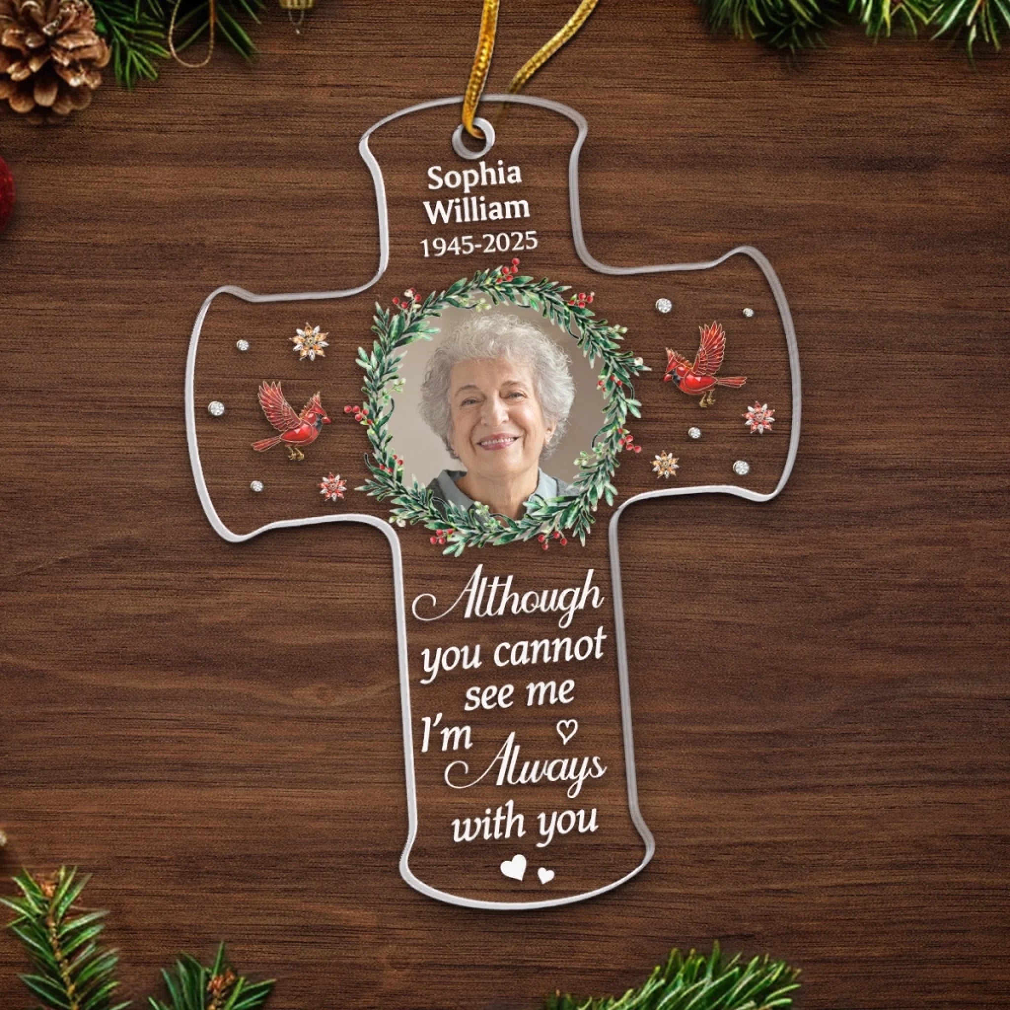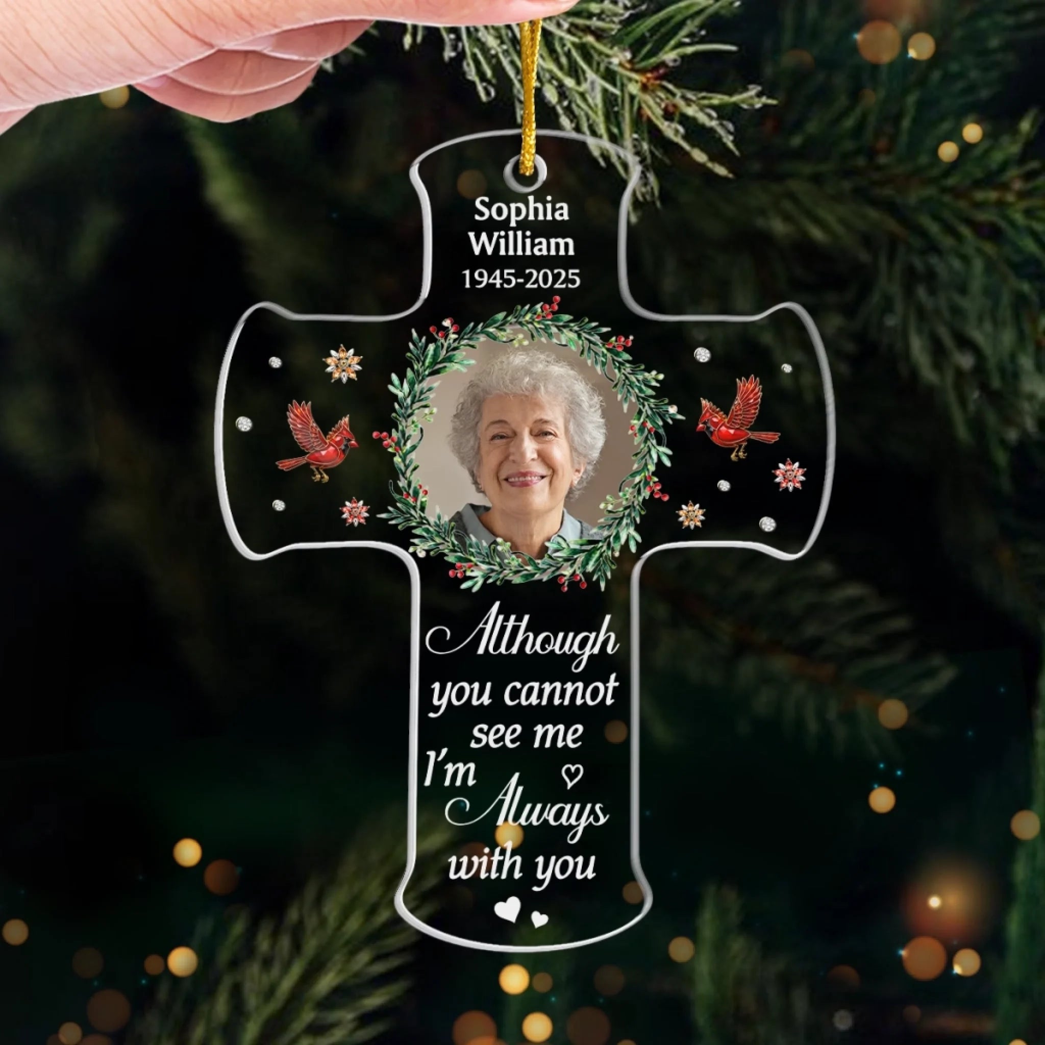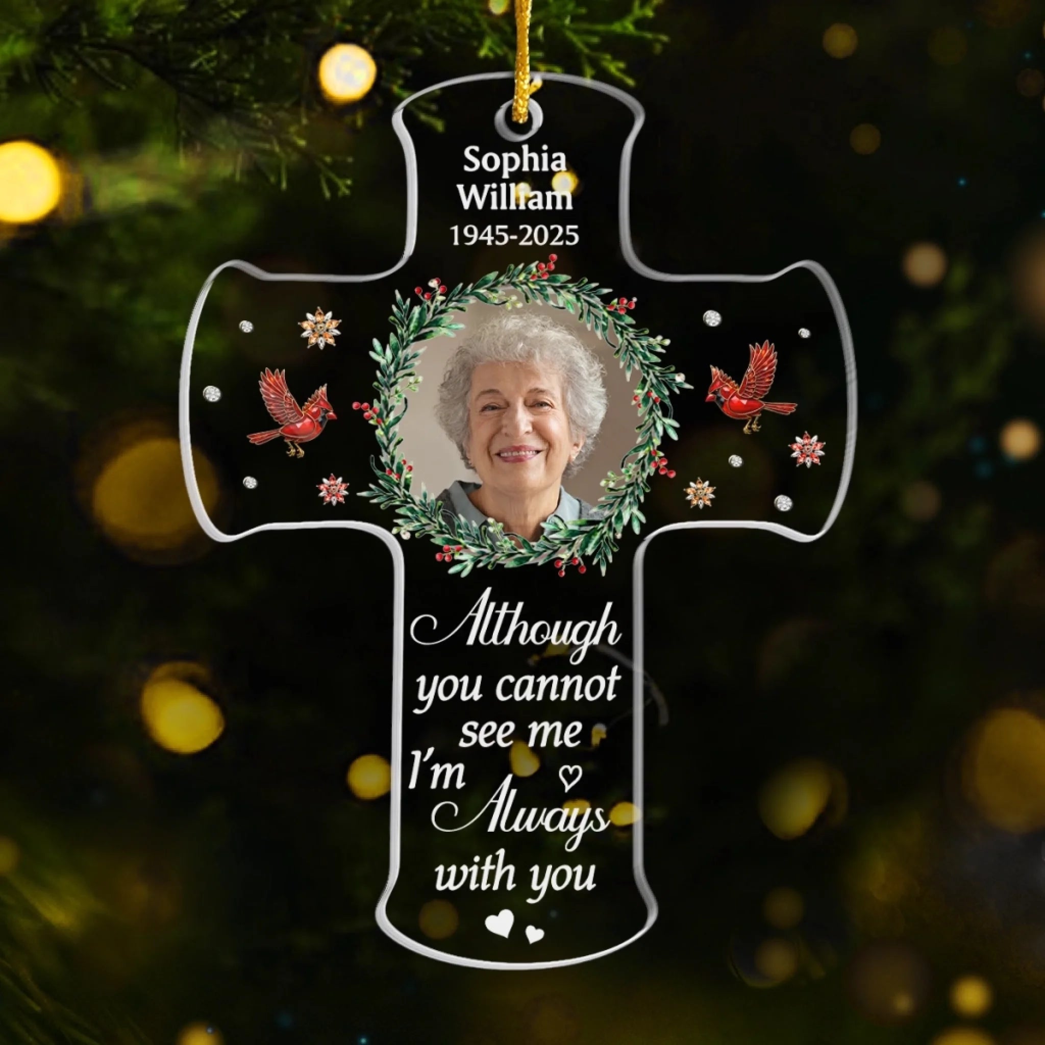Custom Photo Cardinal Acrylic Ornament - Personalized Christmas Memorial Sympathy Gifts For Loss Of Mom, Dad - Your Spirit Lives Within Me