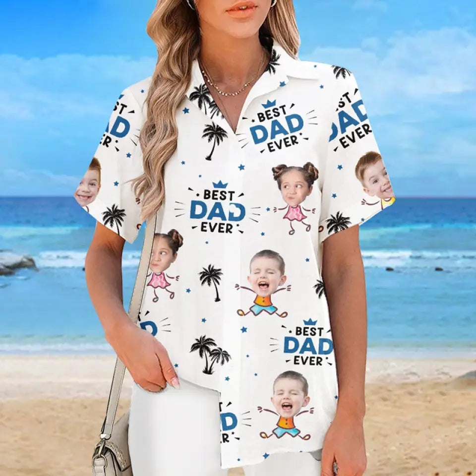 T-shirt hawaïen unisexe personnalisé avec photo « Papa le plus cool de la plage » - Cadeau idéal pour les vacances d'été, pour papa
