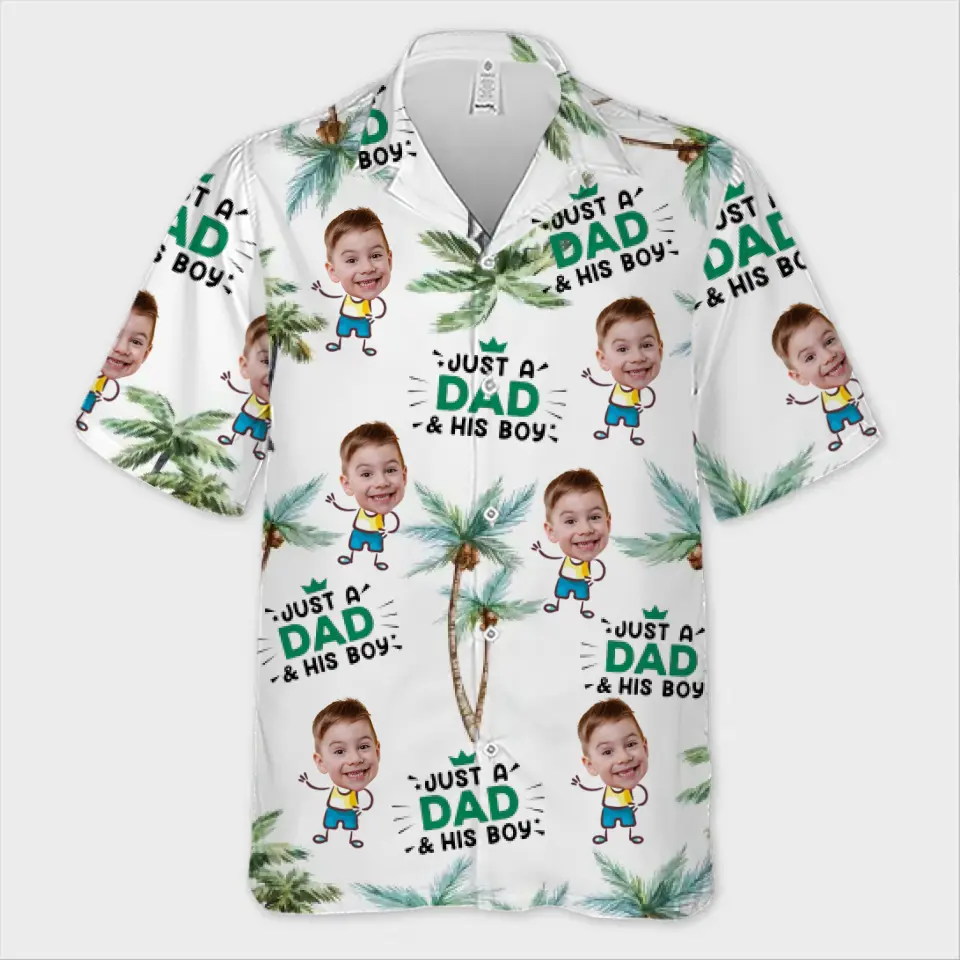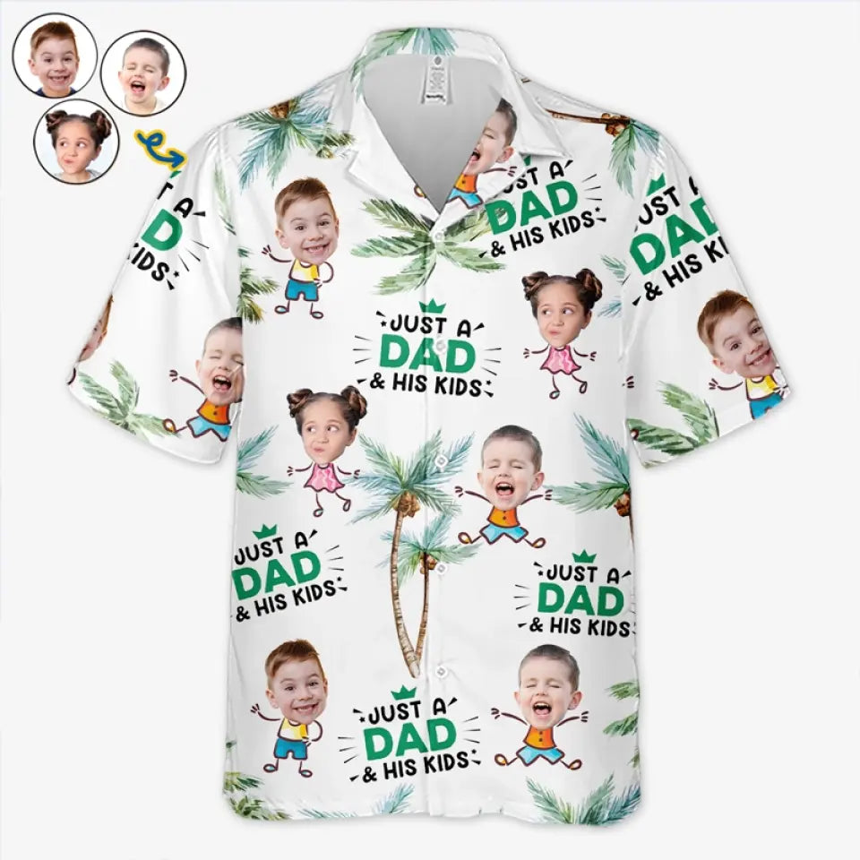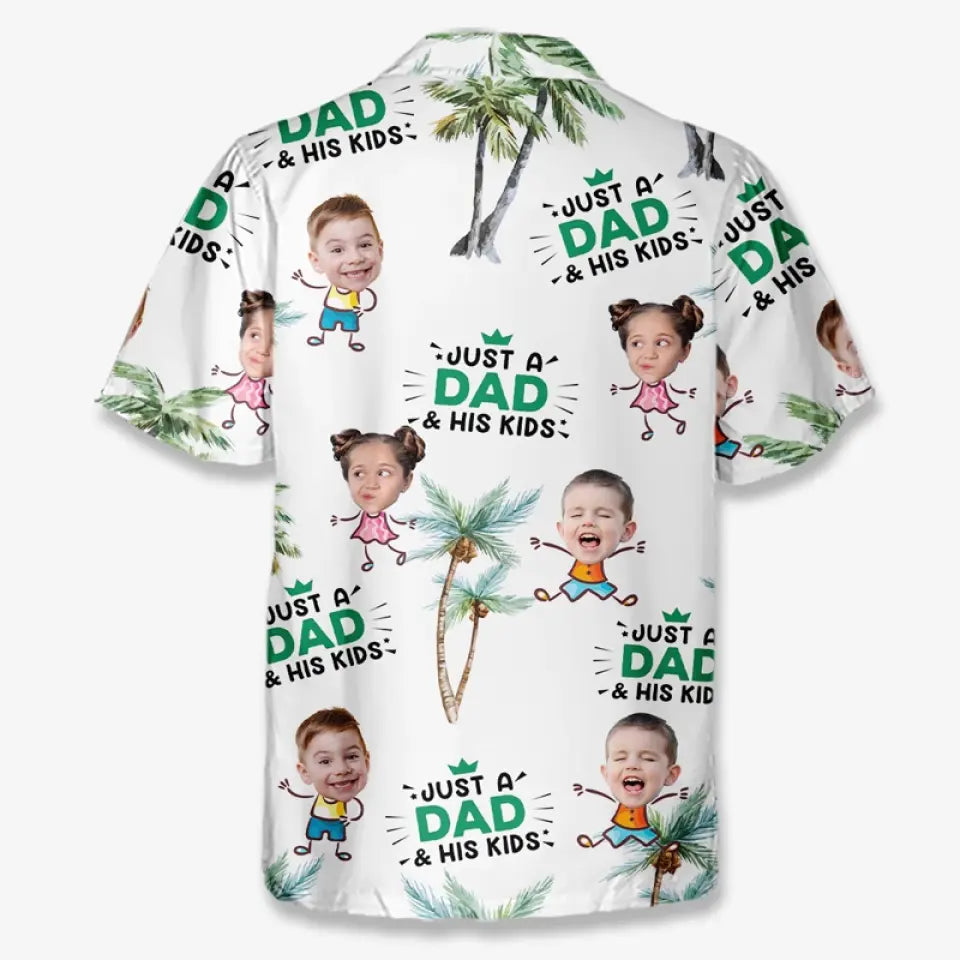 Photo personnalisée juste un père et ses enfants - Chemise hawaïenne tropicale unisexe personnalisée pour la famille - Cadeau de vacances d'été, cadeau pour papa, grand-père