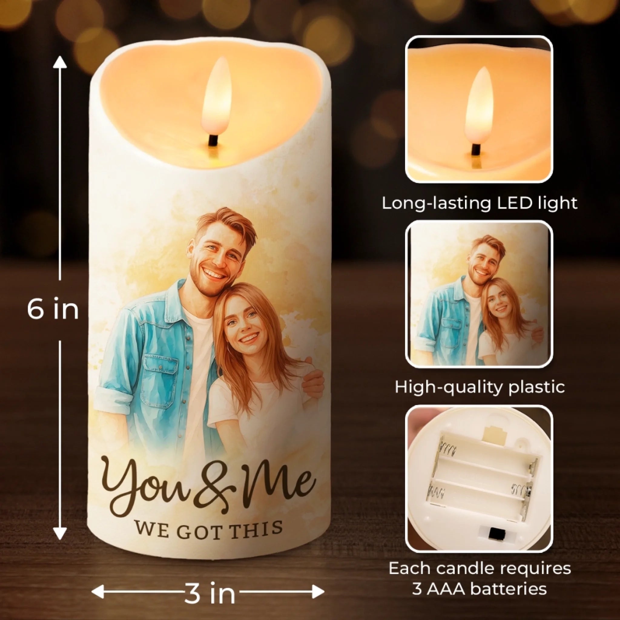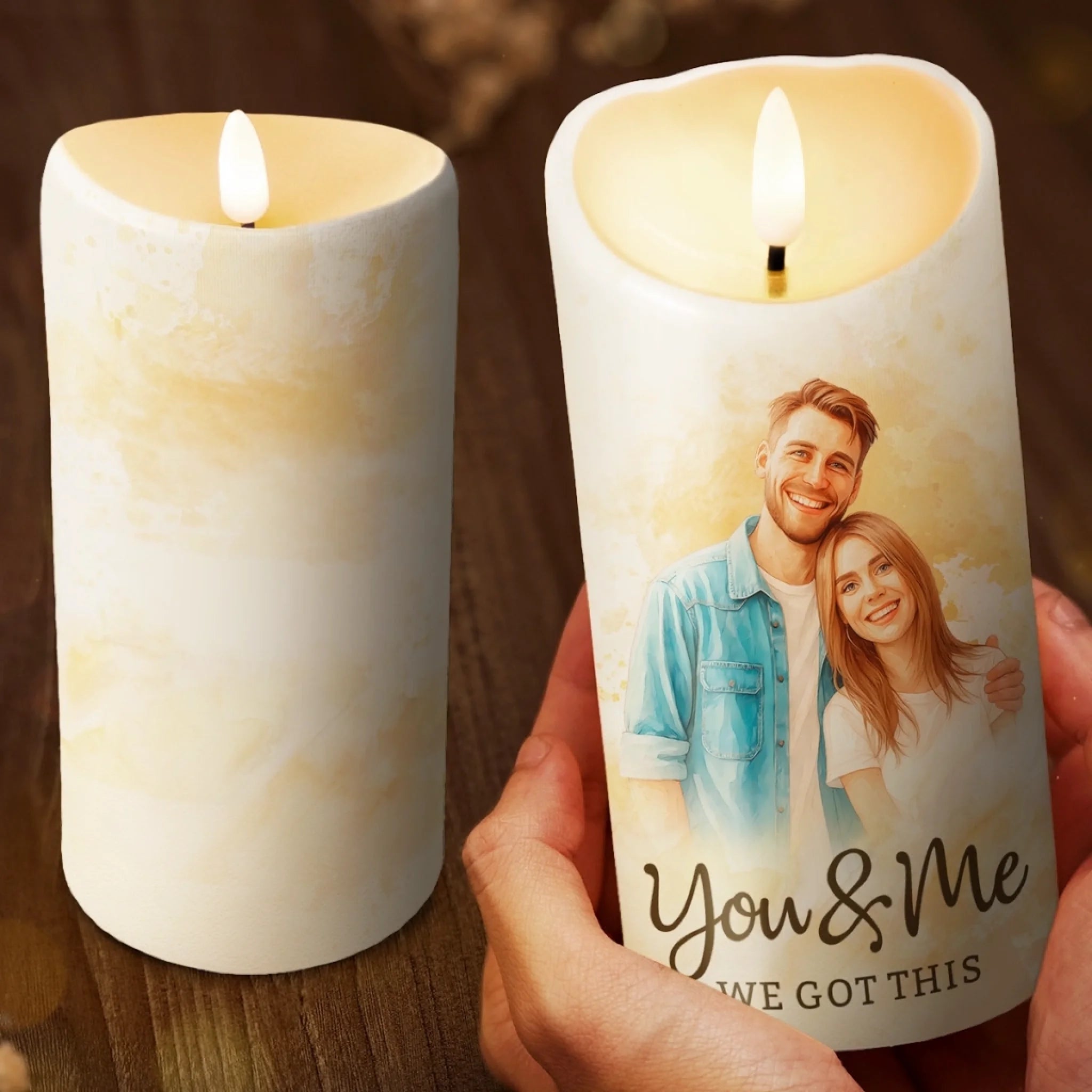 Custom Photo Watercolor LED Candle - Personalized Anniversary Wedding Gifts For Husband And Wife, Him And Her - Our Love Lights The Way