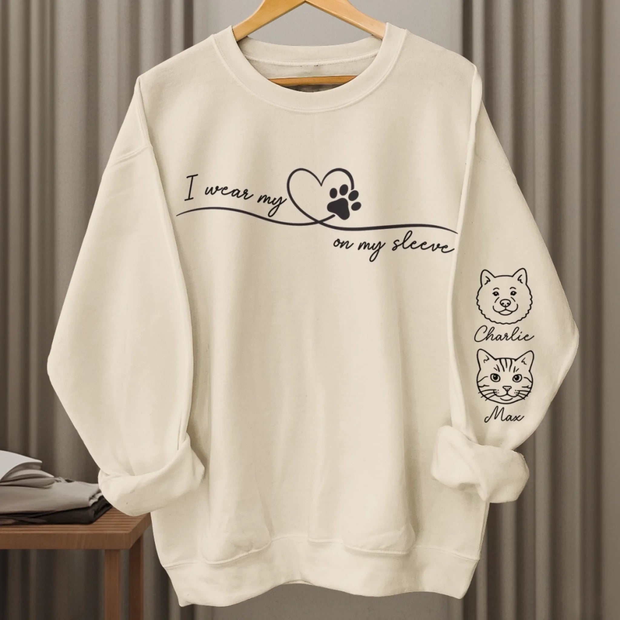 Custom Unisex Sweatshirt, Hoodie With Design On Sleeve - Personalized Christmas Birthday Gifts For Dog Cat Lovers, Dog Dad And Mom, Cat Owners - My Heart Runs On Paw Power