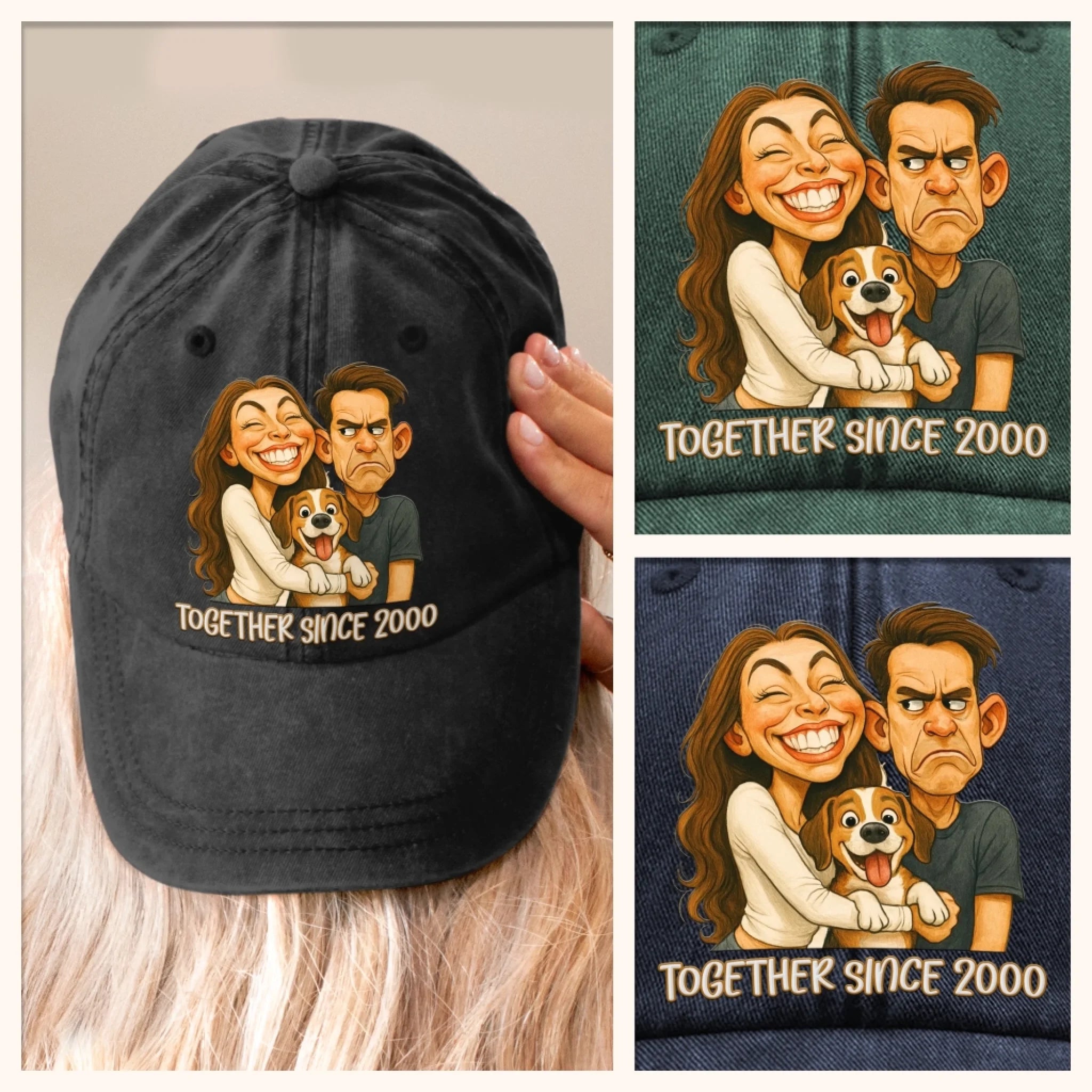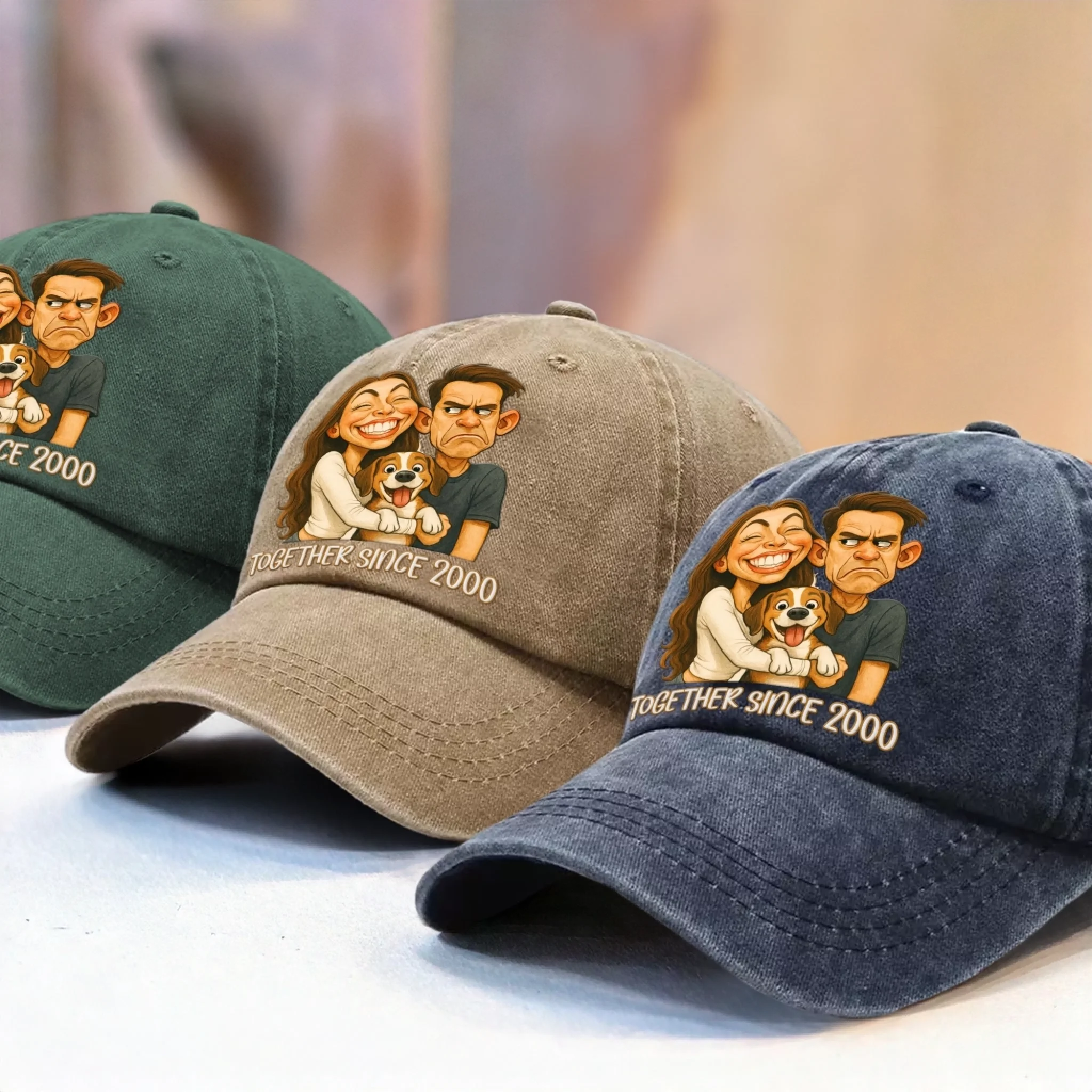 Casquette de baseball vintage en denim délavé personnalisée - Cadeaux d'anniversaire de mariage personnalisés pour mari et femme, amoureux des chiens et des chats - Ensemble depuis