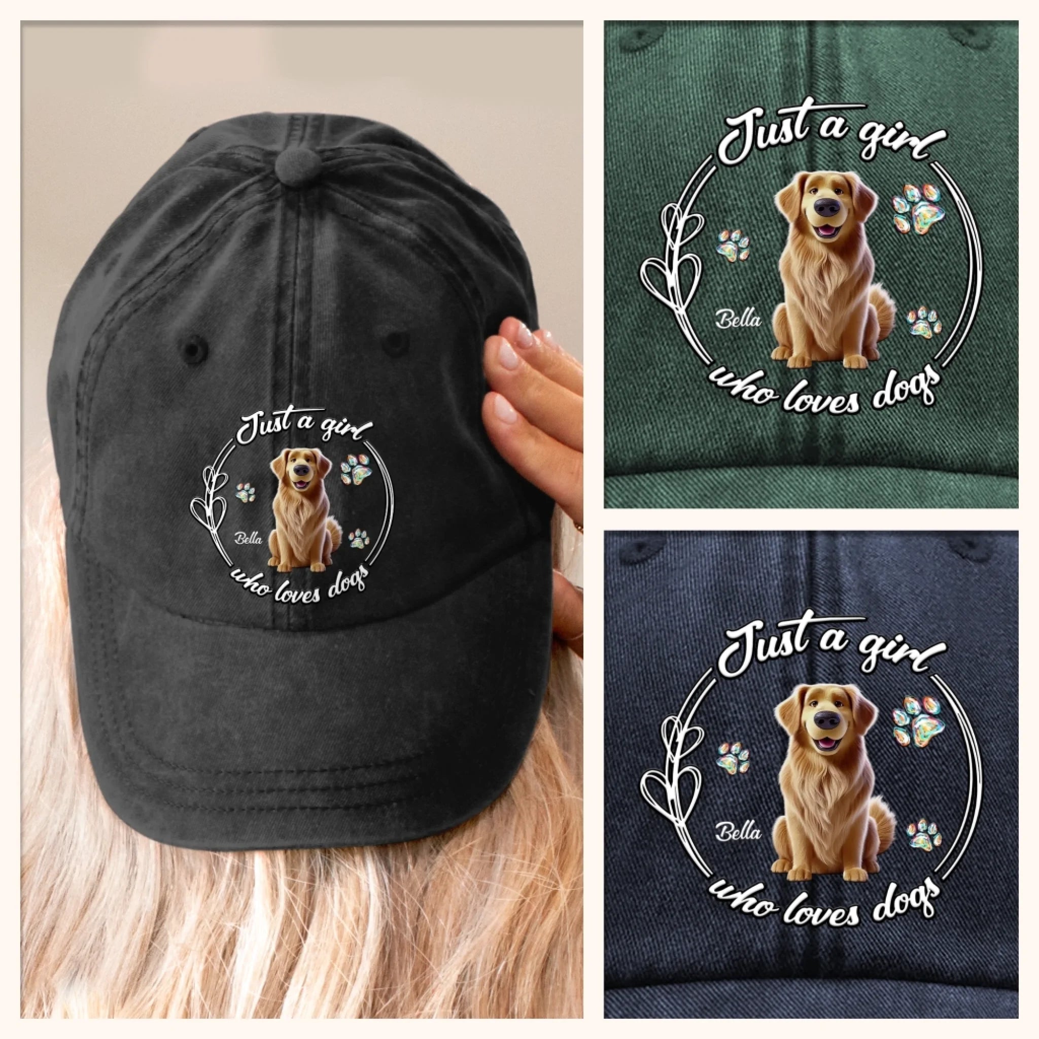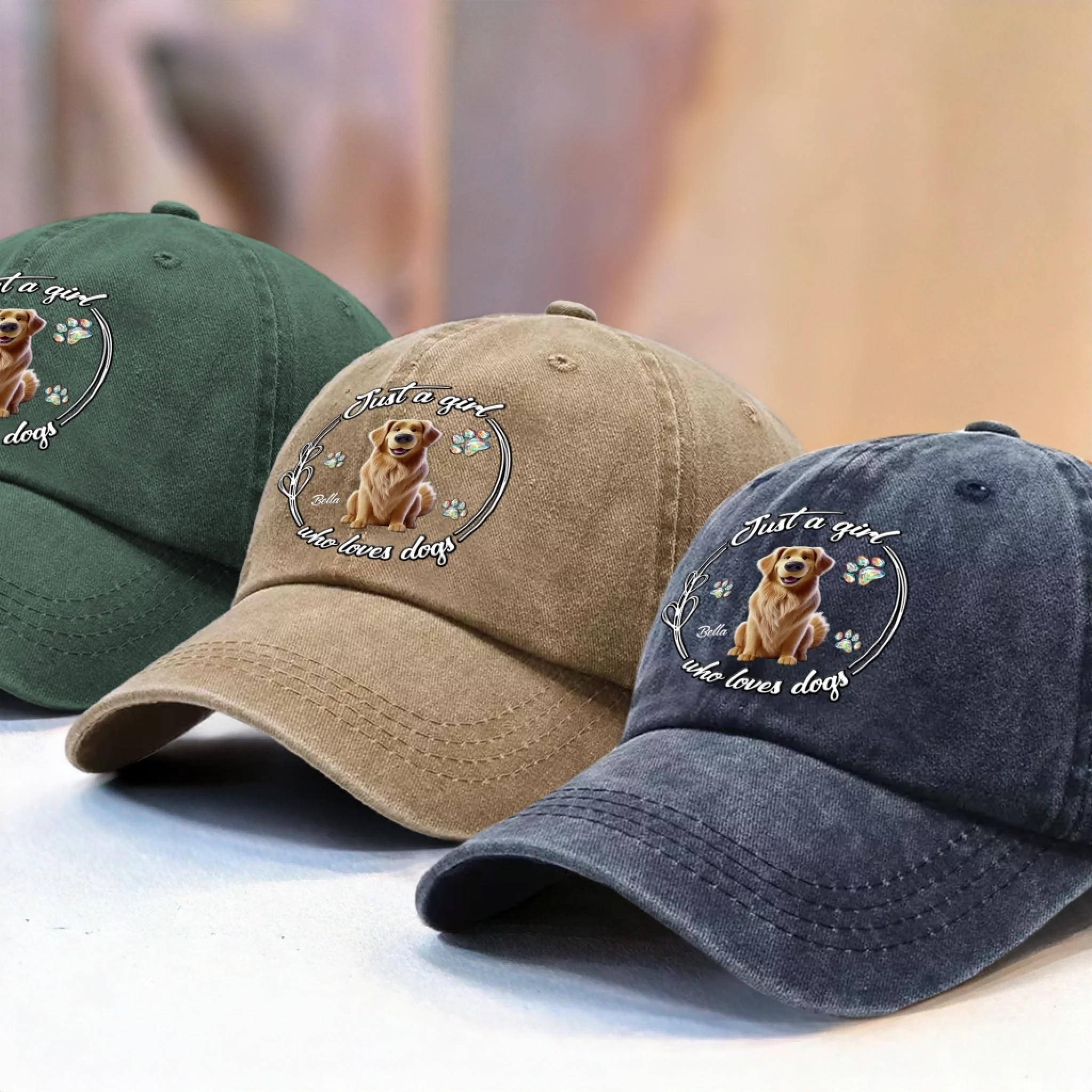 Casquette de baseball vintage en denim délavé personnalisée – Cadeaux d'anniversaire personnalisés pour les amoureux des chiens, les papas et les mamans – Les chiens rendent la vie dorée
