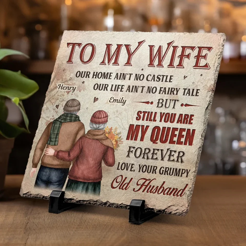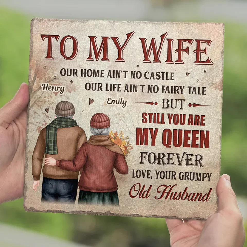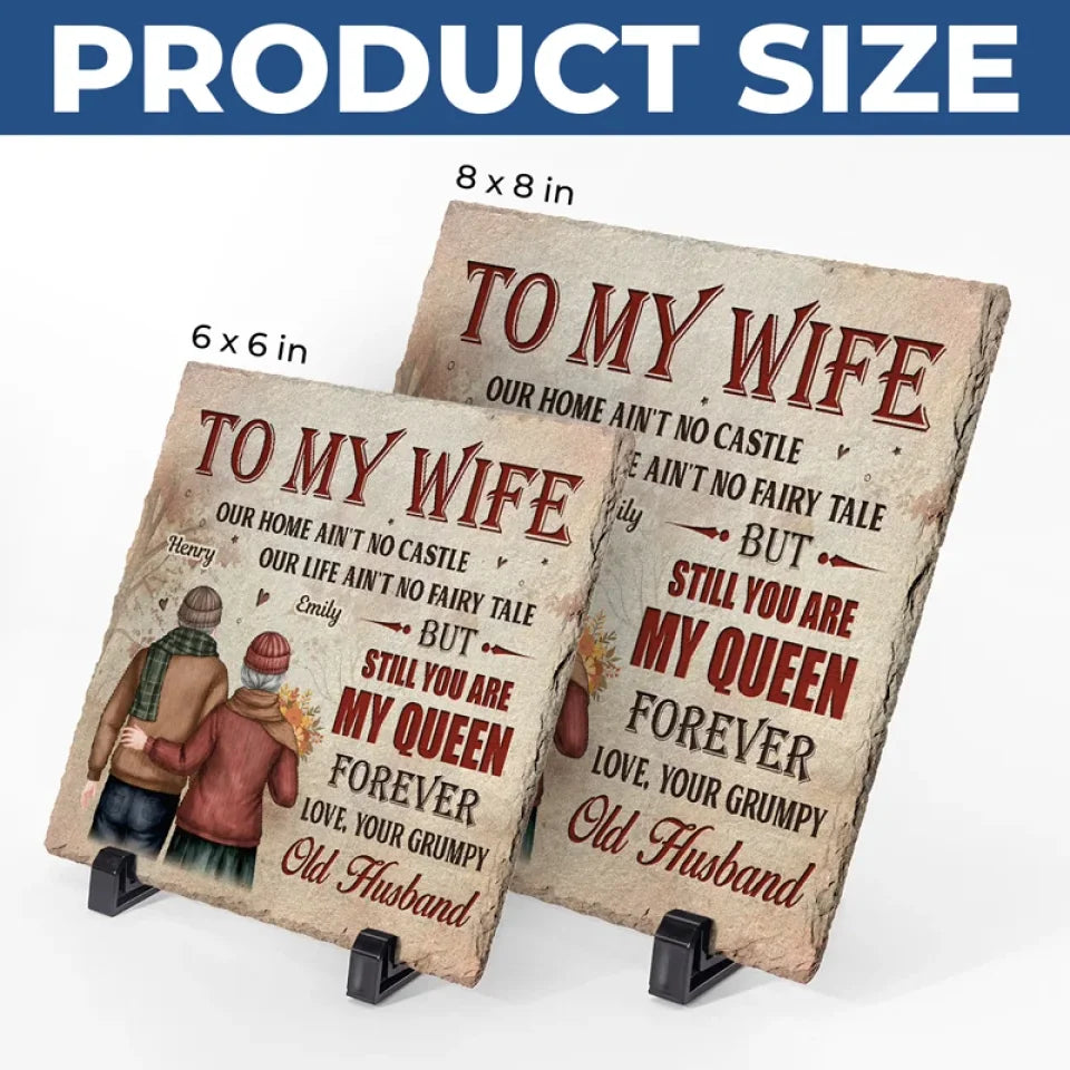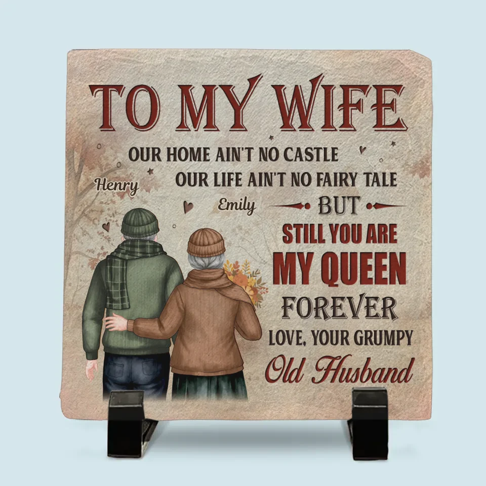 Notre maison est peut-être petite, mais notre amour la rend grandiose - Pierre carrée personnalisée avec support pour couple - Cadeau pour mari et femme, anniversaire