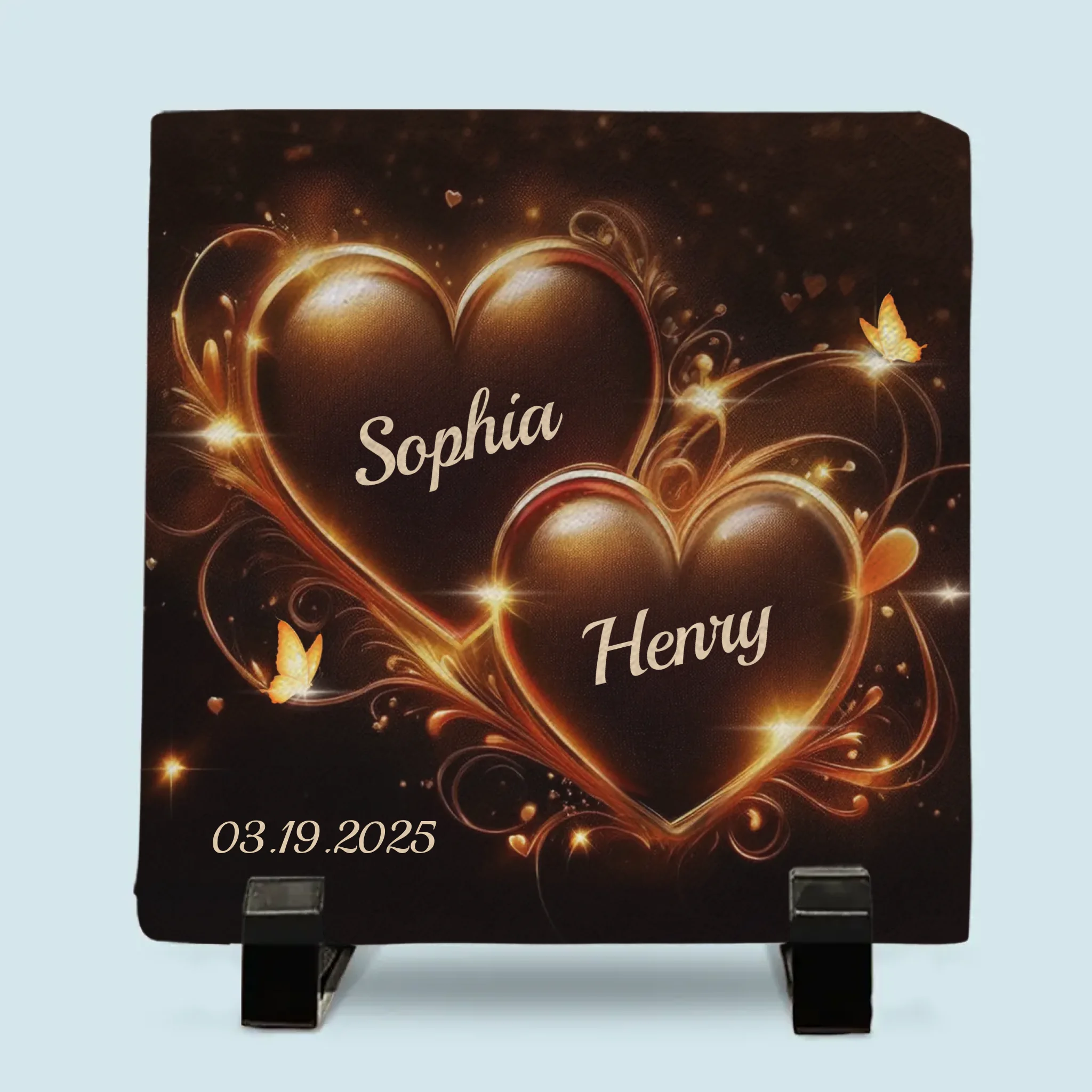Notre amour est intemporel - Pierre carrée personnalisée avec support pour couple - Cadeau pour mari et femme, anniversaire
