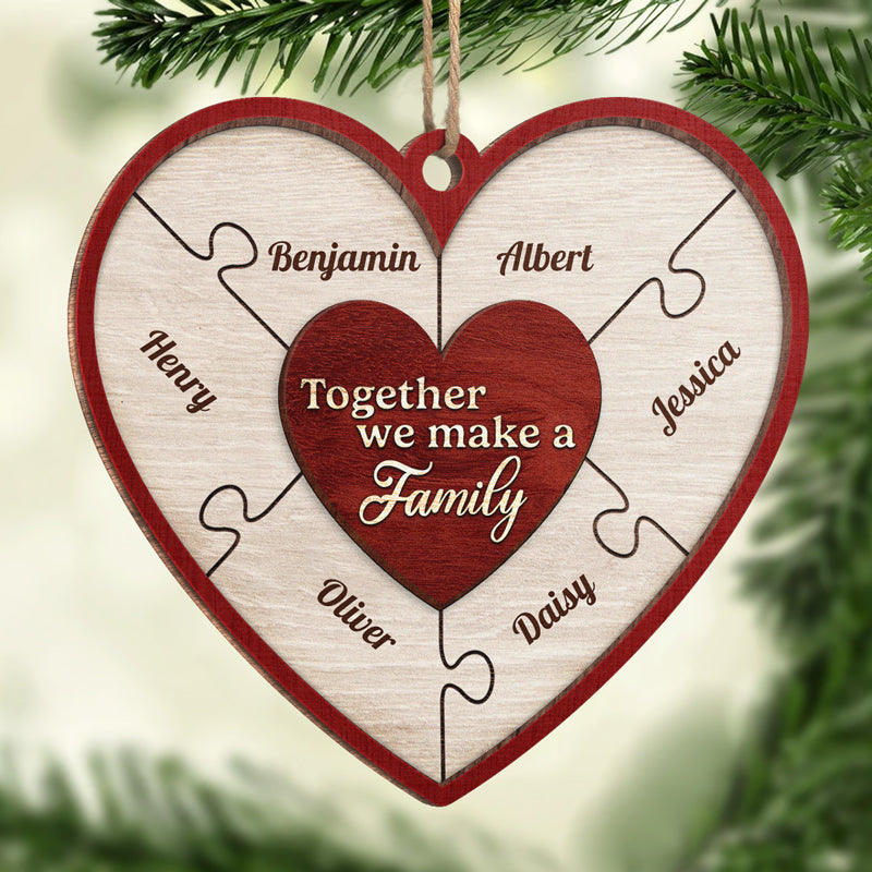 Ensemble, nous formons une famille - Décoration personnalisée pour la famille - En forme de cœur en bois - Cadeau de Noël pour les membres de la famille