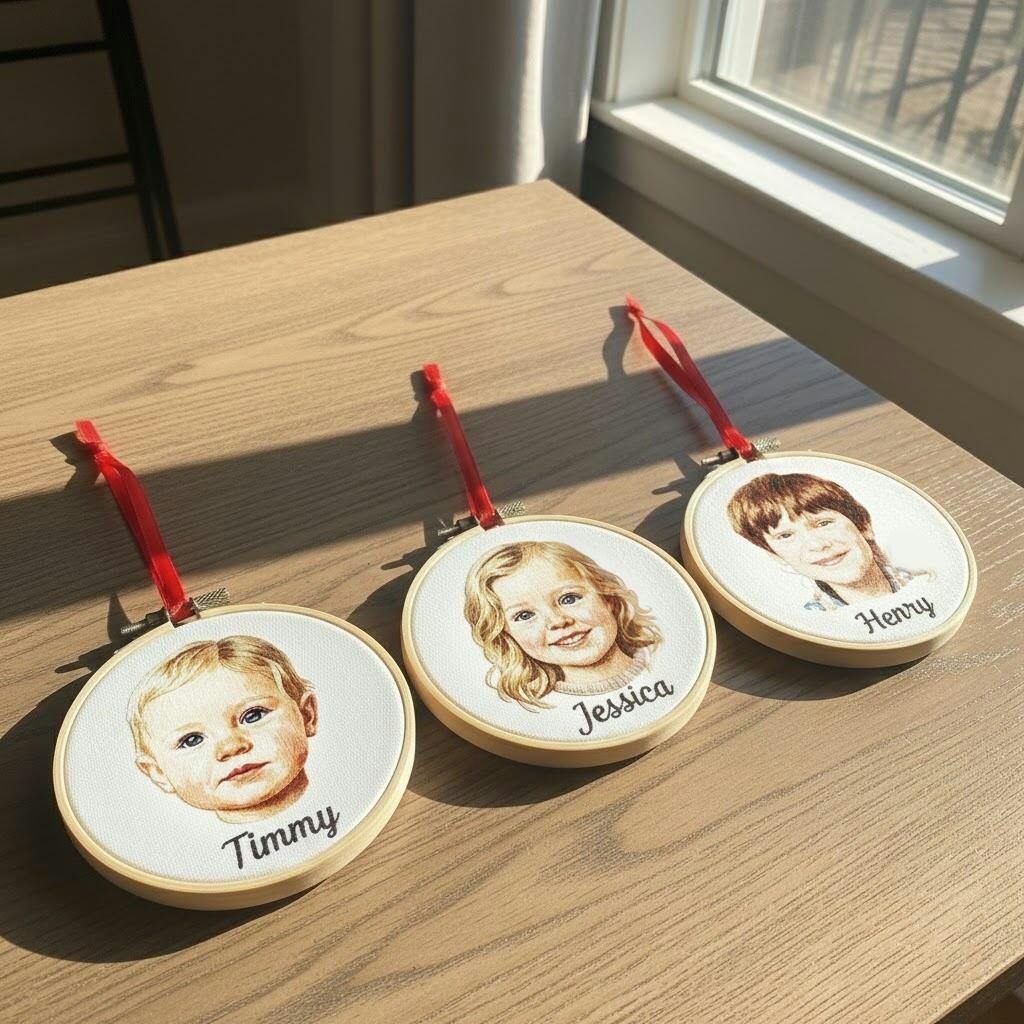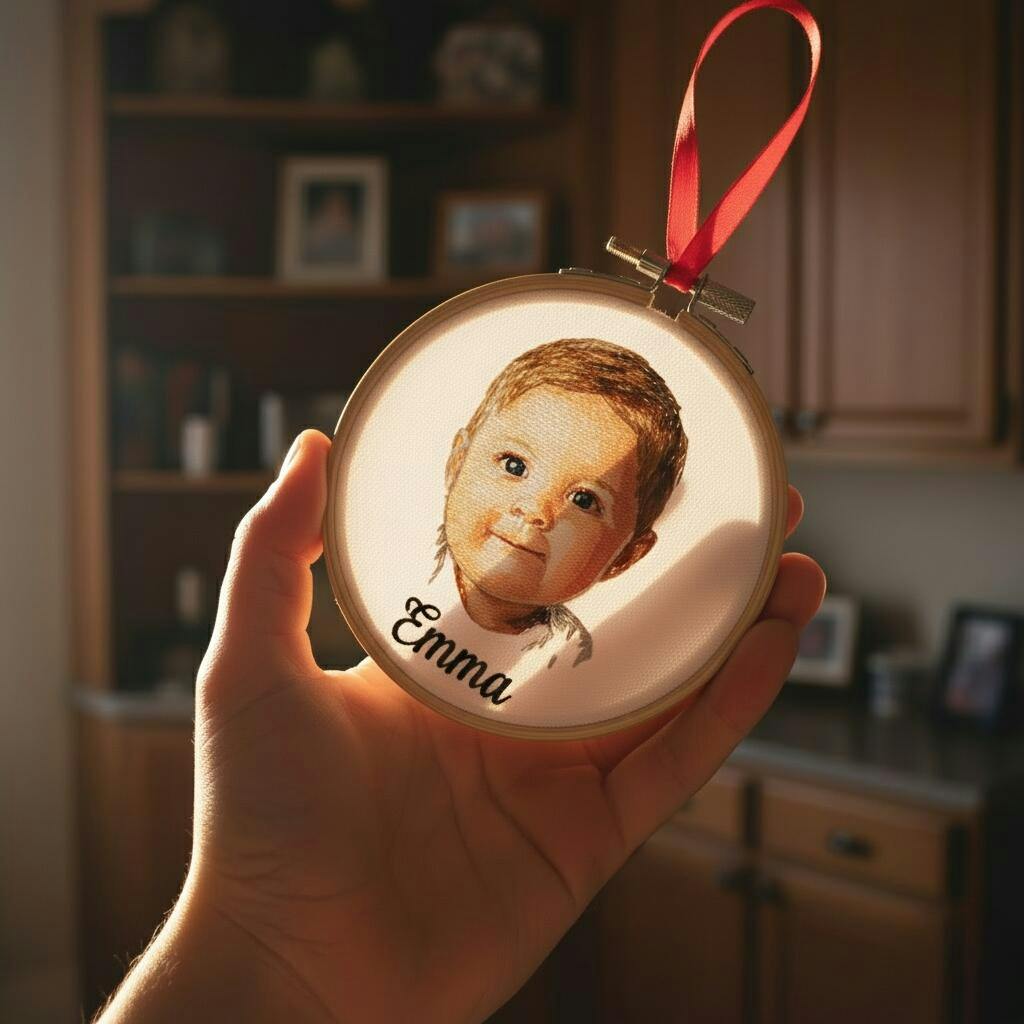 I’m genuinely amazed at how detailed this embroidered ornament is. The stitching captures my daughter’s expression perfectly