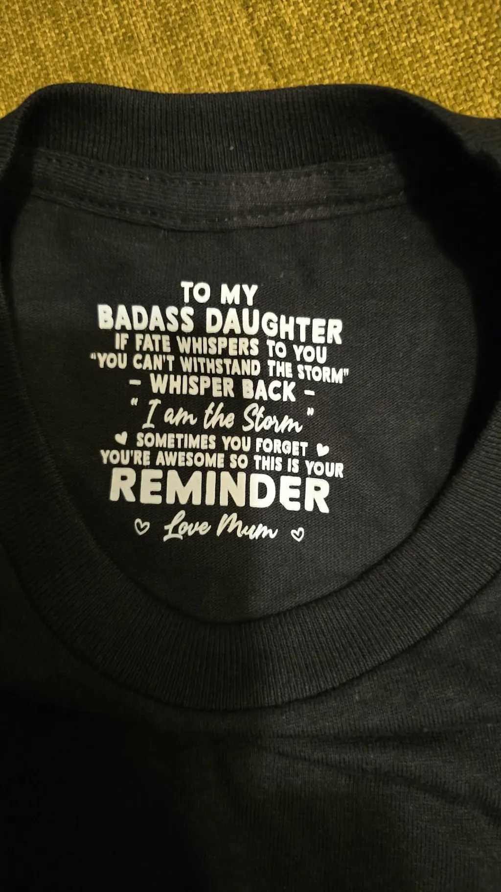 T-shirt for my daughter. Nice quality t-shirt, customized and delivered quickly. Customer service was excellent at dealing with a minor issue. Would definitely buy from them again. Also my daughter loves it!