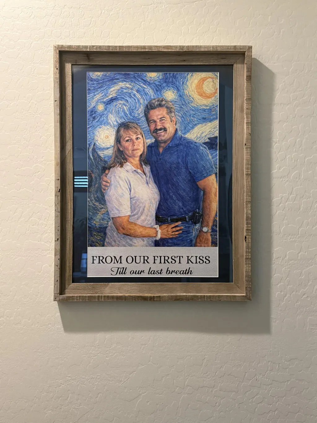 Needed a 42 year Anniversary gift for my Girl. Found a favorite picture from the old days. I was very impressed with the quality of the final product. Had a local company professionally frame it in our Modern Farmhouse and presented it on our Anniversary. Had the desired effect...