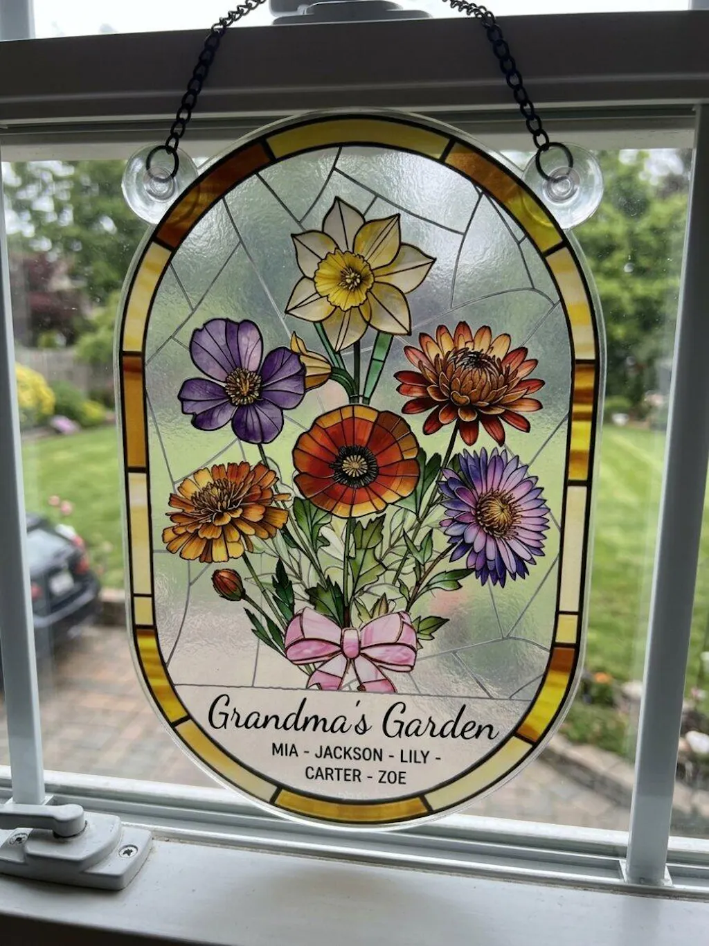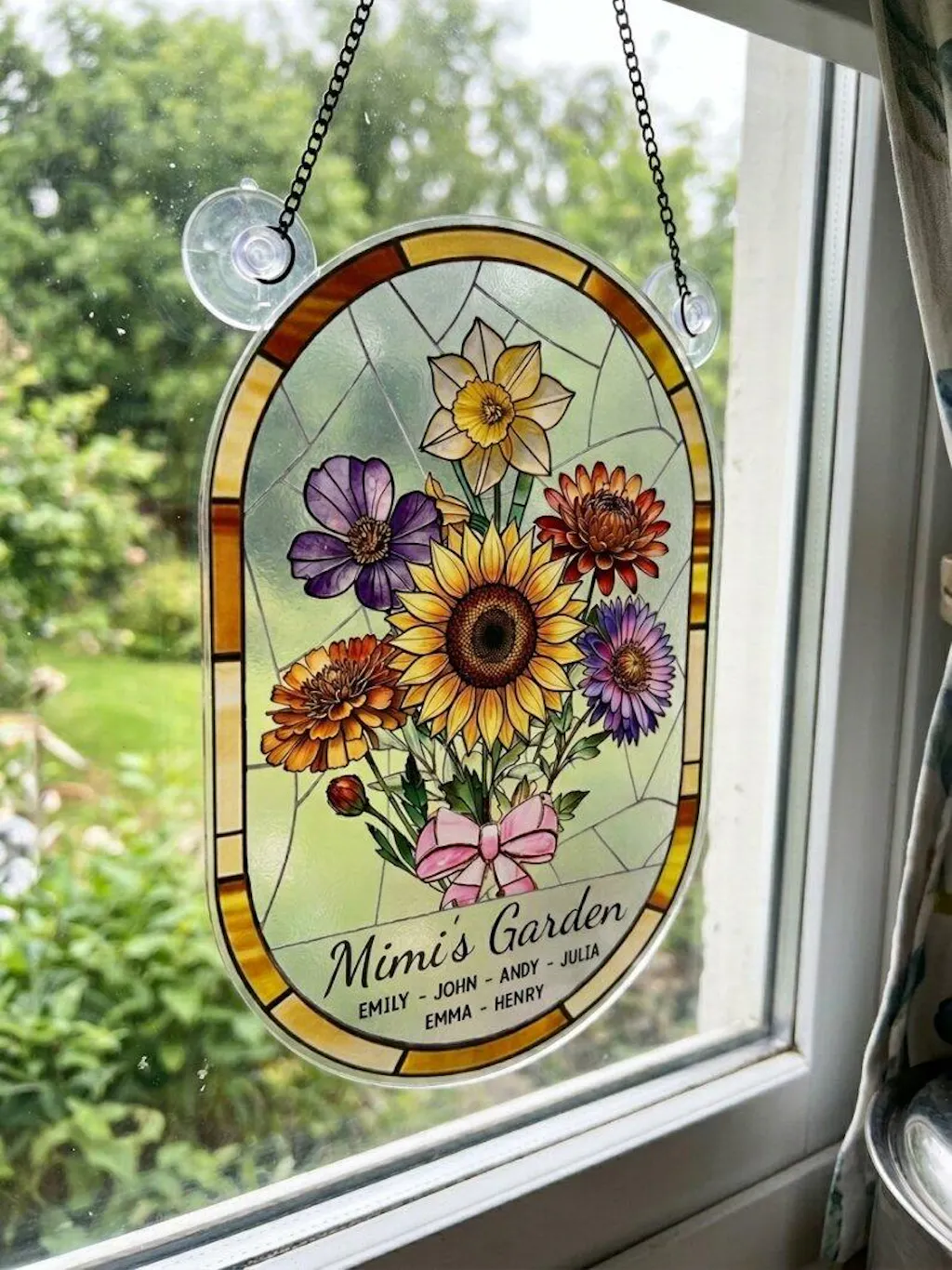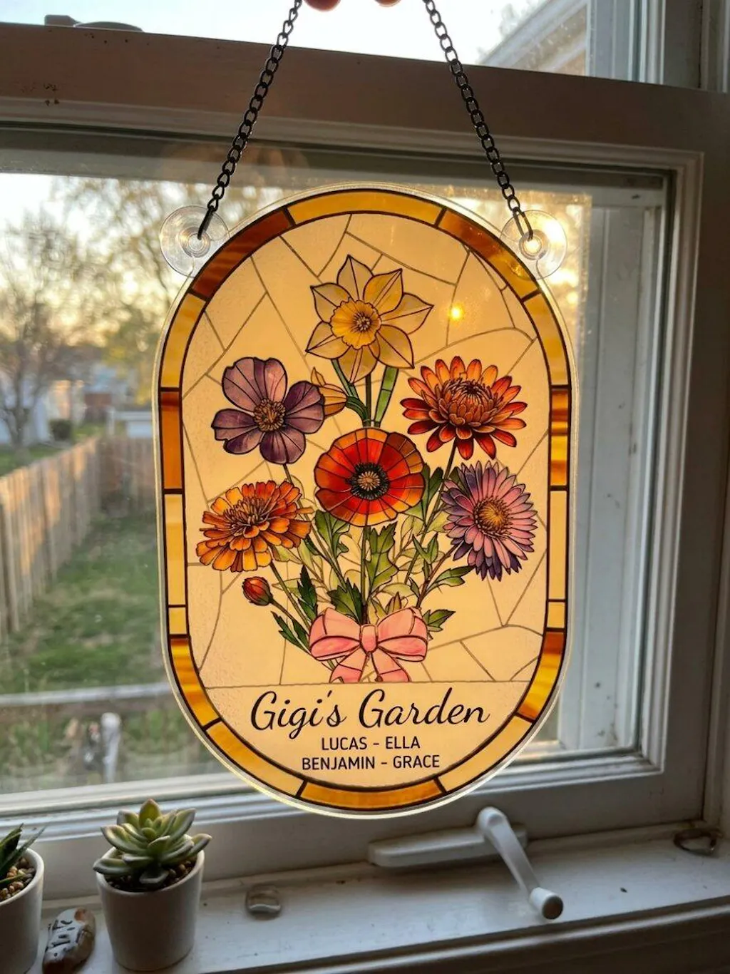 This suncatcher is even more beautiful in person. I got it for my grandma with all of our names, and she literally hung it up the same day. Such a meaningful and unique gift!