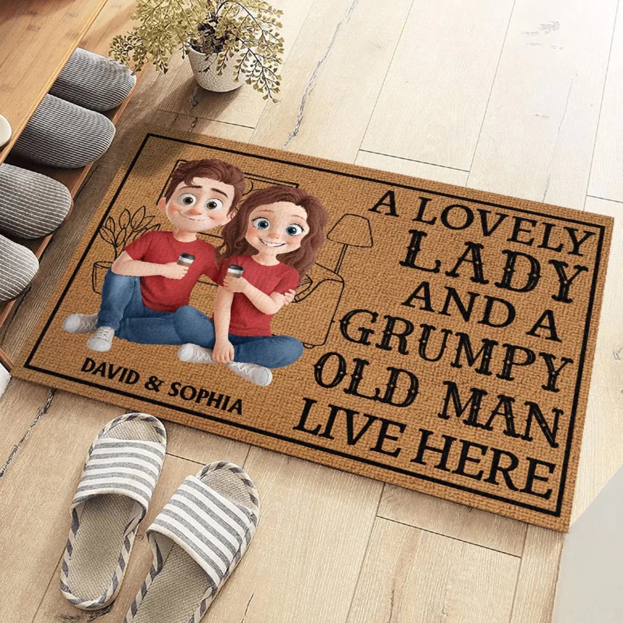 A Lovely Lady And A Grumpy Old Man Live Here - Couple Personalized Custom Home Decor Decorative Mat - House Warming Gift For Husband Wife, Anniversary
