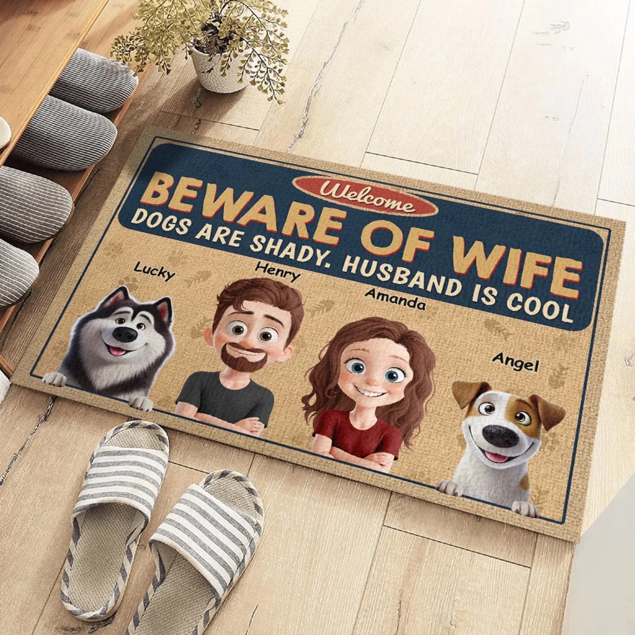 Be Aware Of Wife - Couple Personalized Custom Home Decor Decorative Mat - House Warming Gift For Husband Wife, Anniversary, Pet Owners, Pet Lovers
