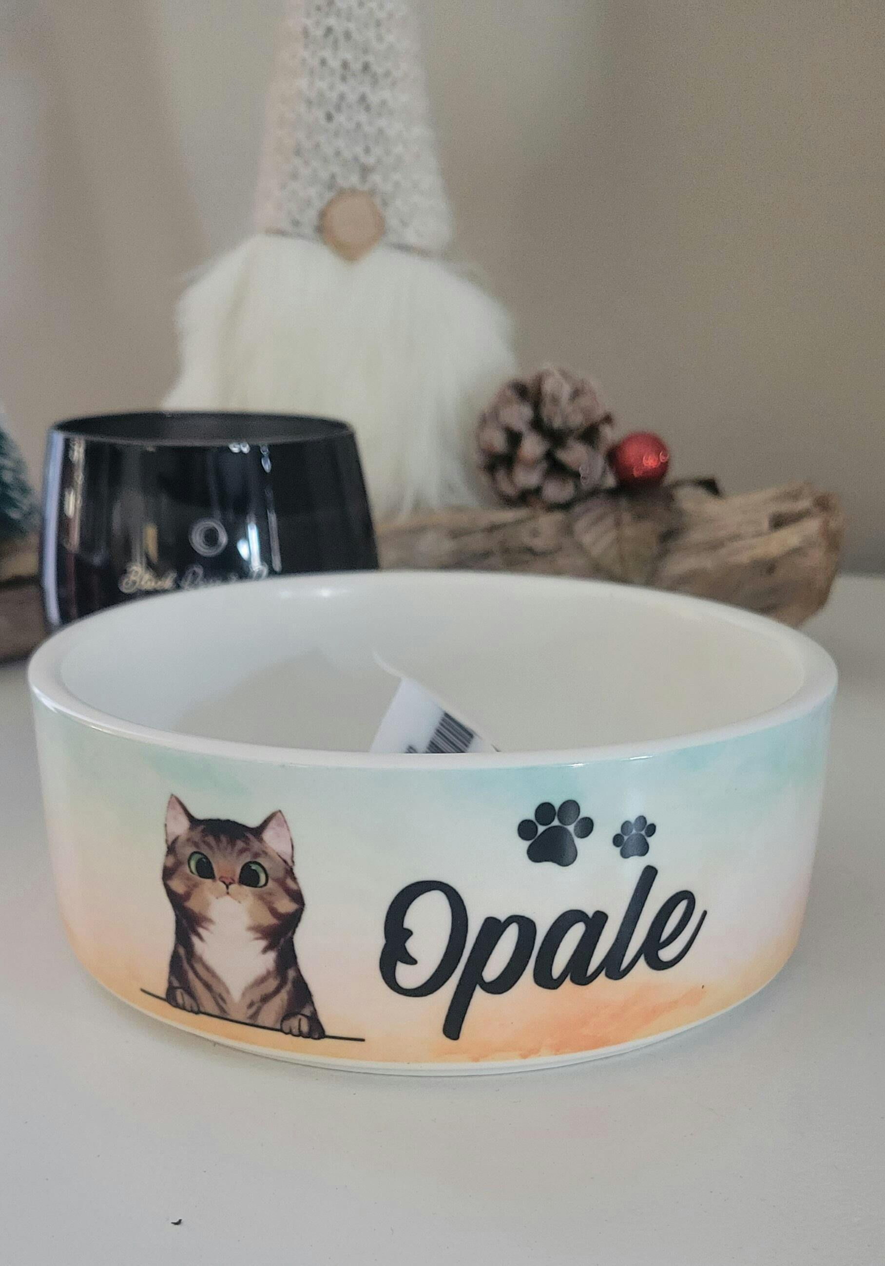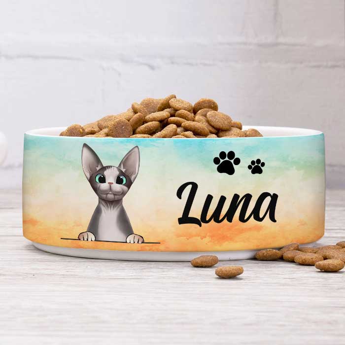 The pet bowl is made of sturdy ceramic and is suitable for both dogs and cats. Your customized artwork or photo goes around the whole bowl. It's easy to clean because the bowl is dishwasher safe. Surprise your beloved pet with a new pet dish to show how much you care about them.