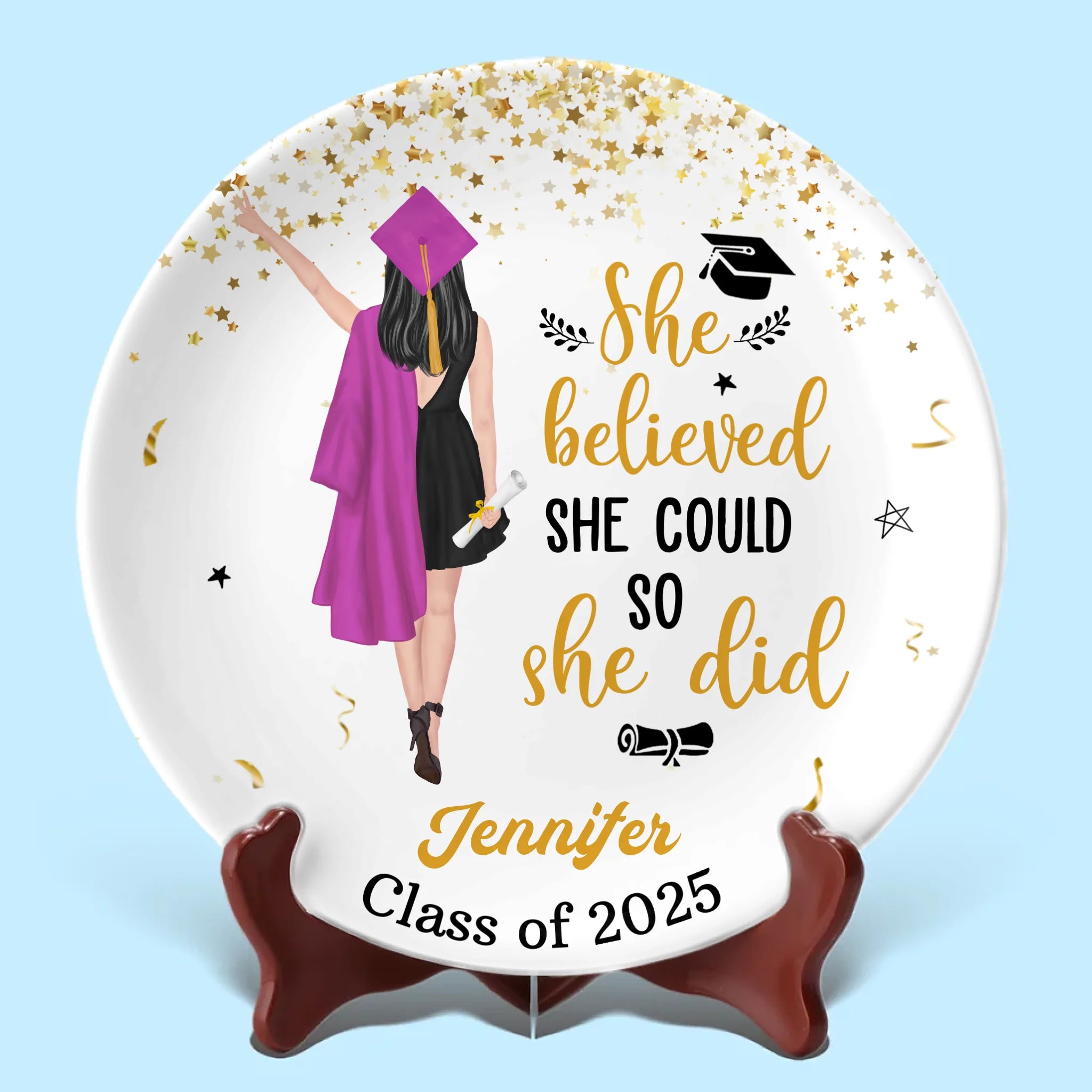 Cheers To New Beginnings - Family Personalized Custom Ceramic Plate - Graduation Gift For Family Members, Siblings, Brothers, Sisters