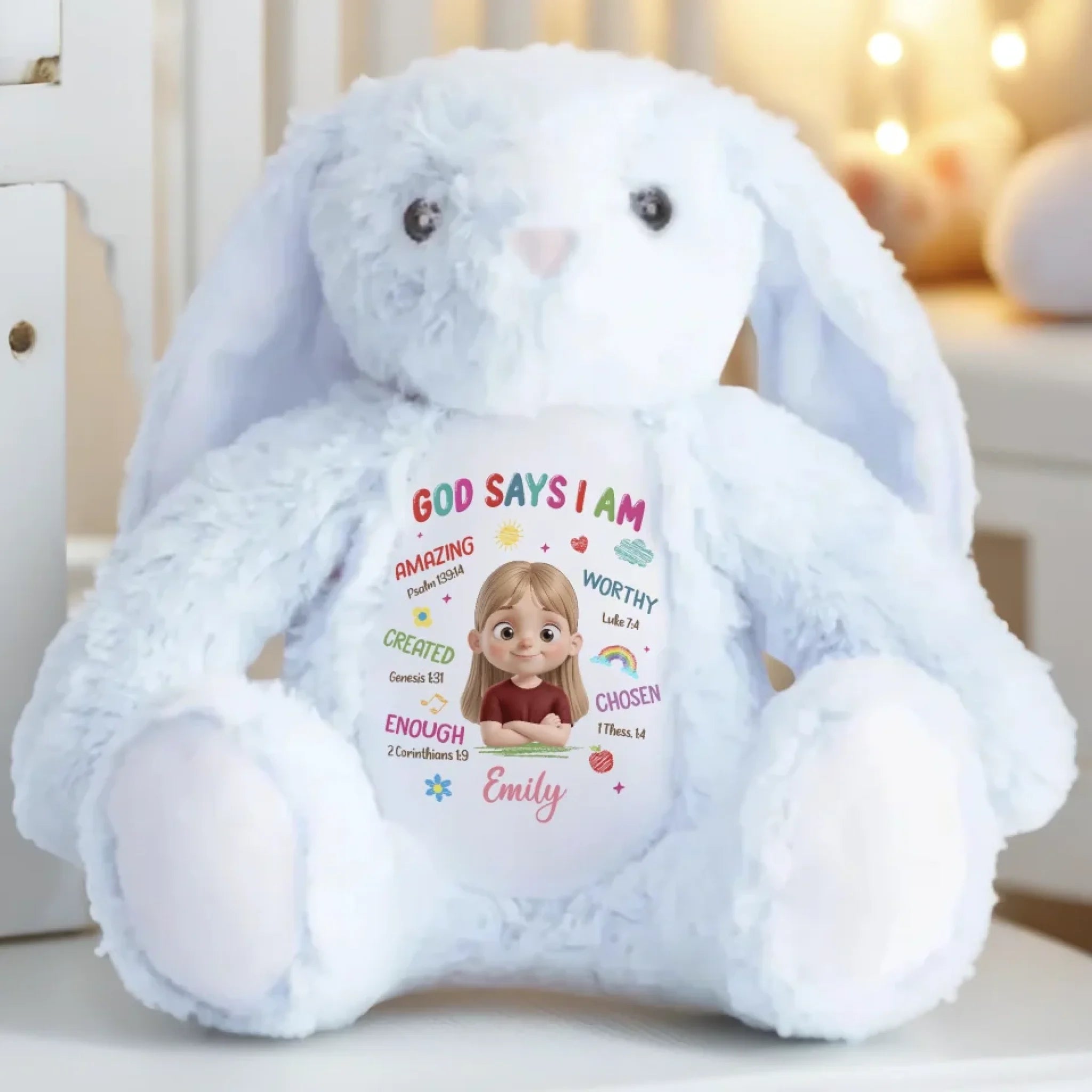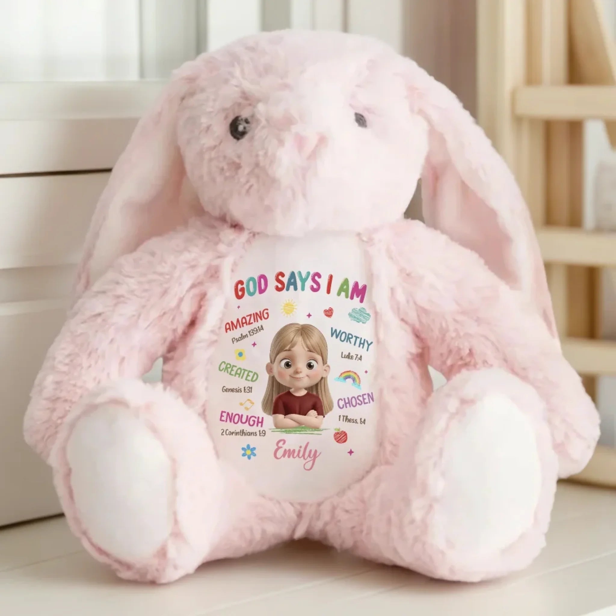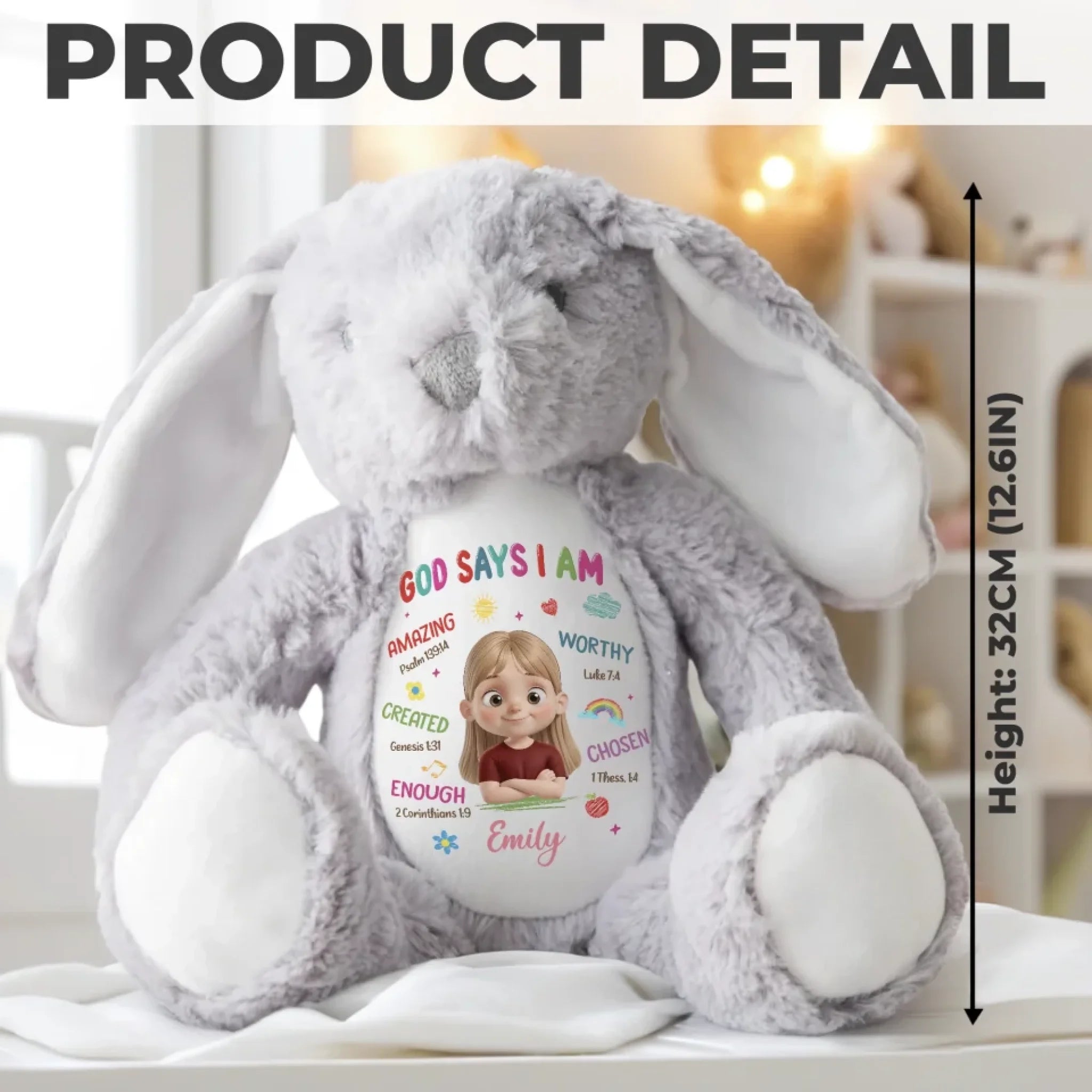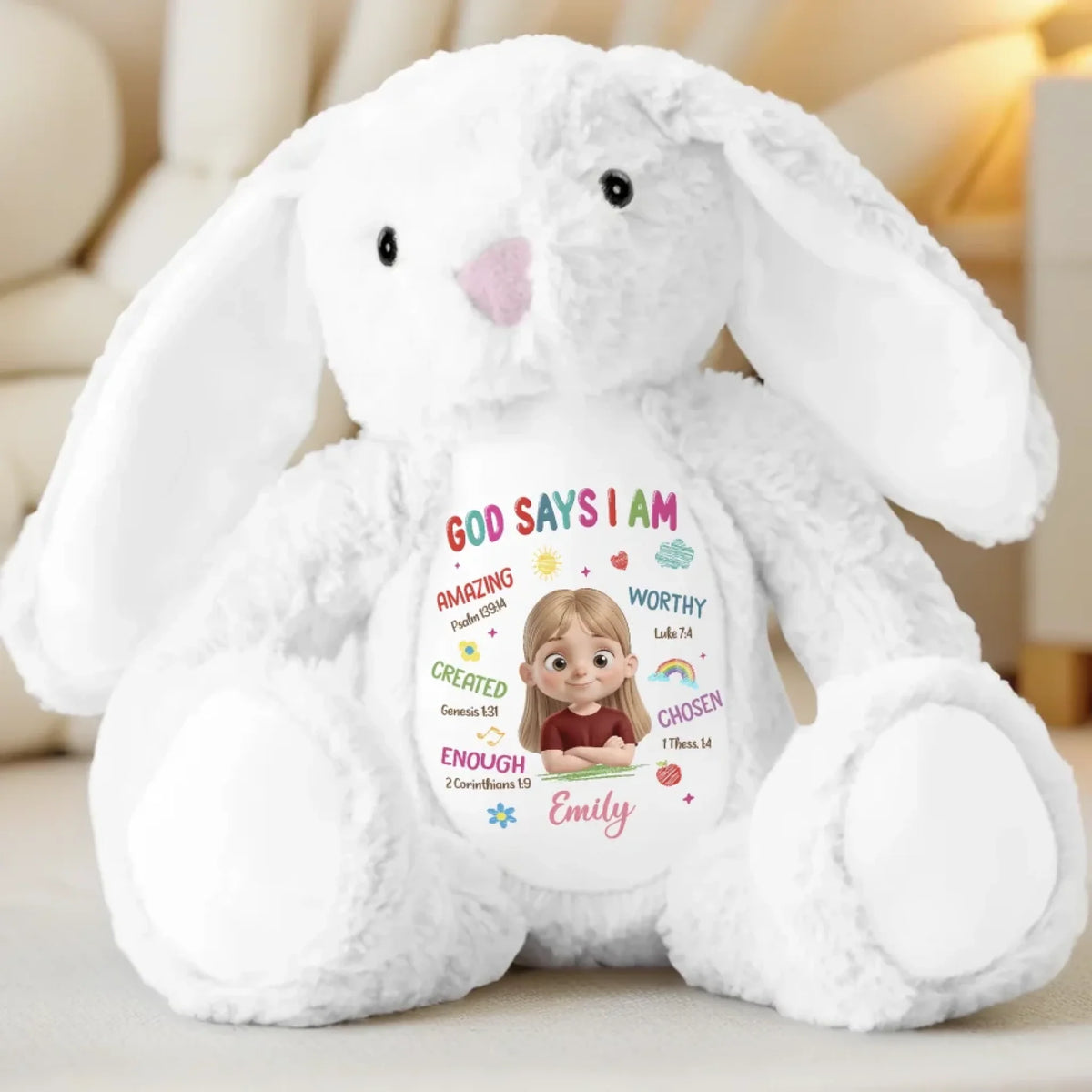 This adorable bunny plush is more than just a cuddly toy, it’s also a charming keepsake and a delightful decorative piece. With its classic rabbit design and irresistibly soft feel, it brings warmth and a sentimental touch. Whether placed anywhere in your home, this bunny adds a timeless charm that makes every moment extra special. This is the perfect gift for anyone, suitable for all occasions: birthdays, holidays, anniversaries, graduations, Valentine's Day, Mother's Day, Father's Day, and just because! Whether for friends, family, or that special someone, this versatile gift is guaranteed to bring joy and make lasting memories.
