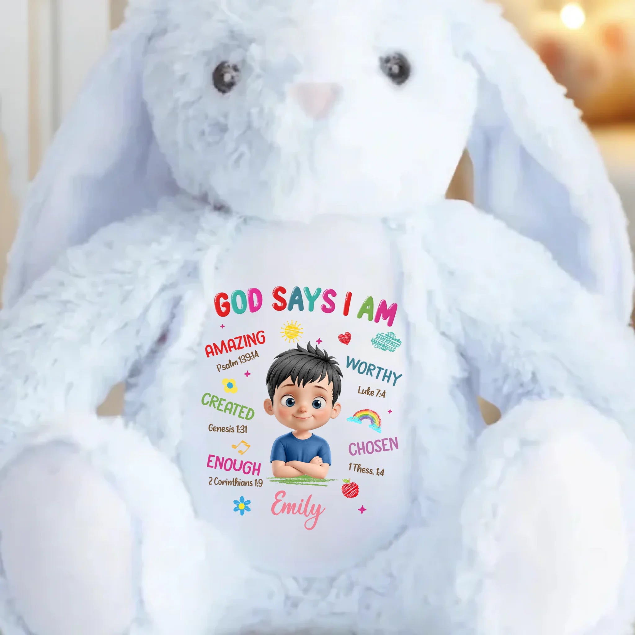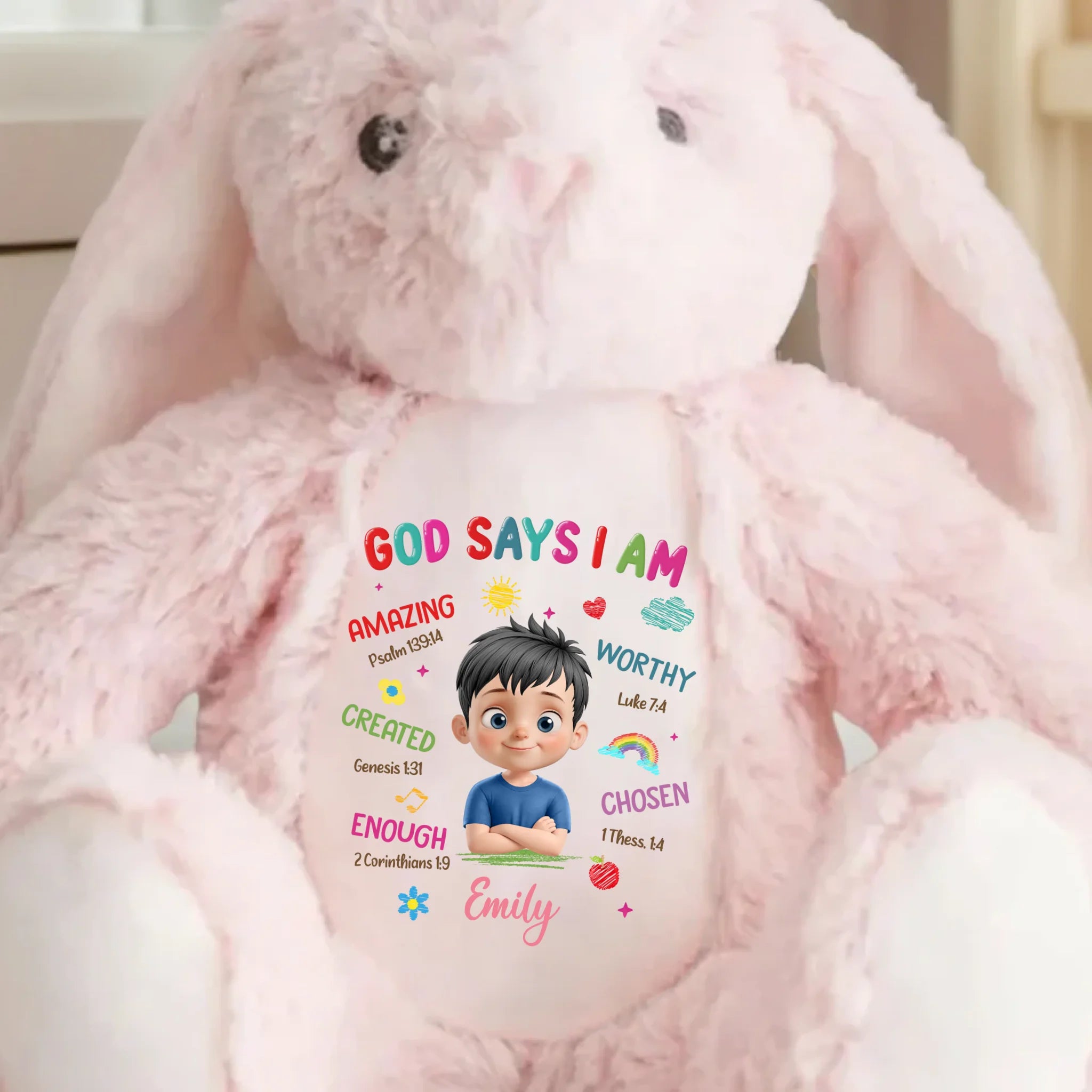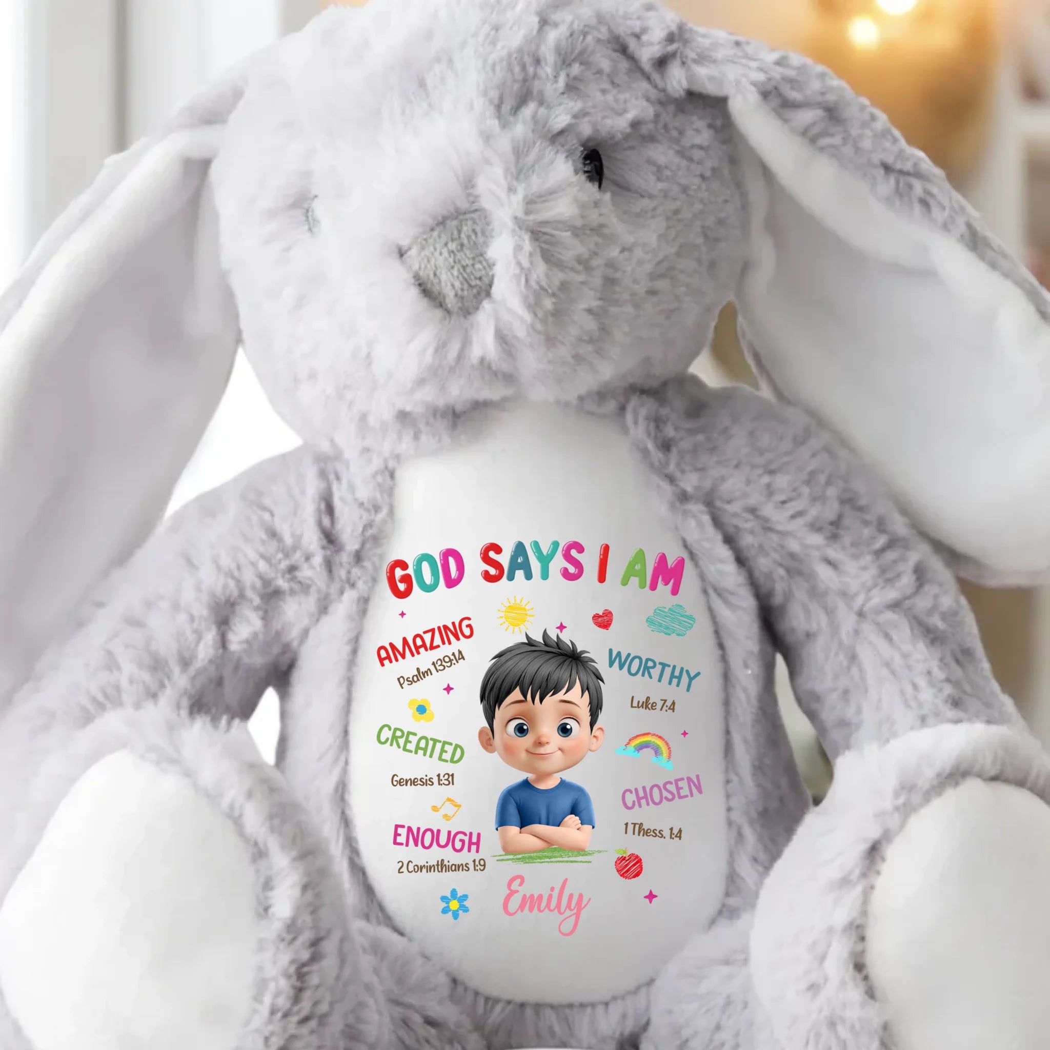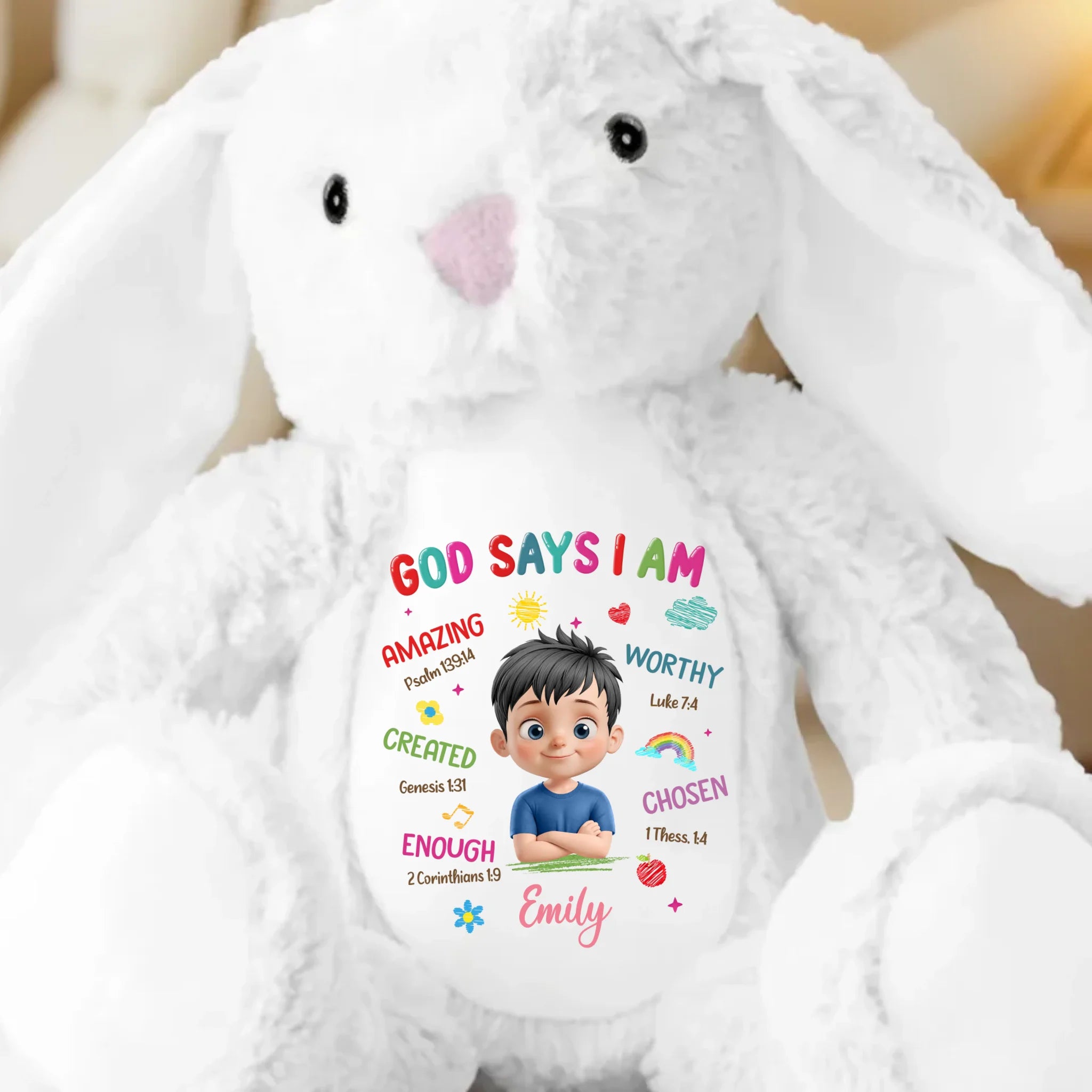 This adorable bunny plush is more than just a cuddly toy, it’s also a charming keepsake and a delightful decorative piece. With its classic rabbit design and irresistibly soft feel, it brings warmth and a sentimental touch. Whether placed anywhere in your home, this bunny adds a timeless charm that makes every moment extra special. This is the perfect gift for anyone, suitable for all occasions: birthdays, holidays, anniversaries, graduations, Valentine's Day, Mother's Day, Father's Day, and just because! Whether for friends, family, or that special someone, this versatile gift is guaranteed to bring joy and make lasting memories.