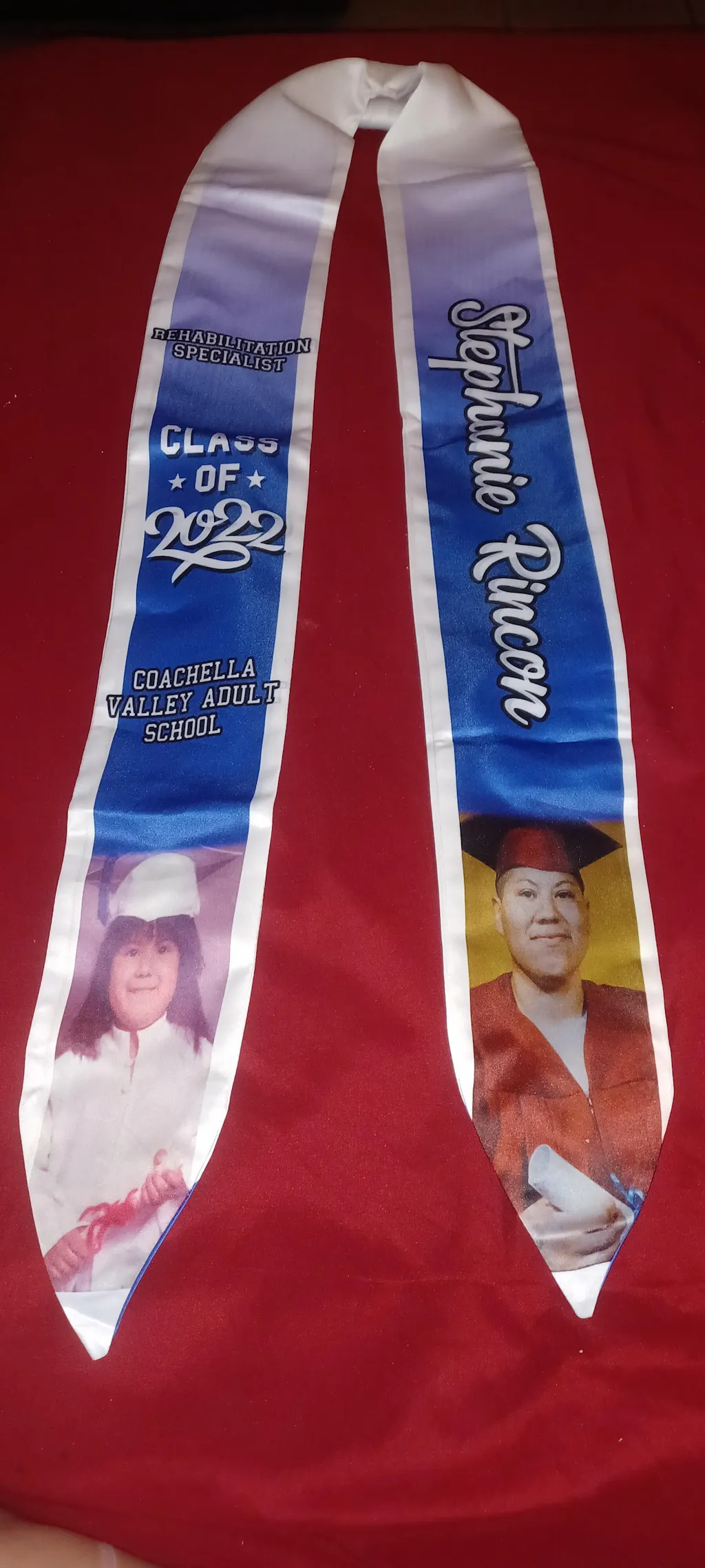 This personalized graduation stole is a great way to show your school pride at graduation. Each stole is made to match the colors and logo of your school. Wear it at your senior pictures, graduation party, or graduation ceremony. This stole would make a wonderful graduation present.