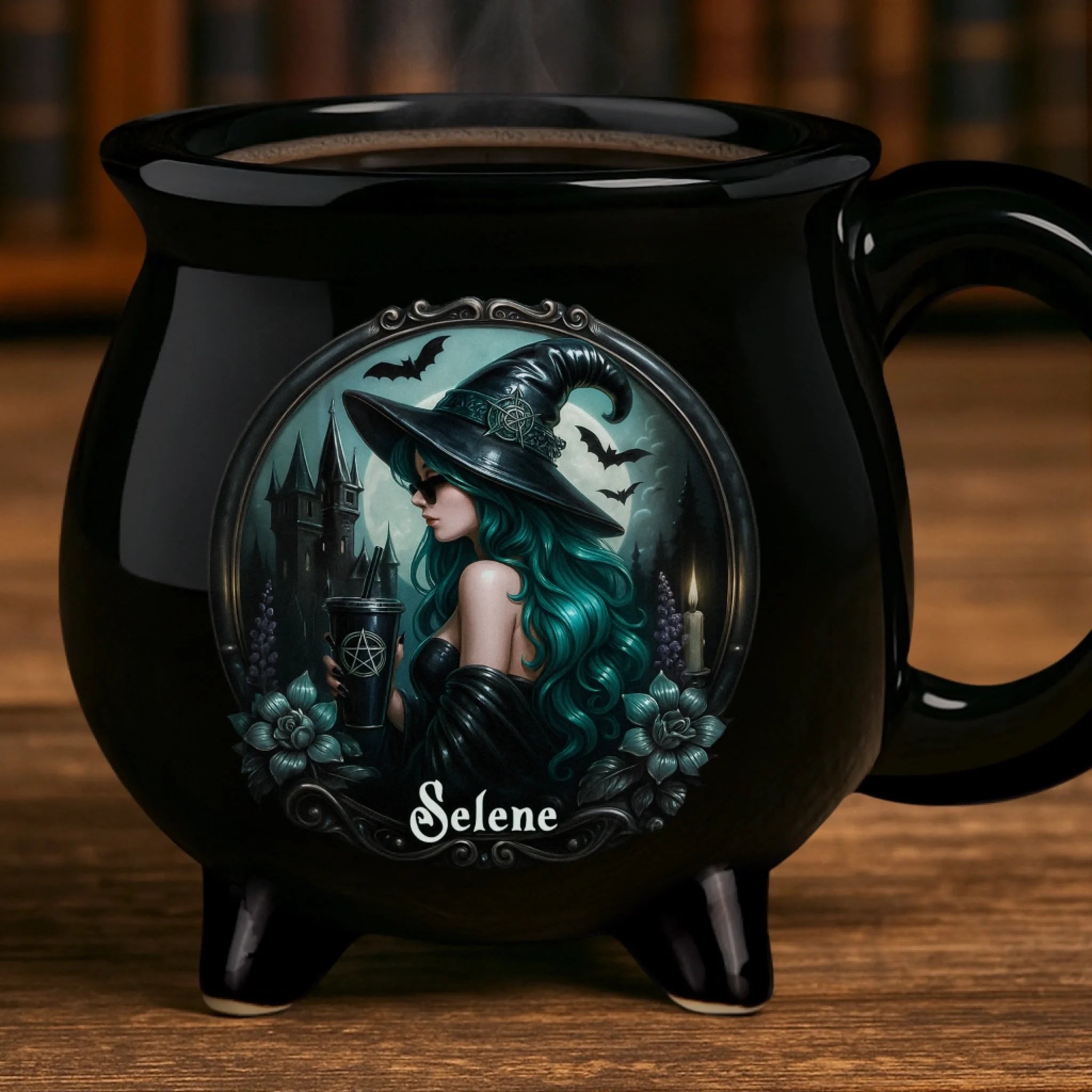 Custom 12oz Ceramic Cauldron Coffee Mug - Personalized Halloween Witchy Gifts For Besties, Sisters, BFF, Family, Yourself - Mystic Witch Vibes