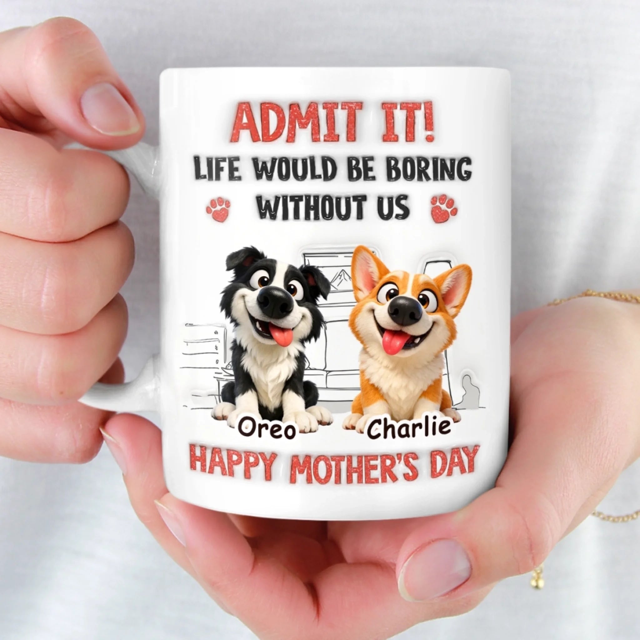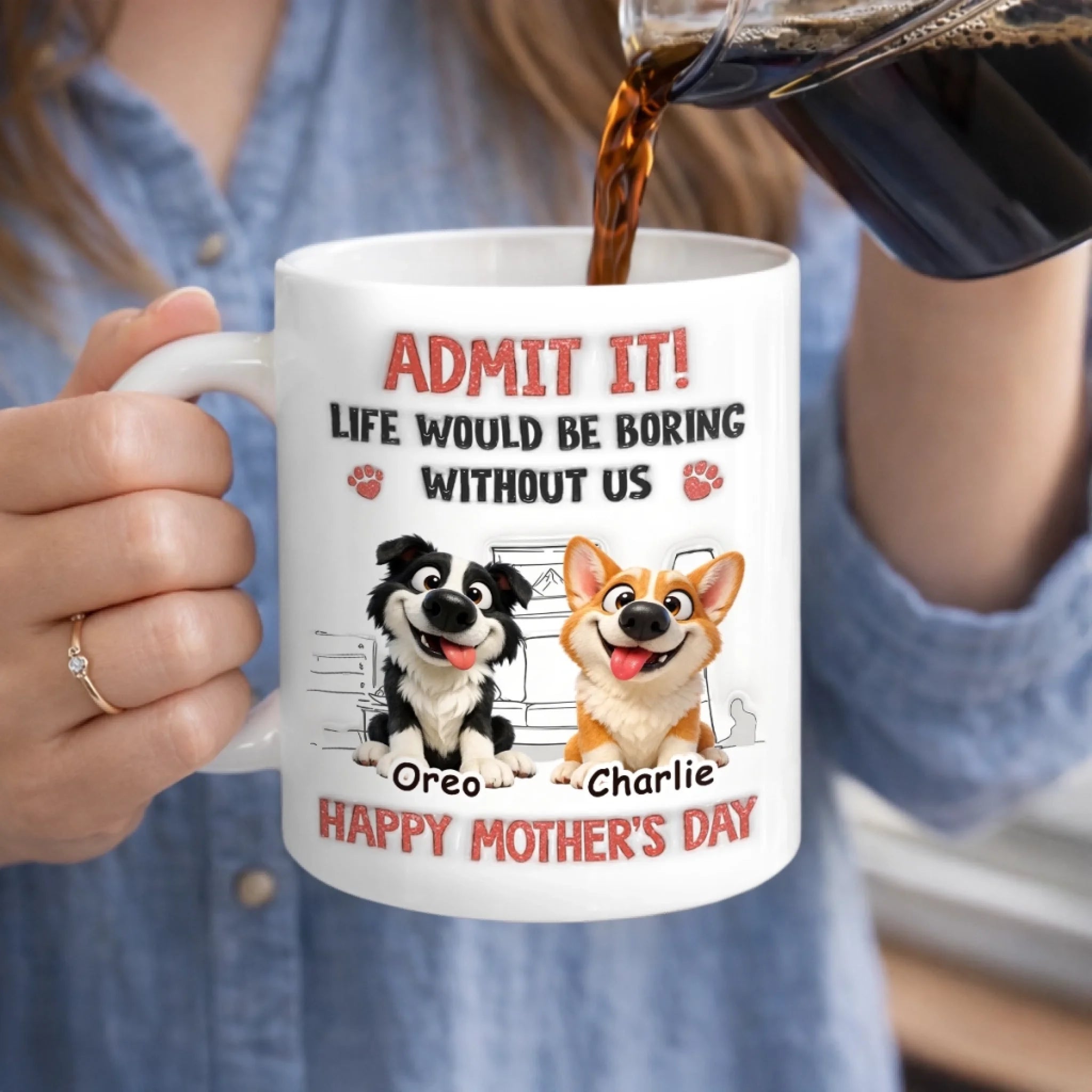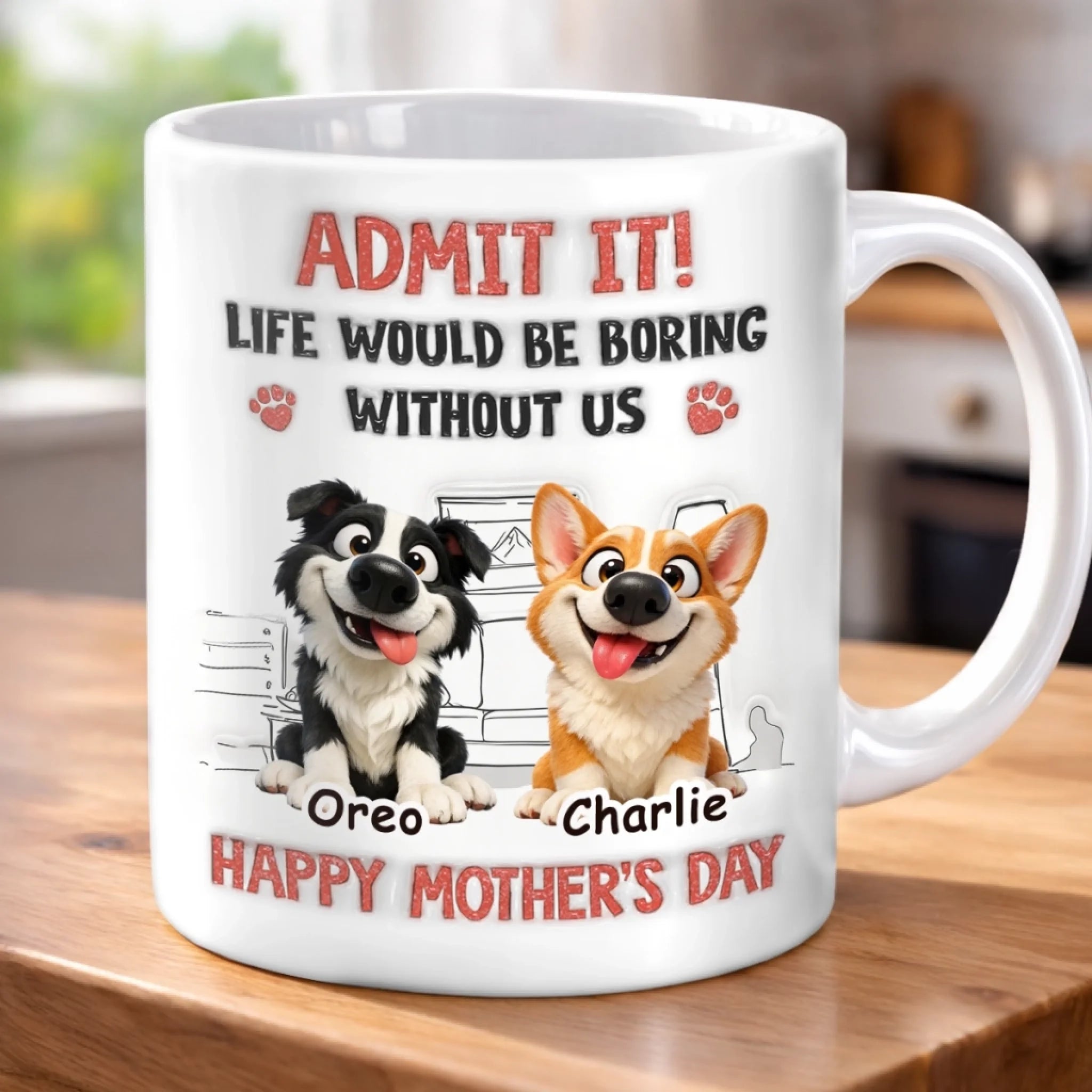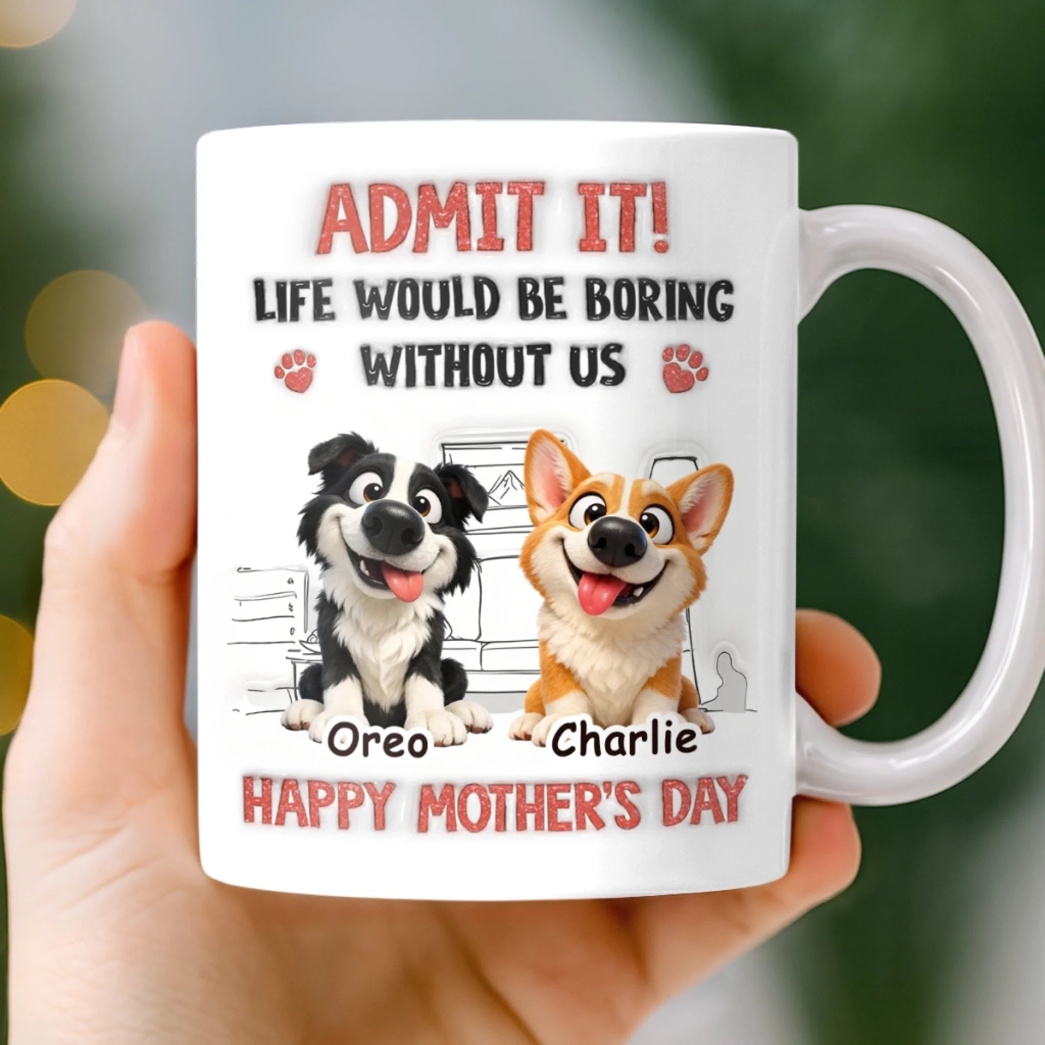 Custom 3D Inflated Effect Printed Mug - Personalized Mother's Day Birthday Gifts For Dog Lovers, Dog Dad And Mom - Mom’s Daily Dose Of Chaos