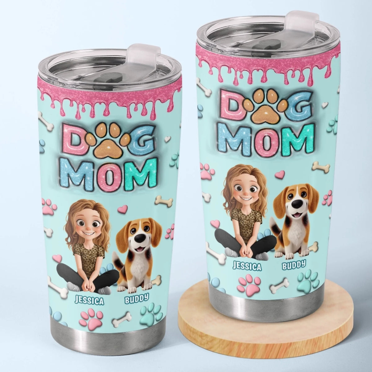 This is a tumbler with a 3D inflated effect print, used to give the item a premium and deep look.
