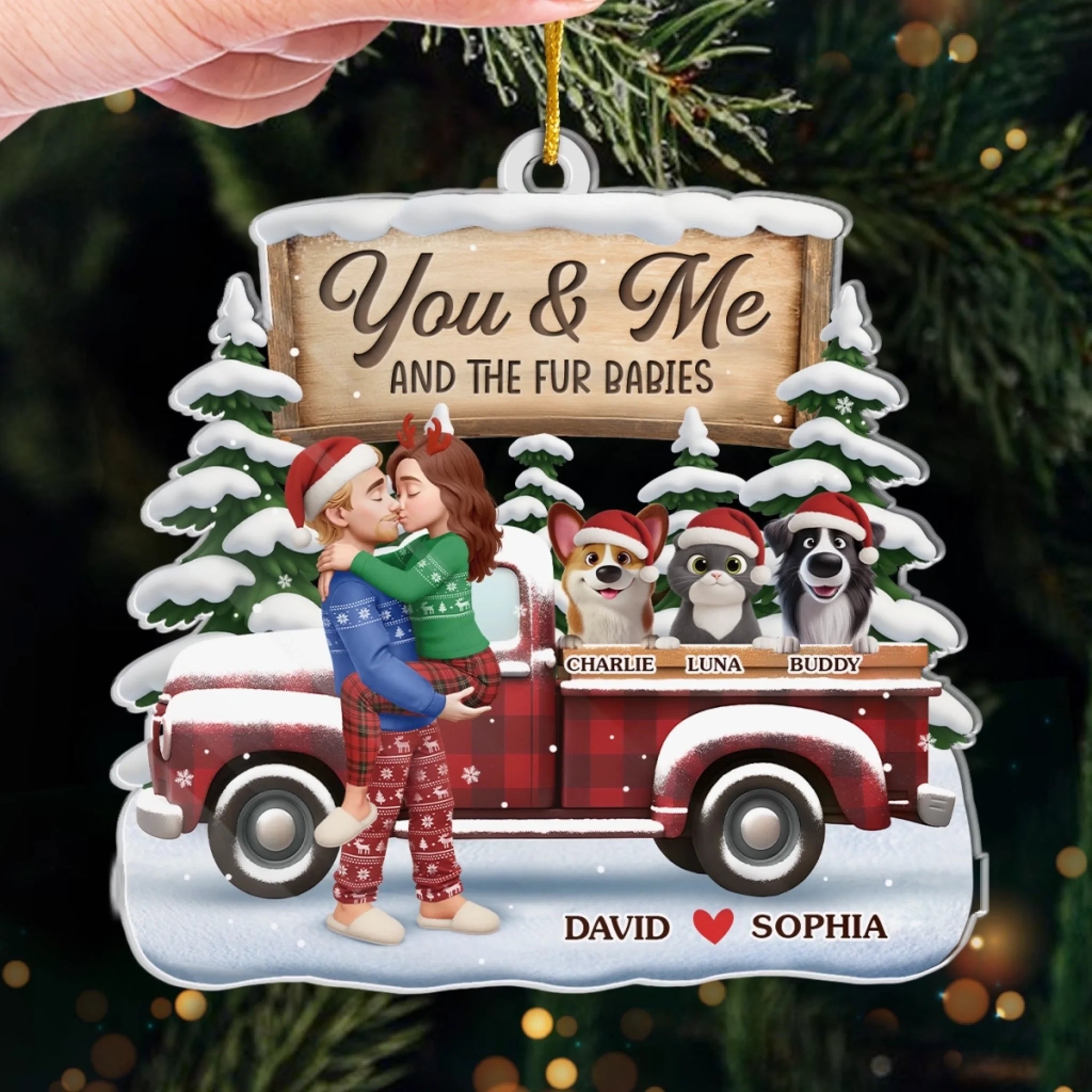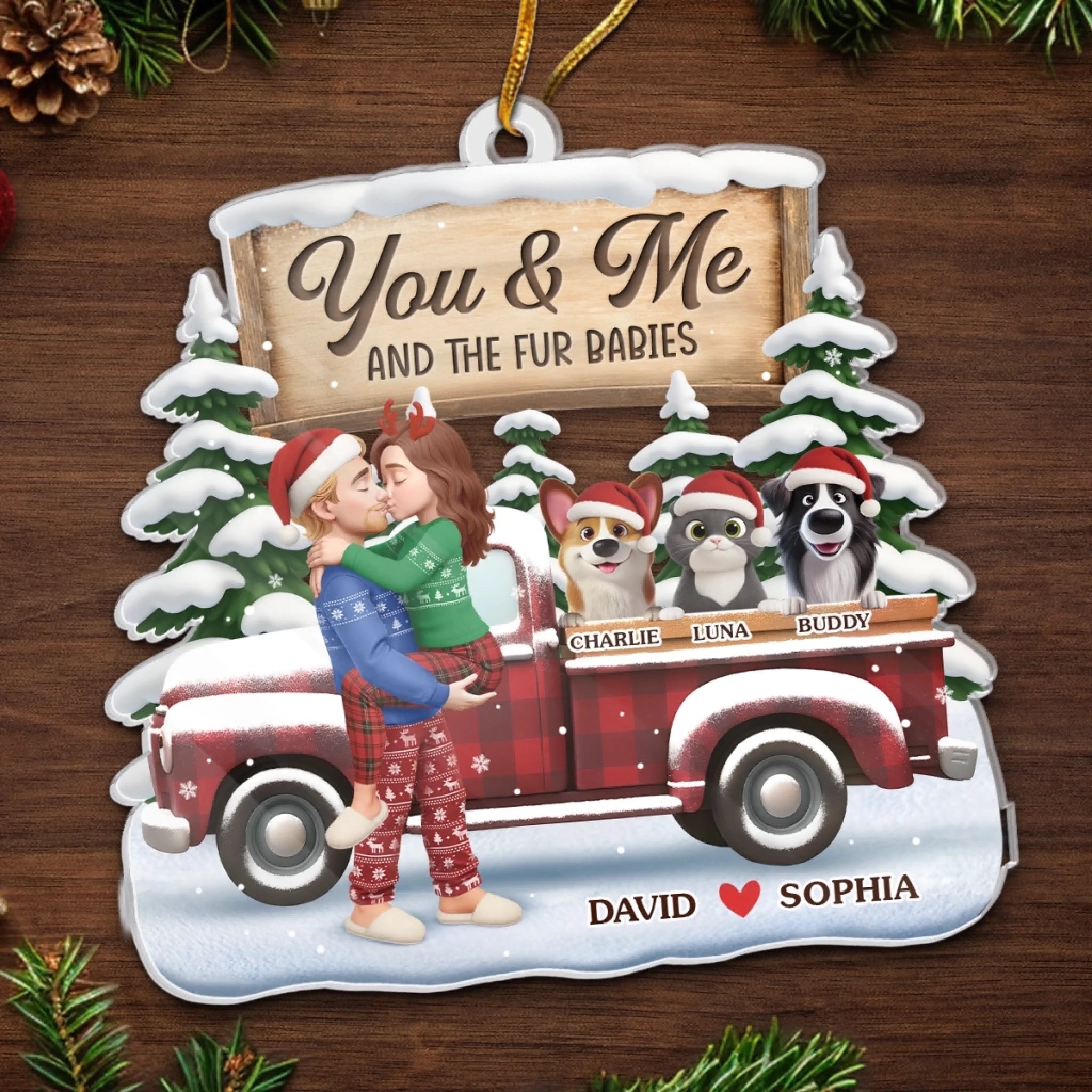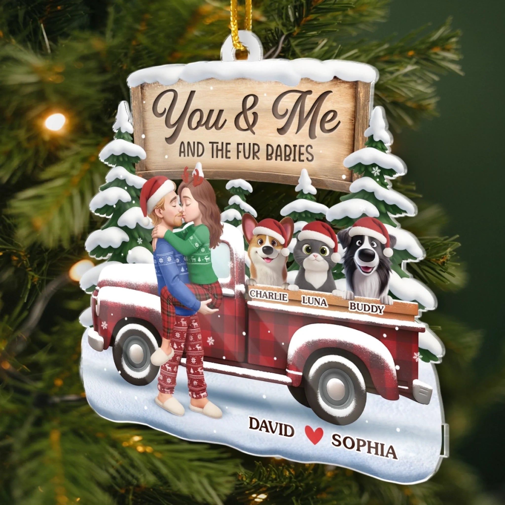 Custom Acrylic Ornament - Personalized Anniversary Christmas Wedding Gifts For Husband And Wife, Dog Cat Lovers - Just Two Humans And A Fur Army