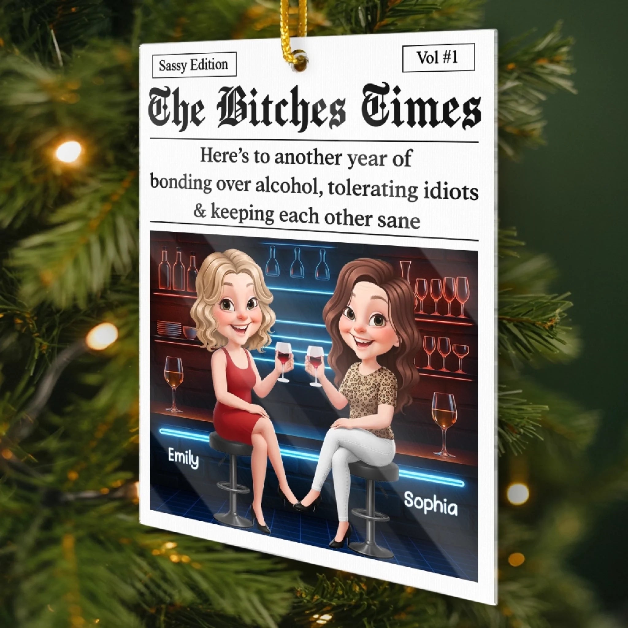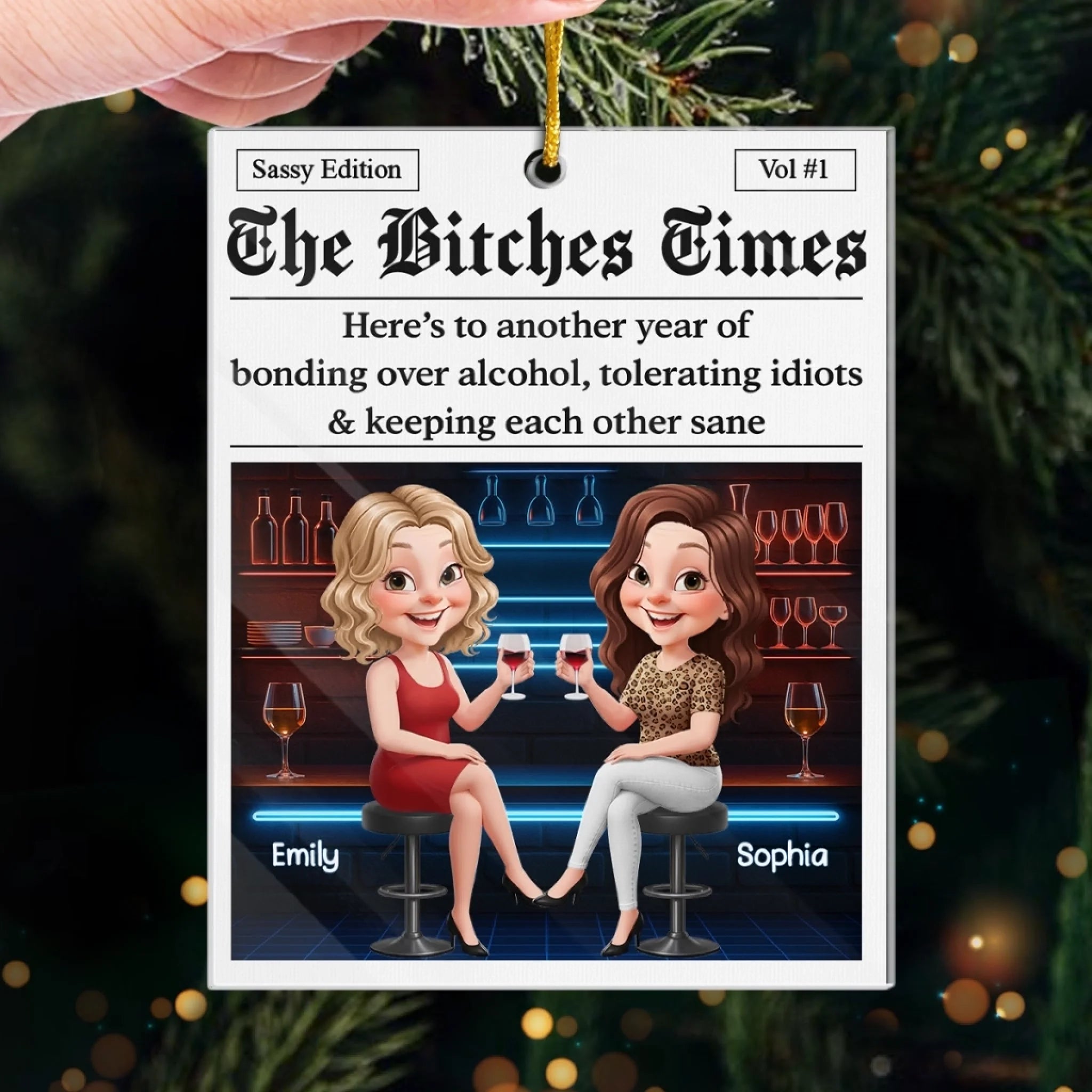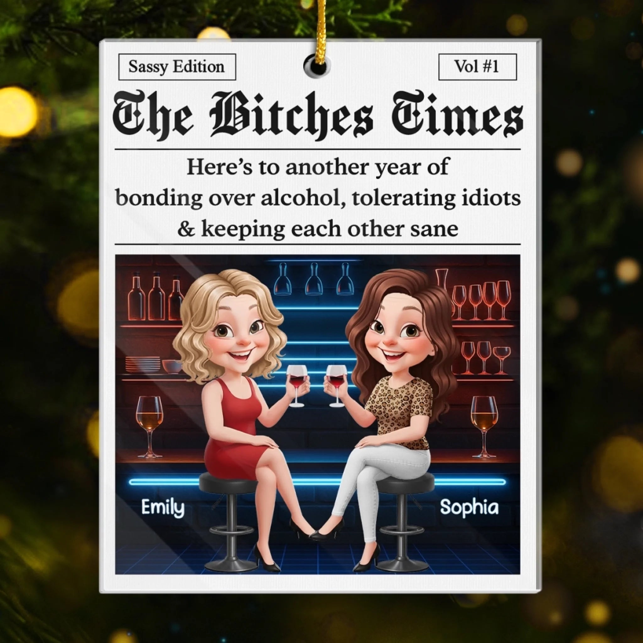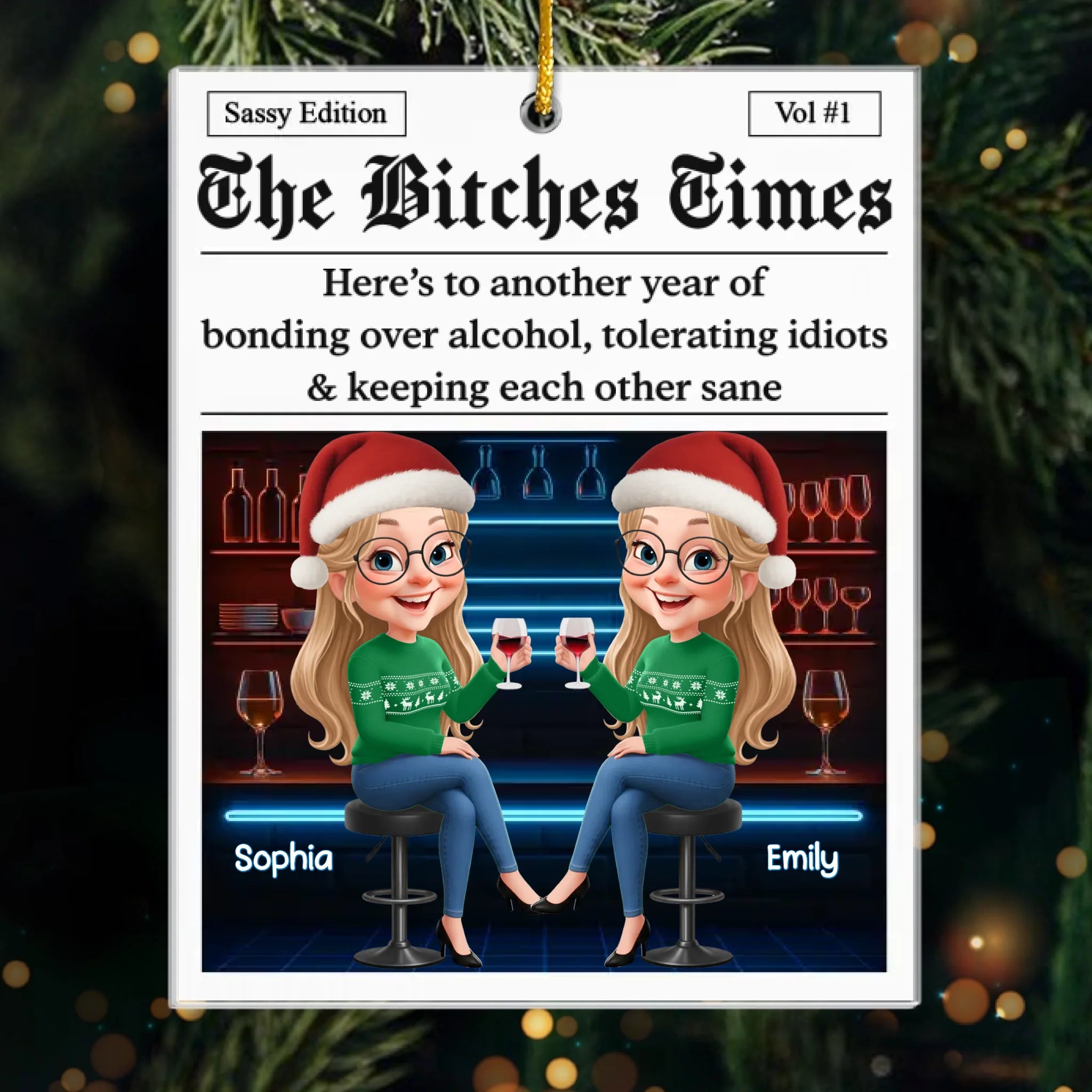 Custom Acrylic Ornament - Personalized Best Friend Christmas Birthday Gifts For Women, Besties, Sisters, BFF - Festive Hearts Forever Friends