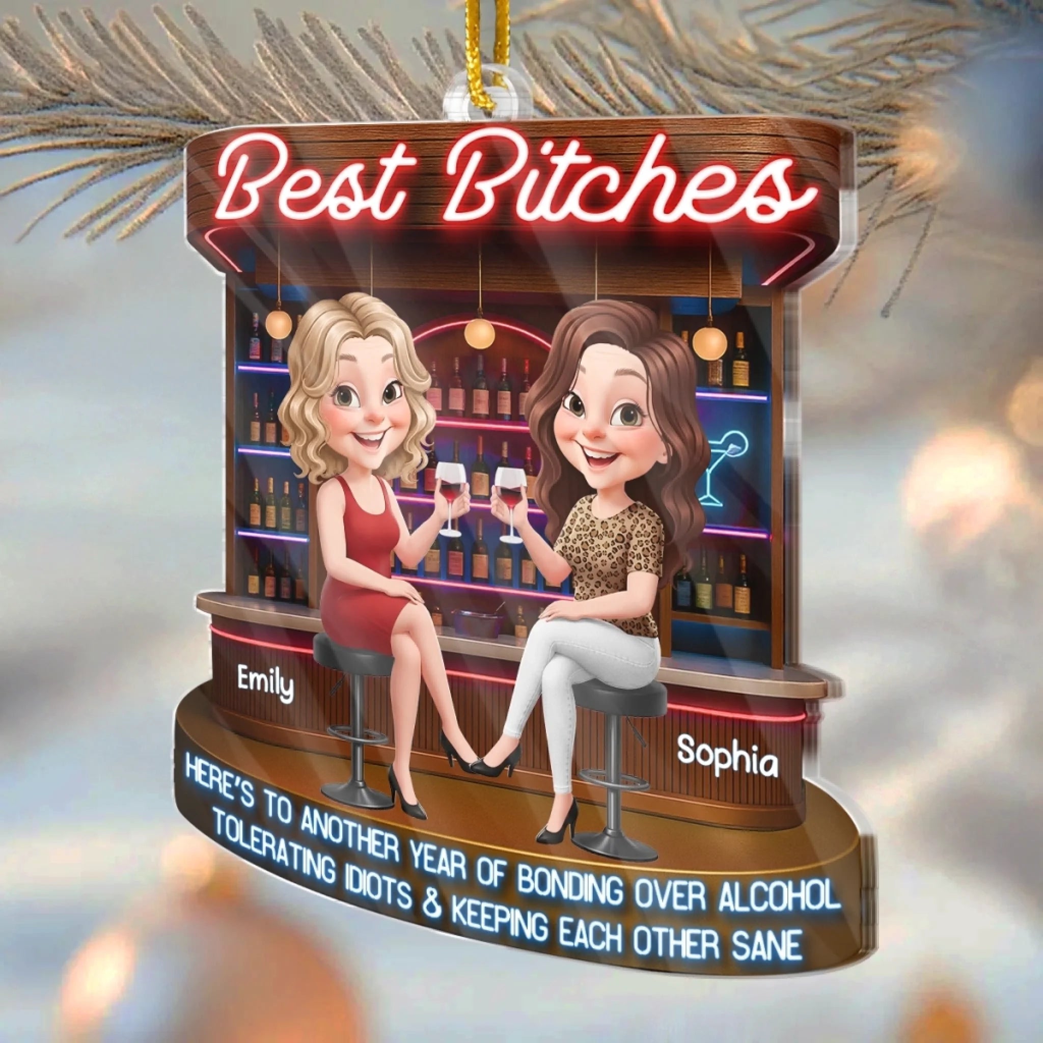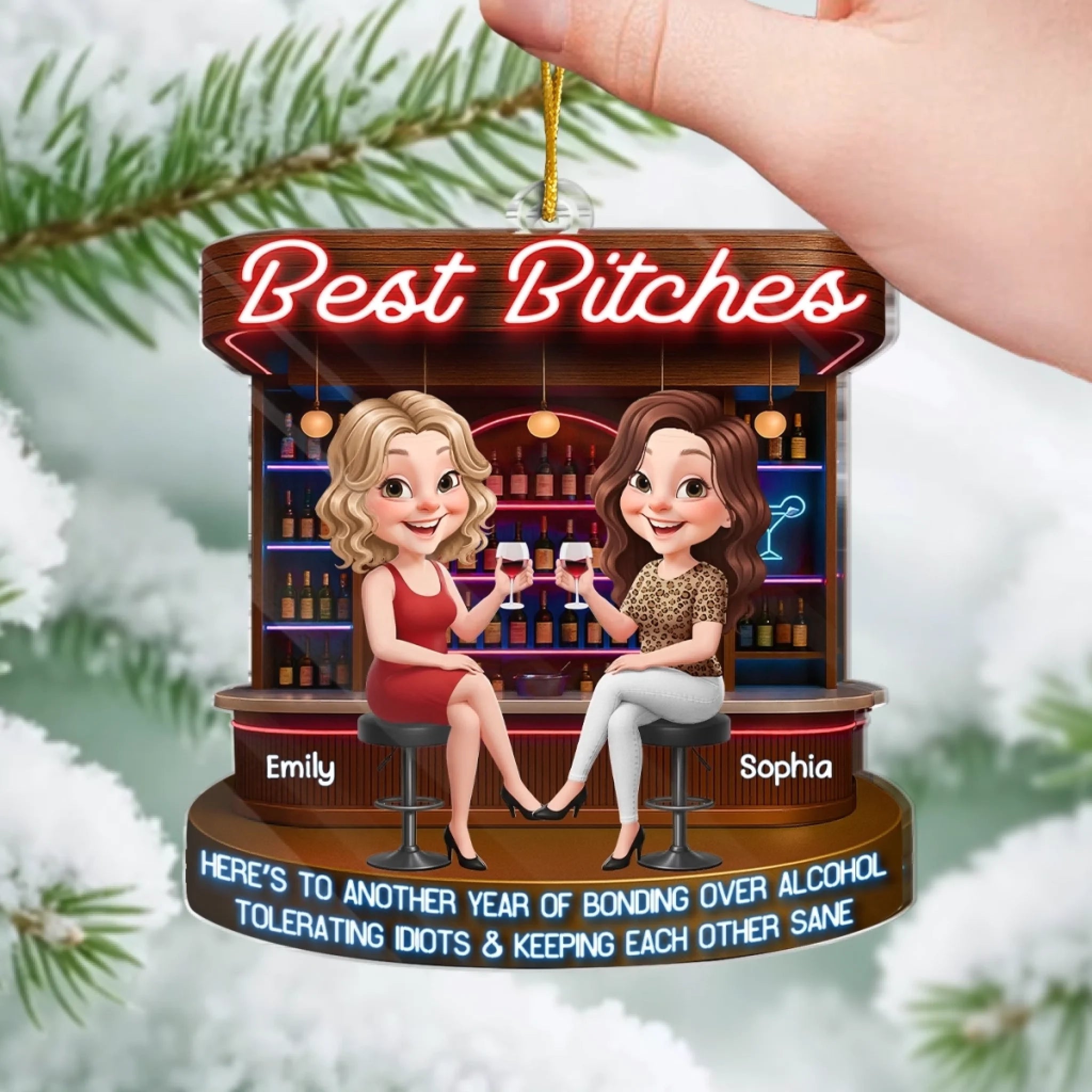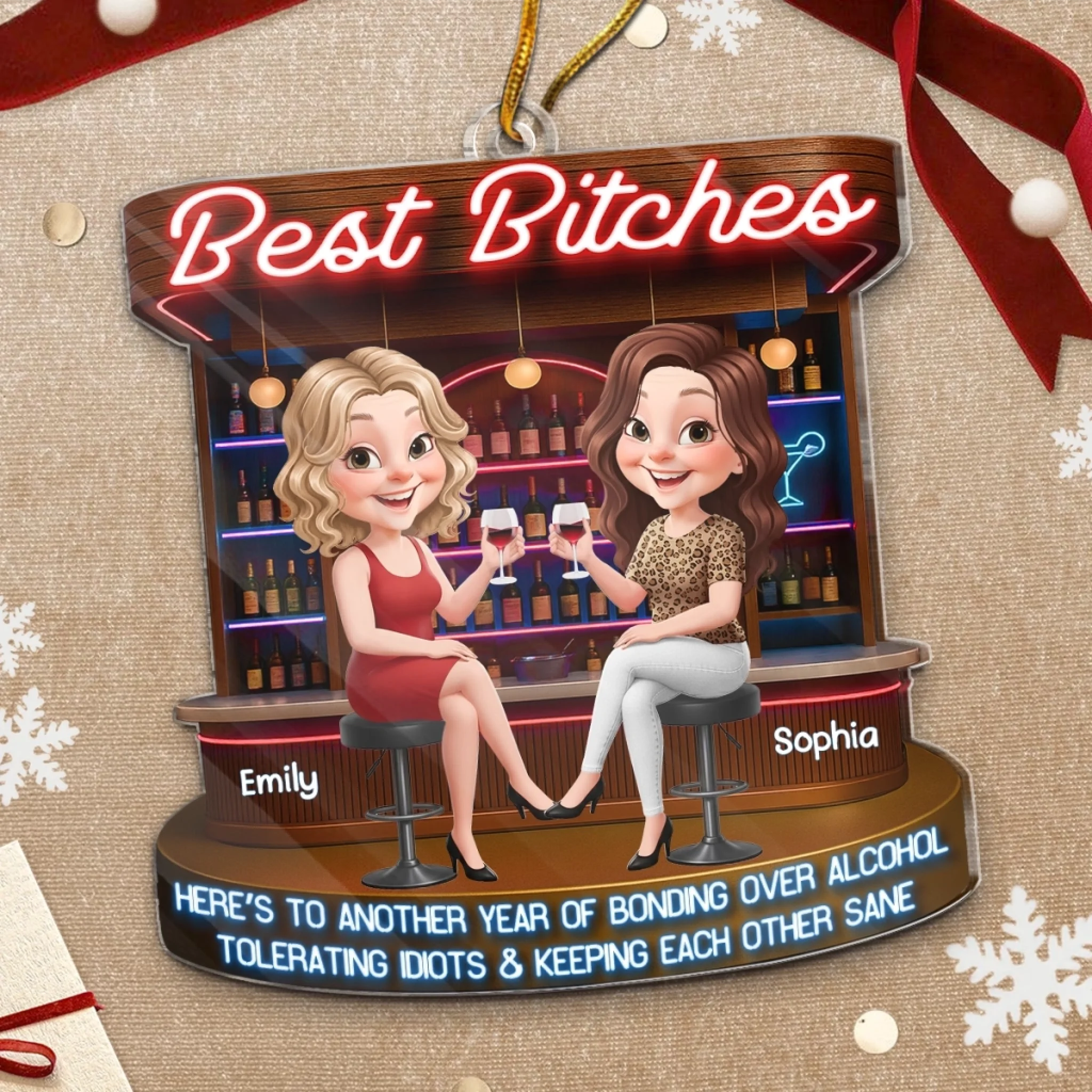 Custom Acrylic Ornament - Personalized Best Friend Christmas Birthday Gifts For Women, Besties, Sisters, BFF - Snowflakes Sparkle When We Are Together