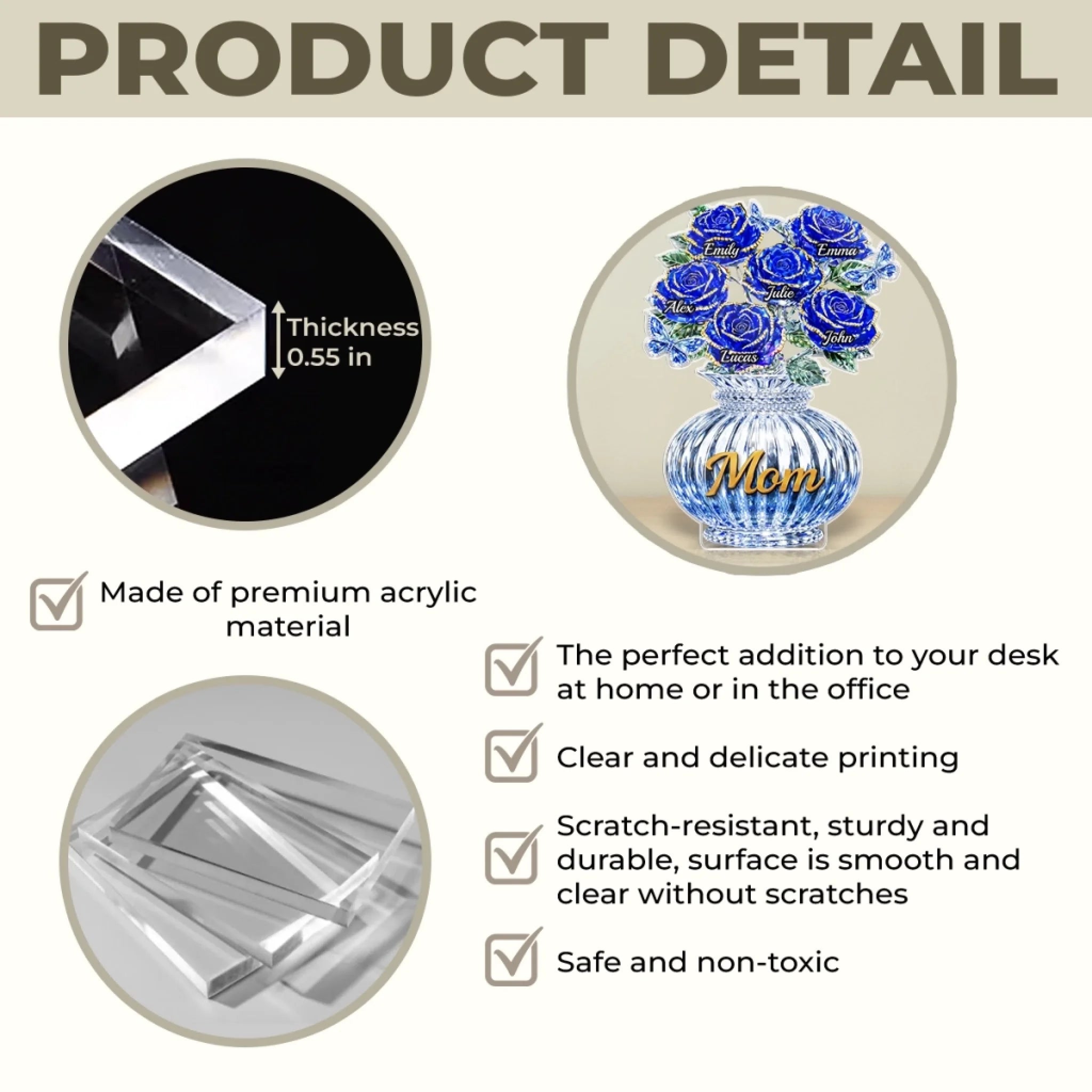 • Material: Made of premium acrylic.