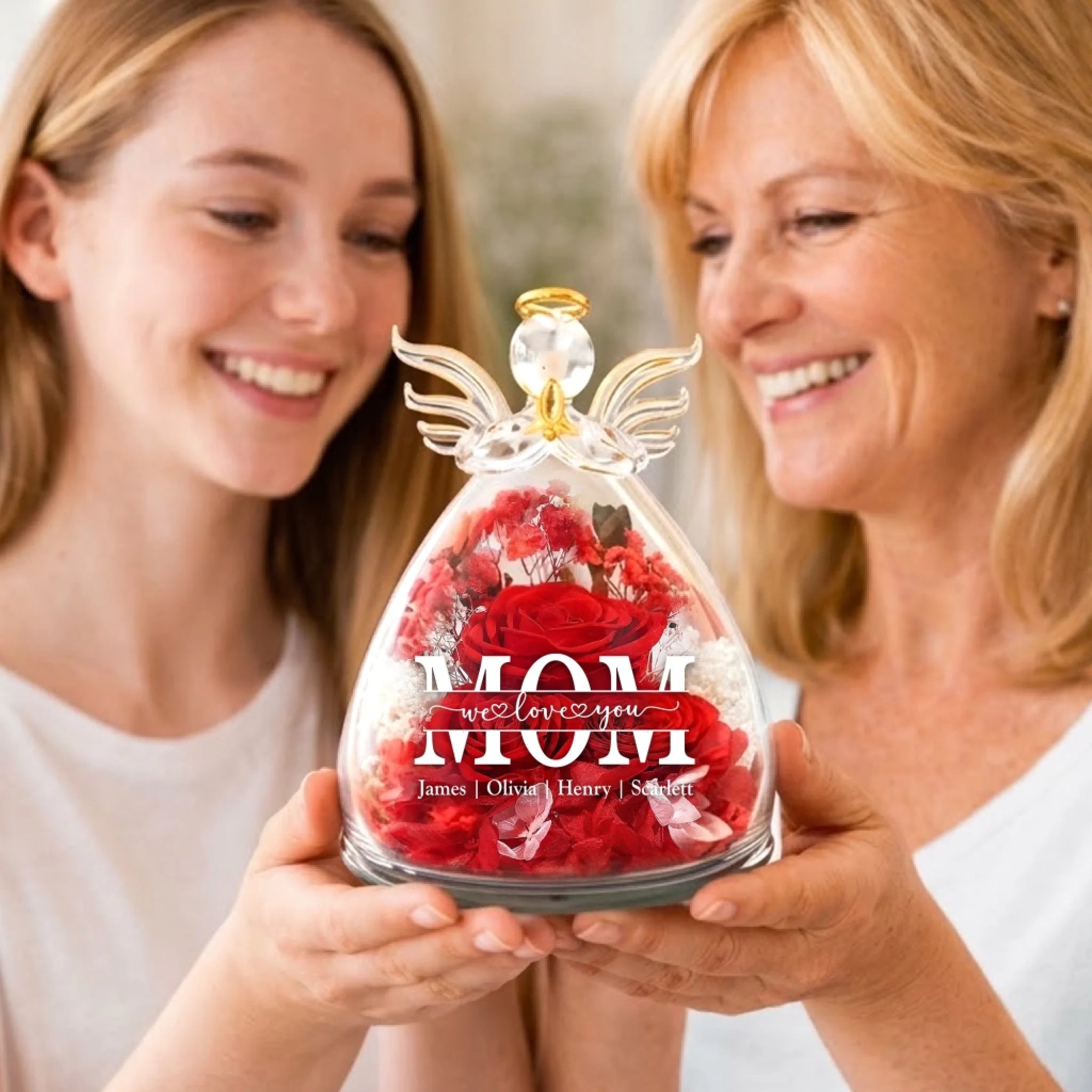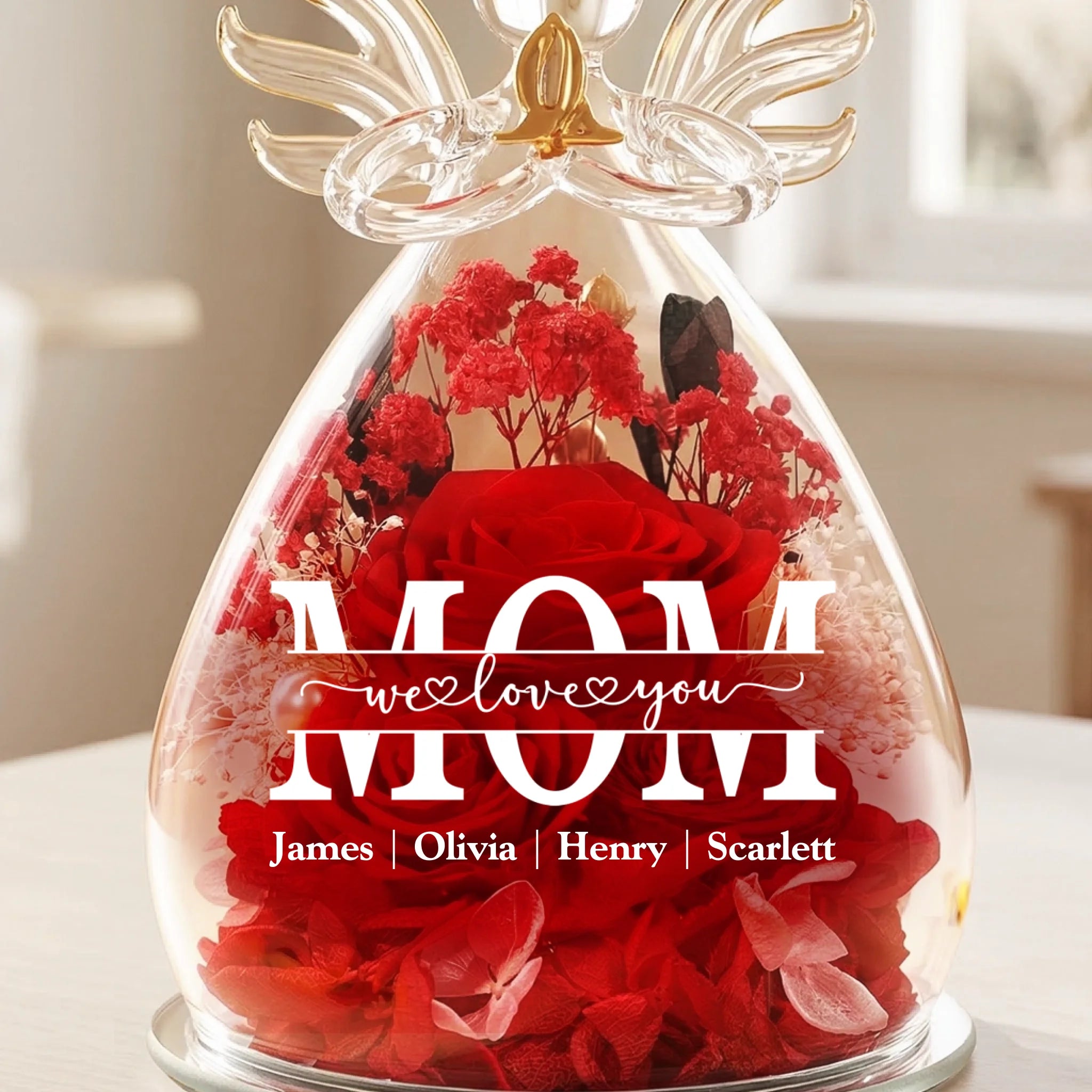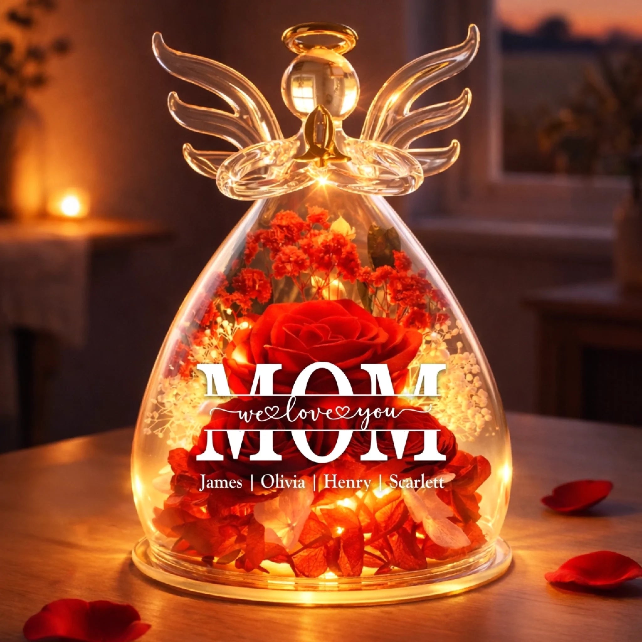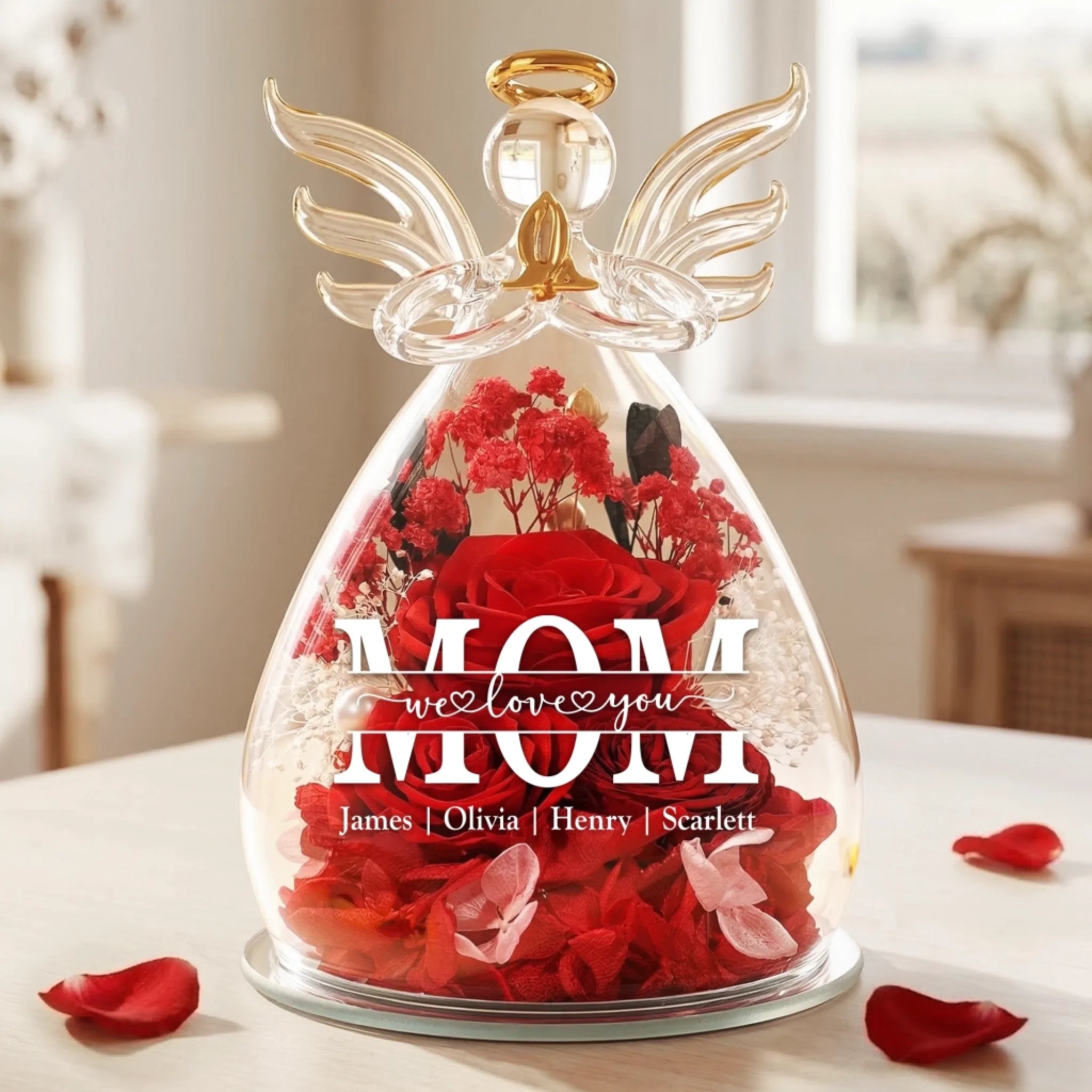 This angel dome features a preserved rose combined with a beautifully crafted angel figurine, offering a heartfelt tribute that brings warmth and comfort to any space. The preserved flower maintains its vibrant color and natural appearance for years, while the warm LED light softly illuminates the entire piece, creating a peaceful ambiance. This is the perfect gift for anyone, suitable for all occasions: birthdays, holidays, anniversaries, graduations, Valentine’s Day, Mother’s Day, Father’s Day, and just because! Whether for friends, family, or that special someone, this versatile gift is guaranteed to bring joy and make lasting memories.