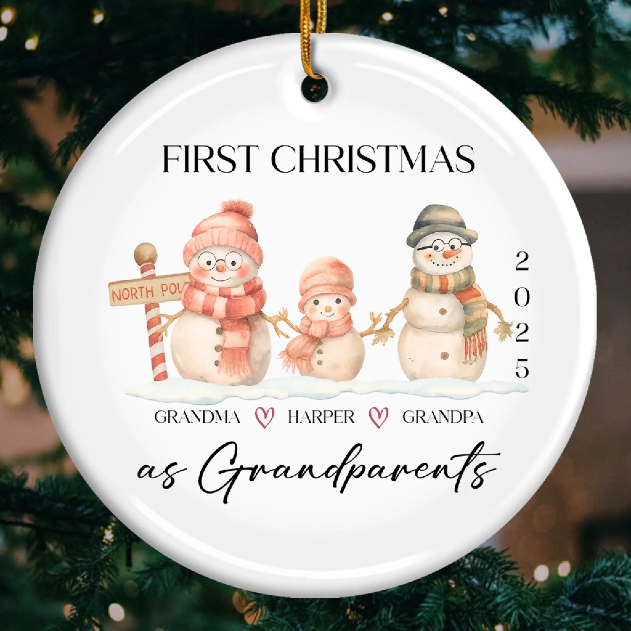 Custom Baby's First Christmas Grandparents Ceramic Ornament - Personalized Christmas Birthday Gifts For First Time Grandparents, Future Grandpa and Grandma, Family - Christmas Feels New Again