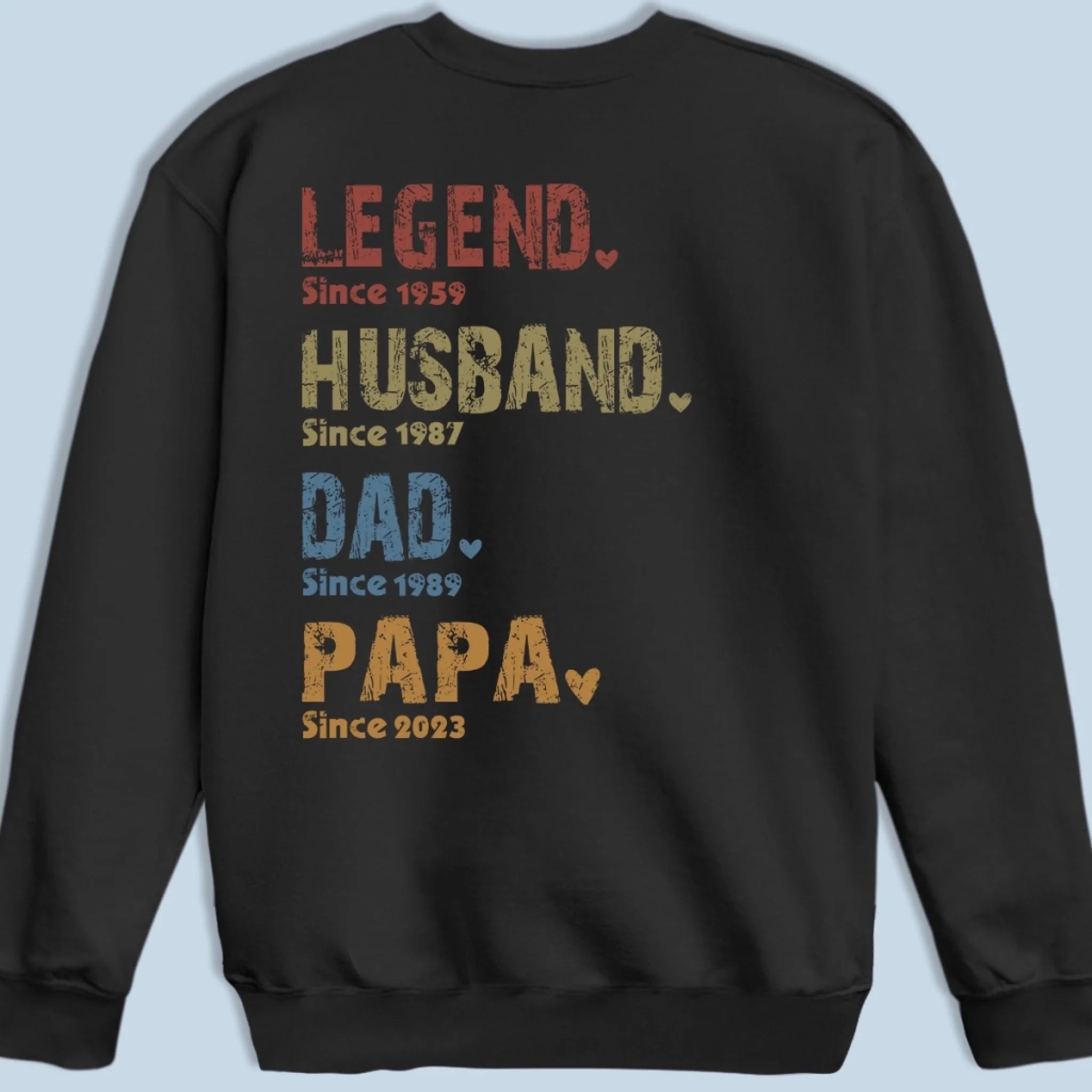 Custom Back Printed Unisex T-shirt, Premium T-shirt, Hoodie - Personalized Birthday Gifts For Dad, Grandpa - Generations Of Love In One Heart