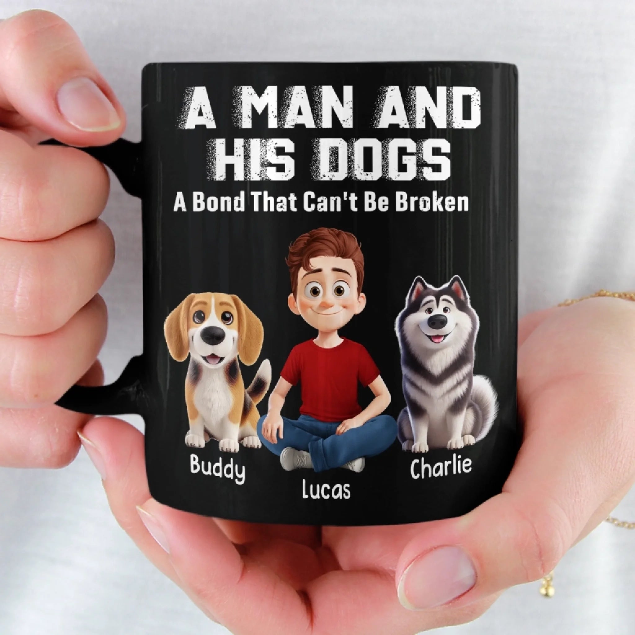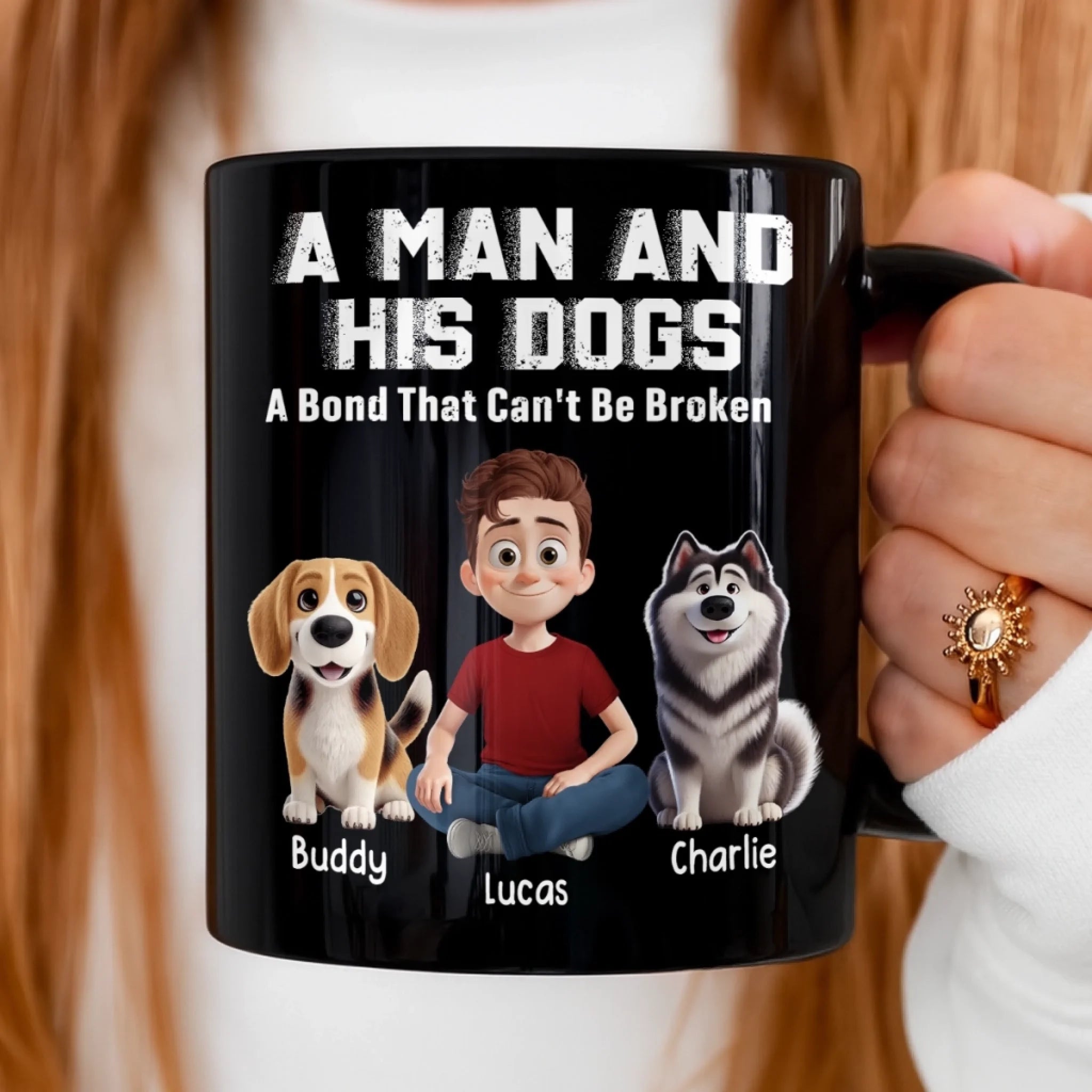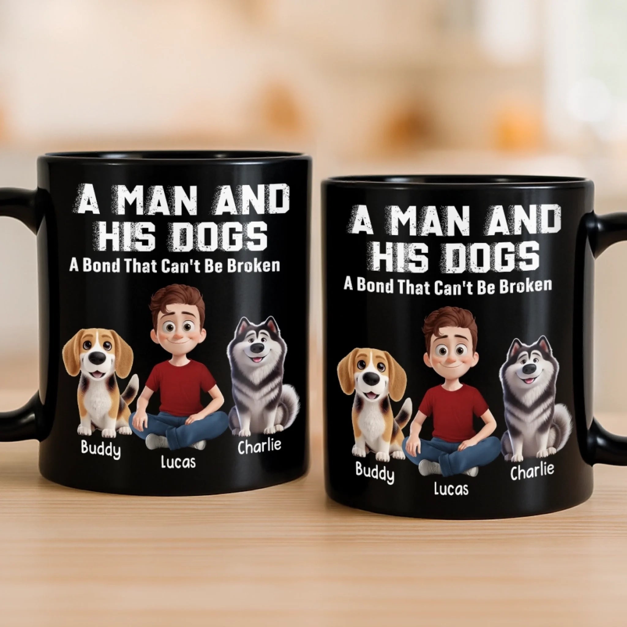 Custom Black Mug - Personalized Birthday Gifts For Dog Lovers, Dog Dad And Mom - Fueled By Dogs And Coffee