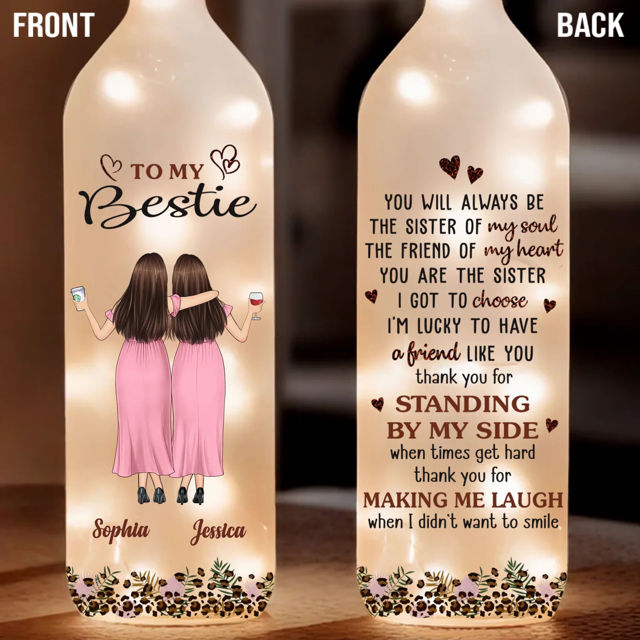 Custom Bottle Lamp - Personalized Best Friend Birthday Gifts For Women, Besties, Sisters, BFF - Lighting The Way Together