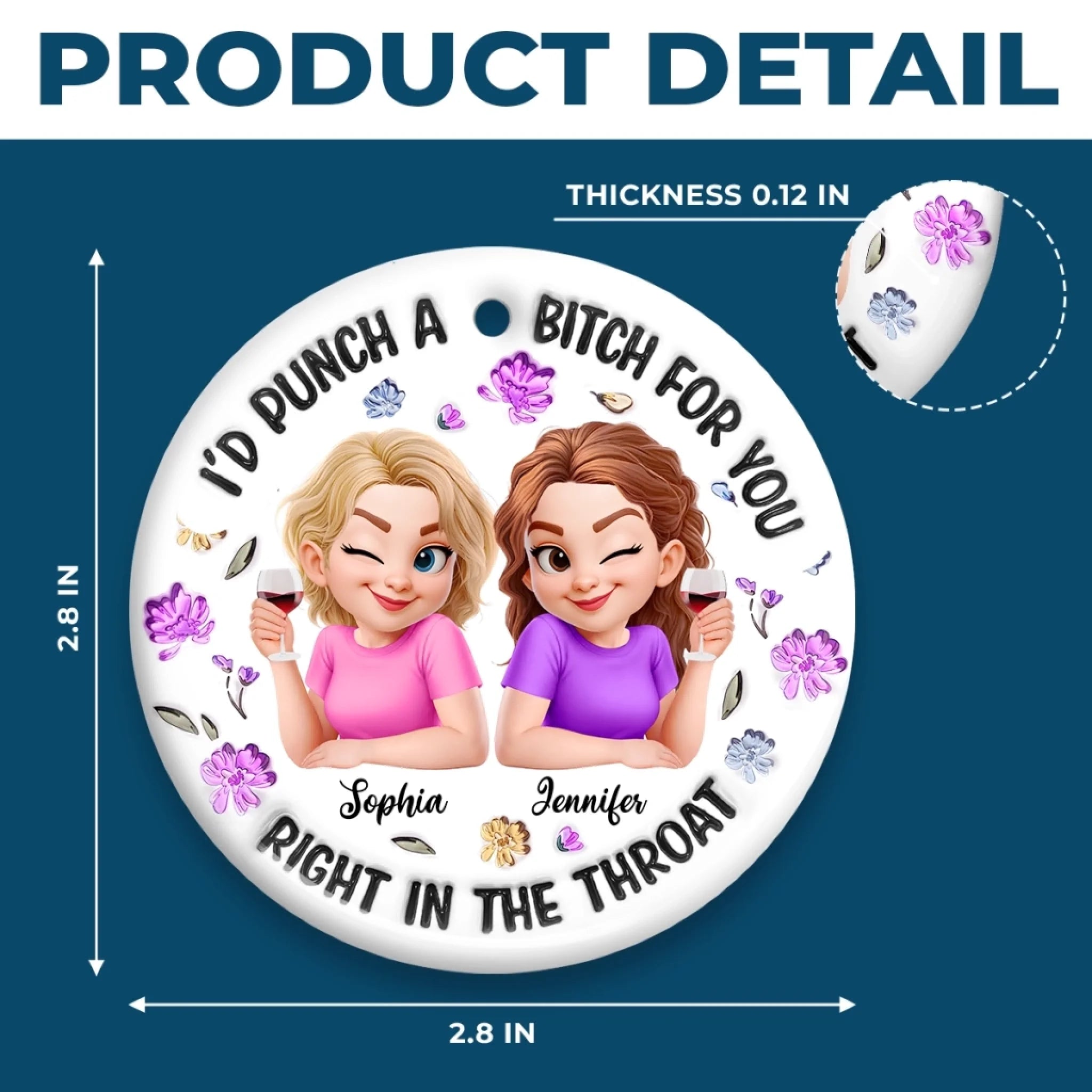 Custom Ceramic Ornament - Personalized Best Friend Birthday Gifts For Women, Besties, Sisters, BFF - Partners In Shine