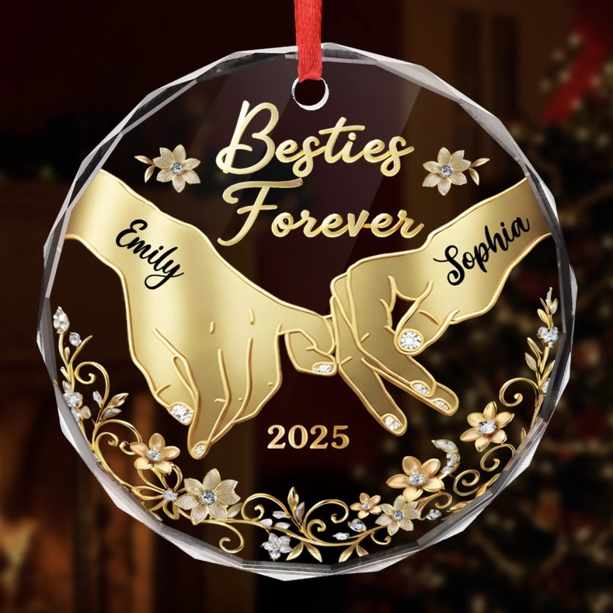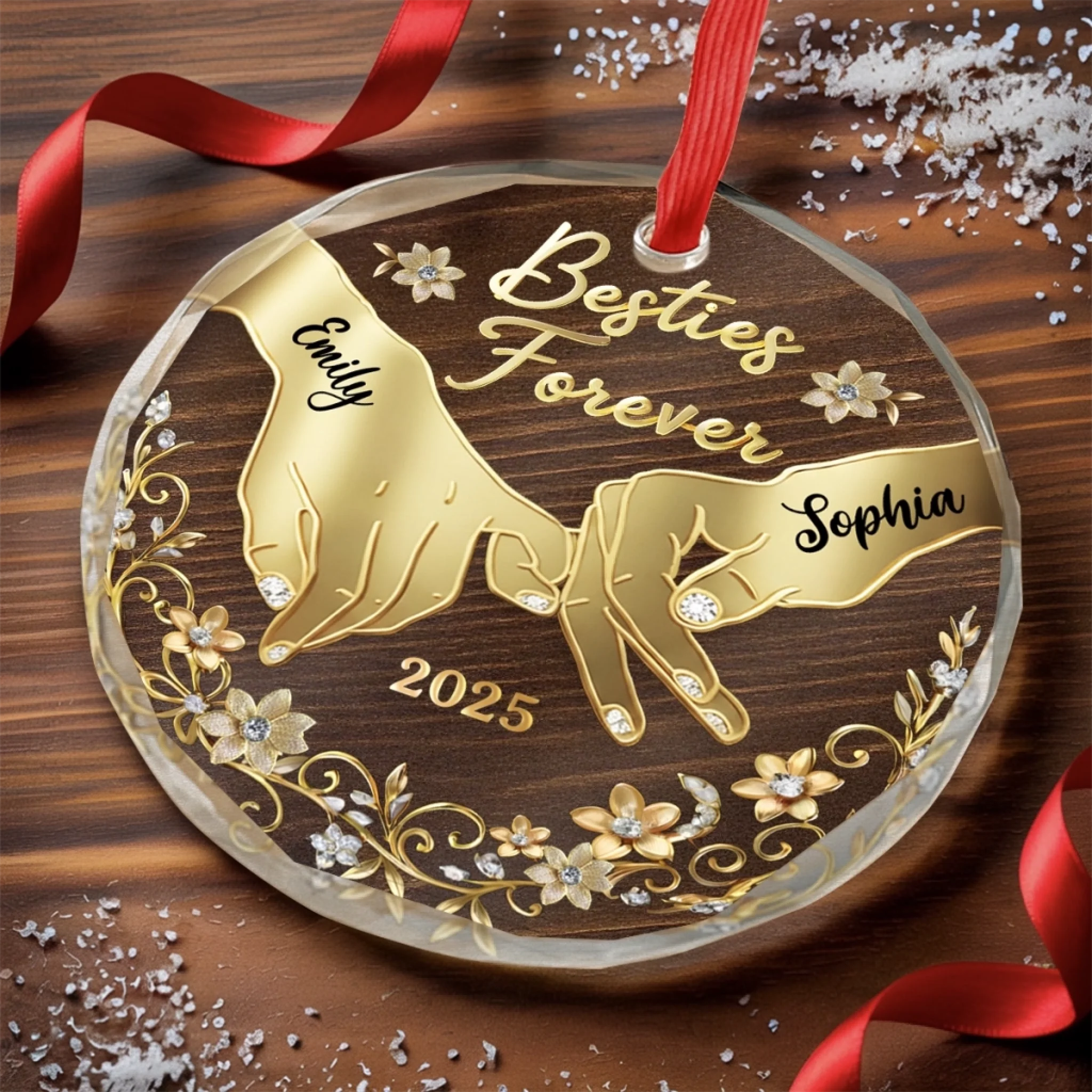 Custom Circle Glass Ornament - Personalized Christmas Best Friend Birthday Gifts For Women, Besties, Sisters, BFF - My Person My Bestie