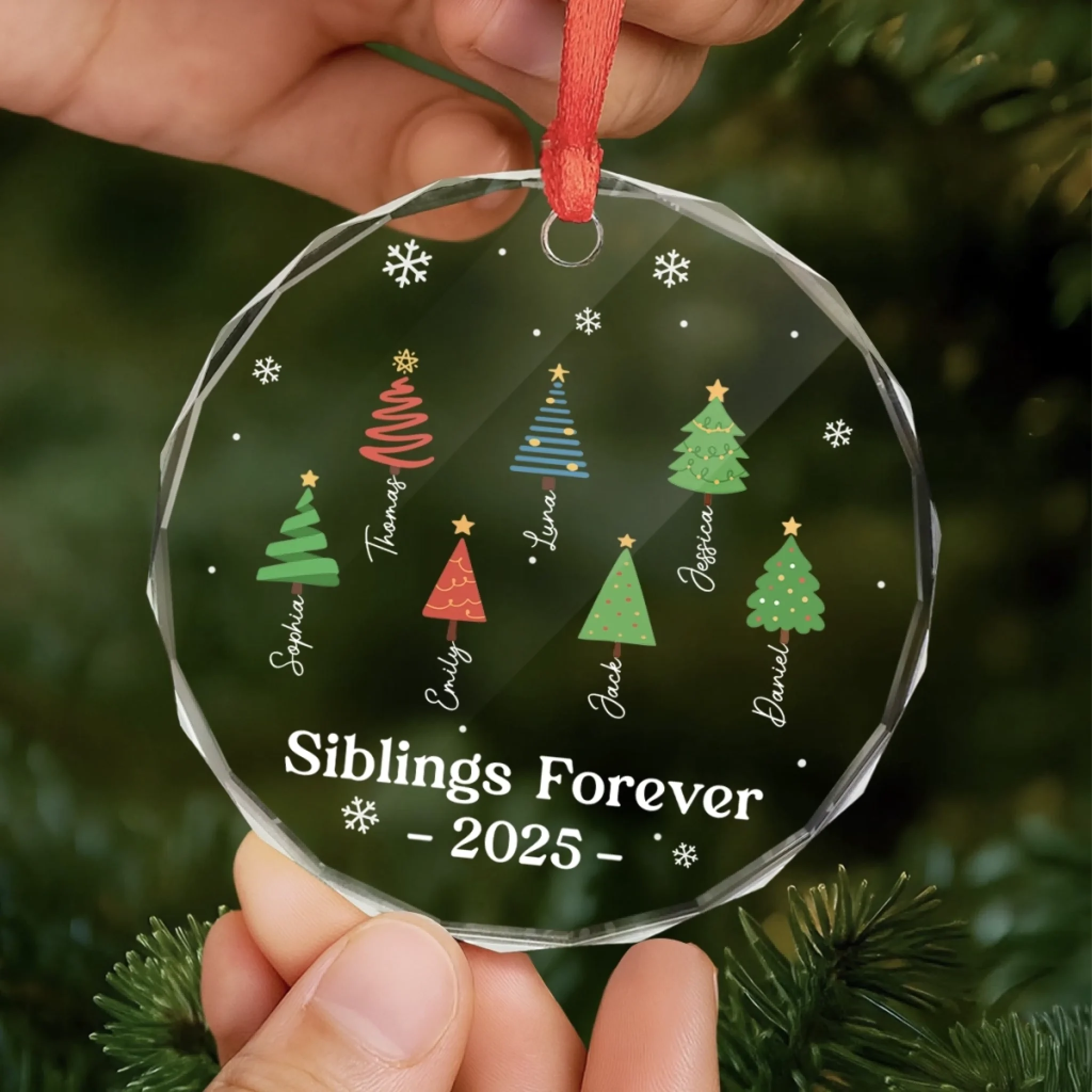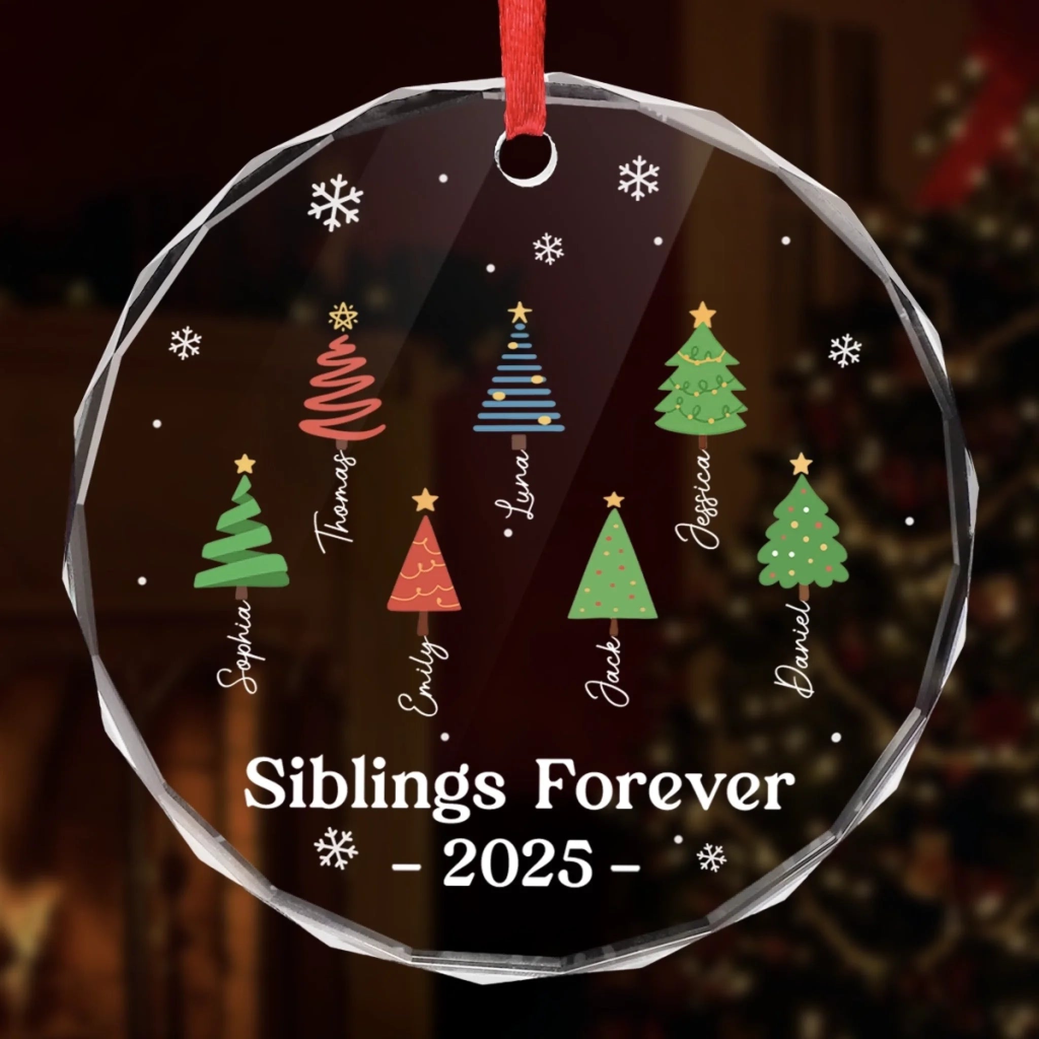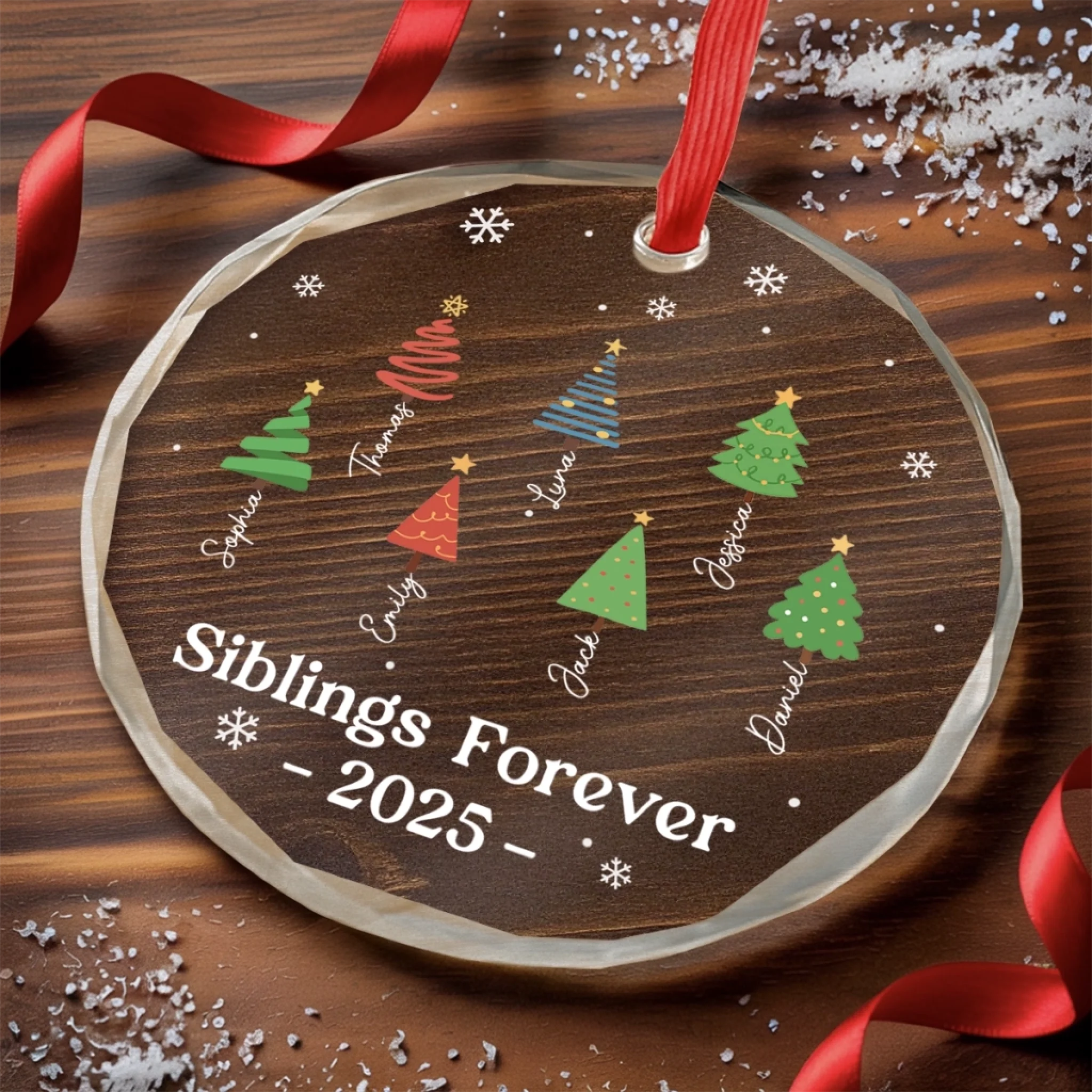 Custom Circle Glass Ornament - Personalized Christmas Birthday Gifts For Brother, Sister - Happiness Under The Tree